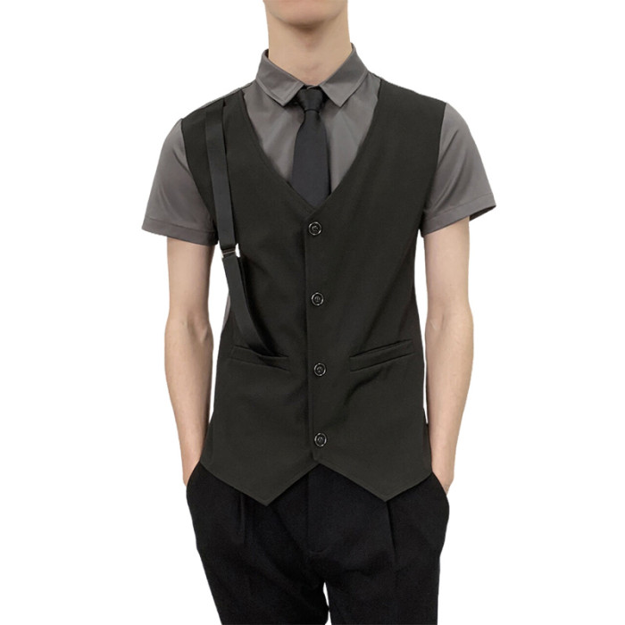 娛樂會所KTV服務員工作服假馬甲短袖襯衫男髮型師酒吧台球廳工裝