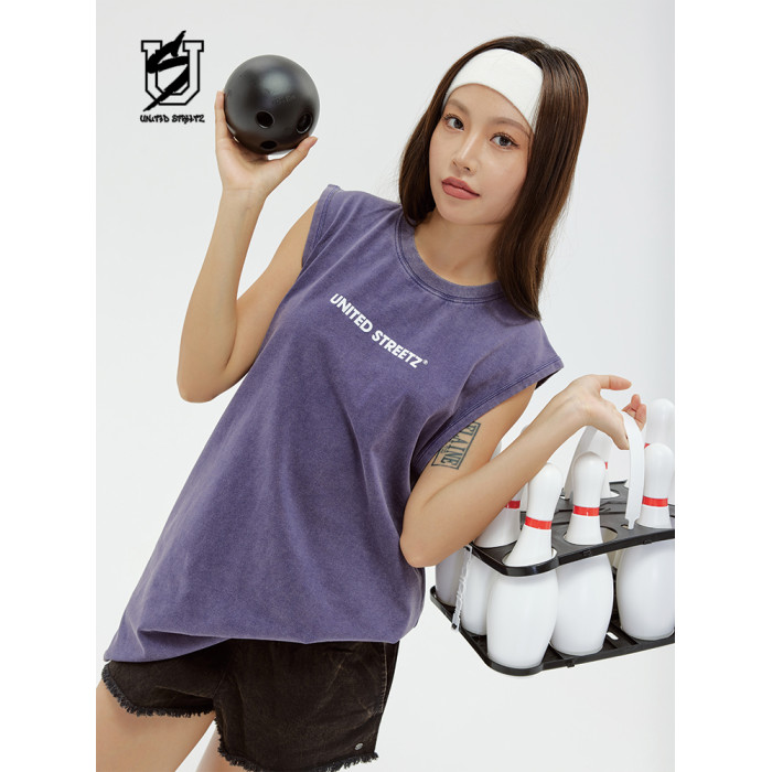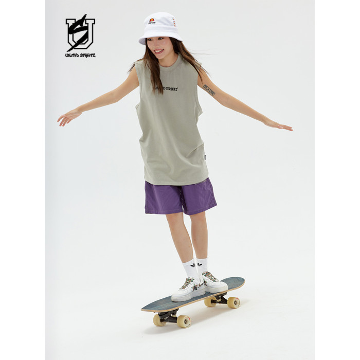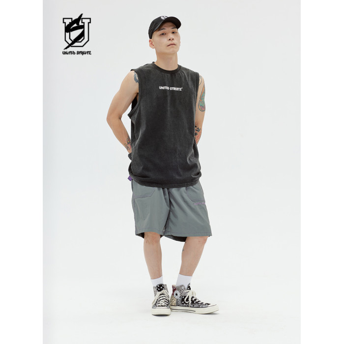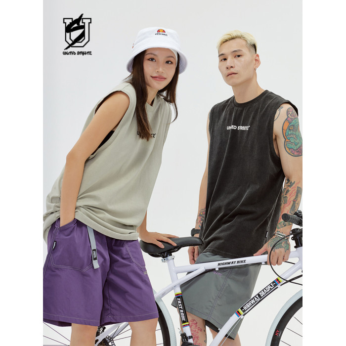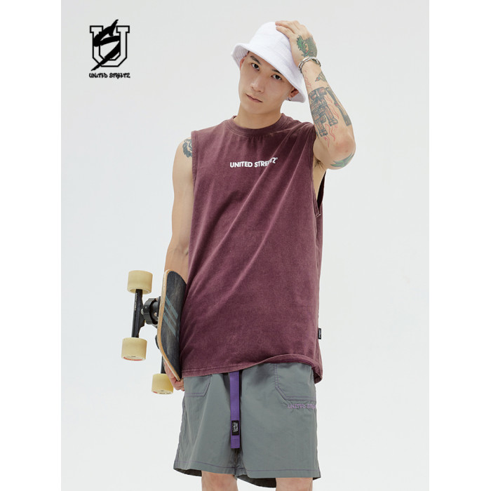US聯邦街牌 簡約街頭坎肩背心男寬松水洗做舊運動休閒無袖t恤短袖