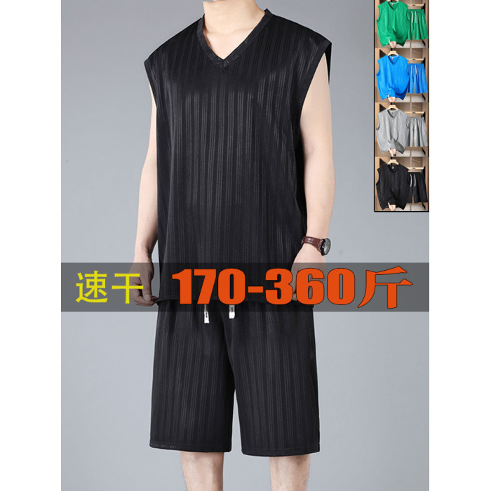 350斤大碼速乾背心外穿坎肩無袖加肥加大oversize運動短褲兩件套