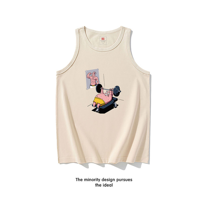 派大星聯名七龍珠魔人布歐健身汗背心男惡搞寬松純棉運動無袖T恤