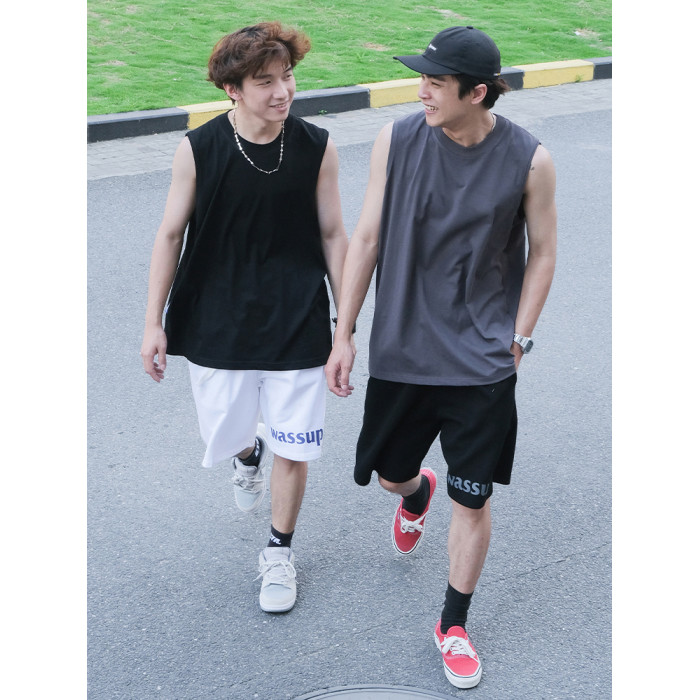 WASSUP夏季2025新款純色背心男款運動透氣無袖T恤健身坎肩上衣服