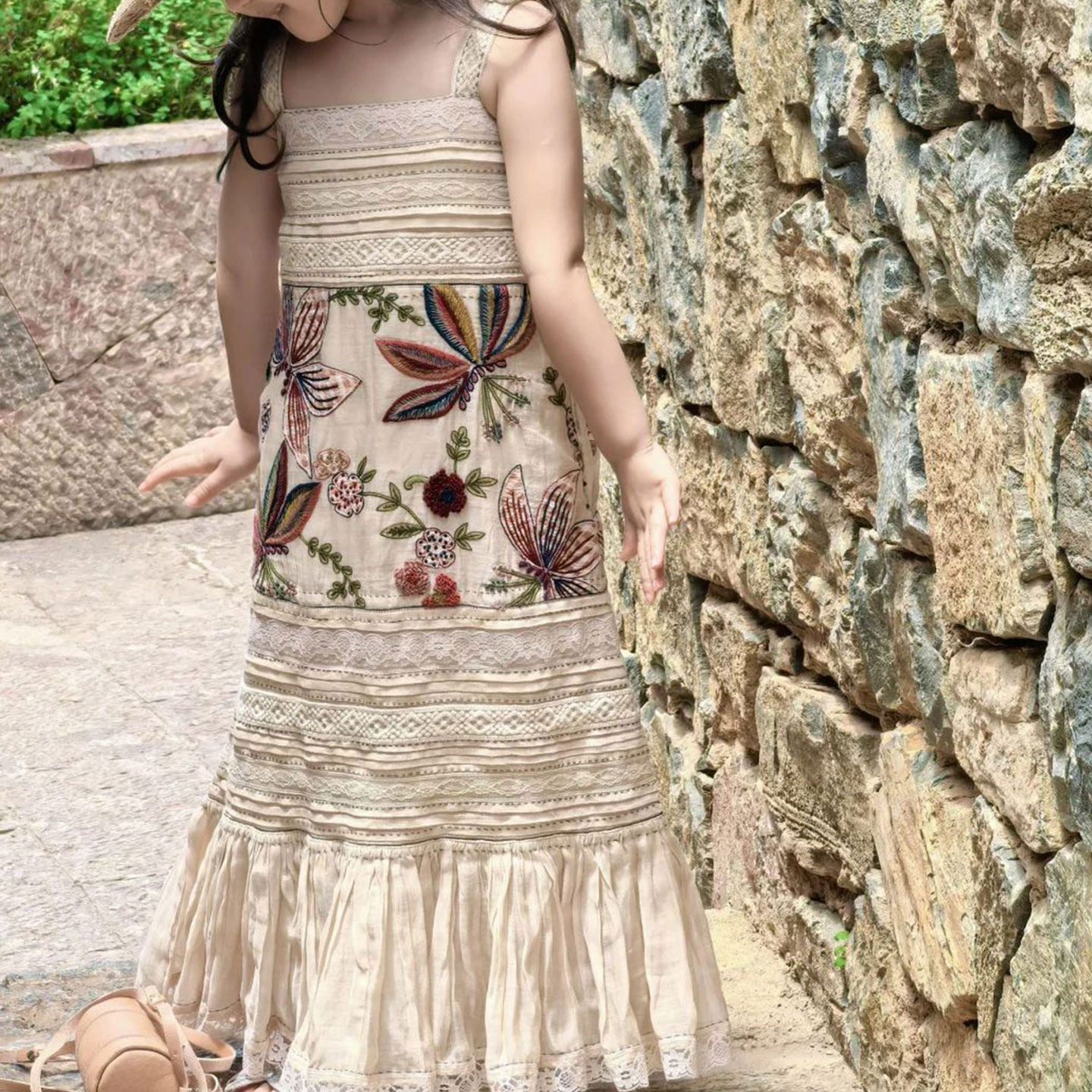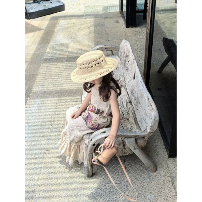 女童連衣裙兒童度假海邊裙子夏裝長裙旅遊新款沙漠高級草原白色薄