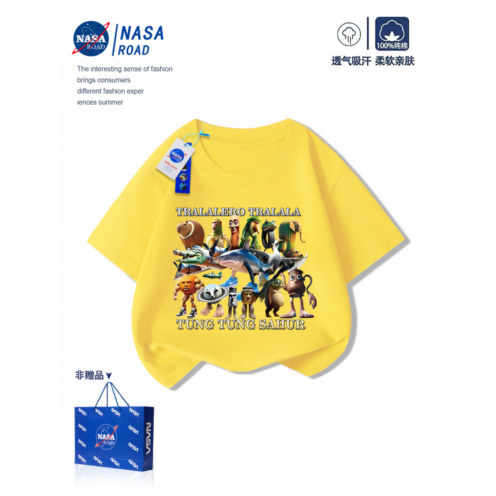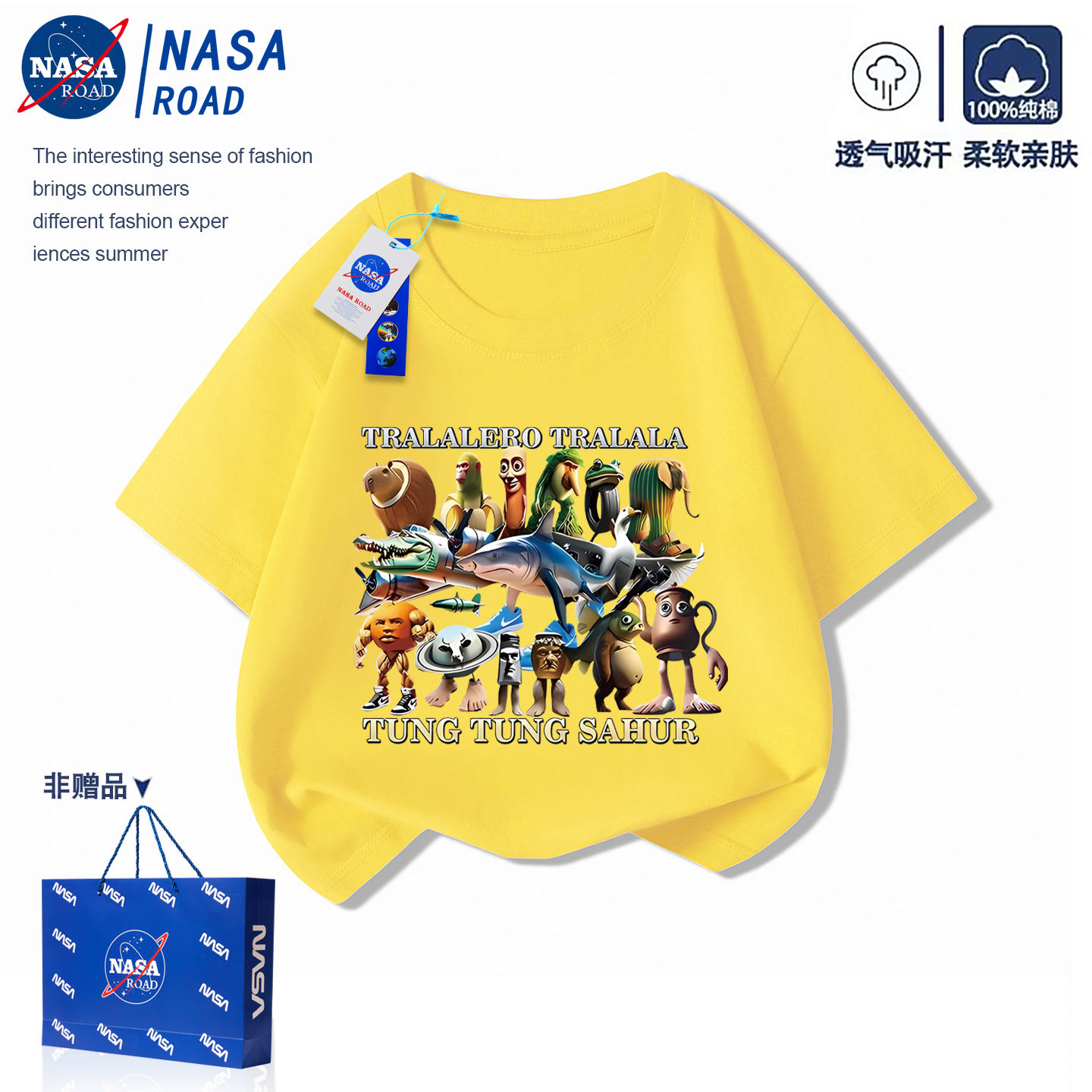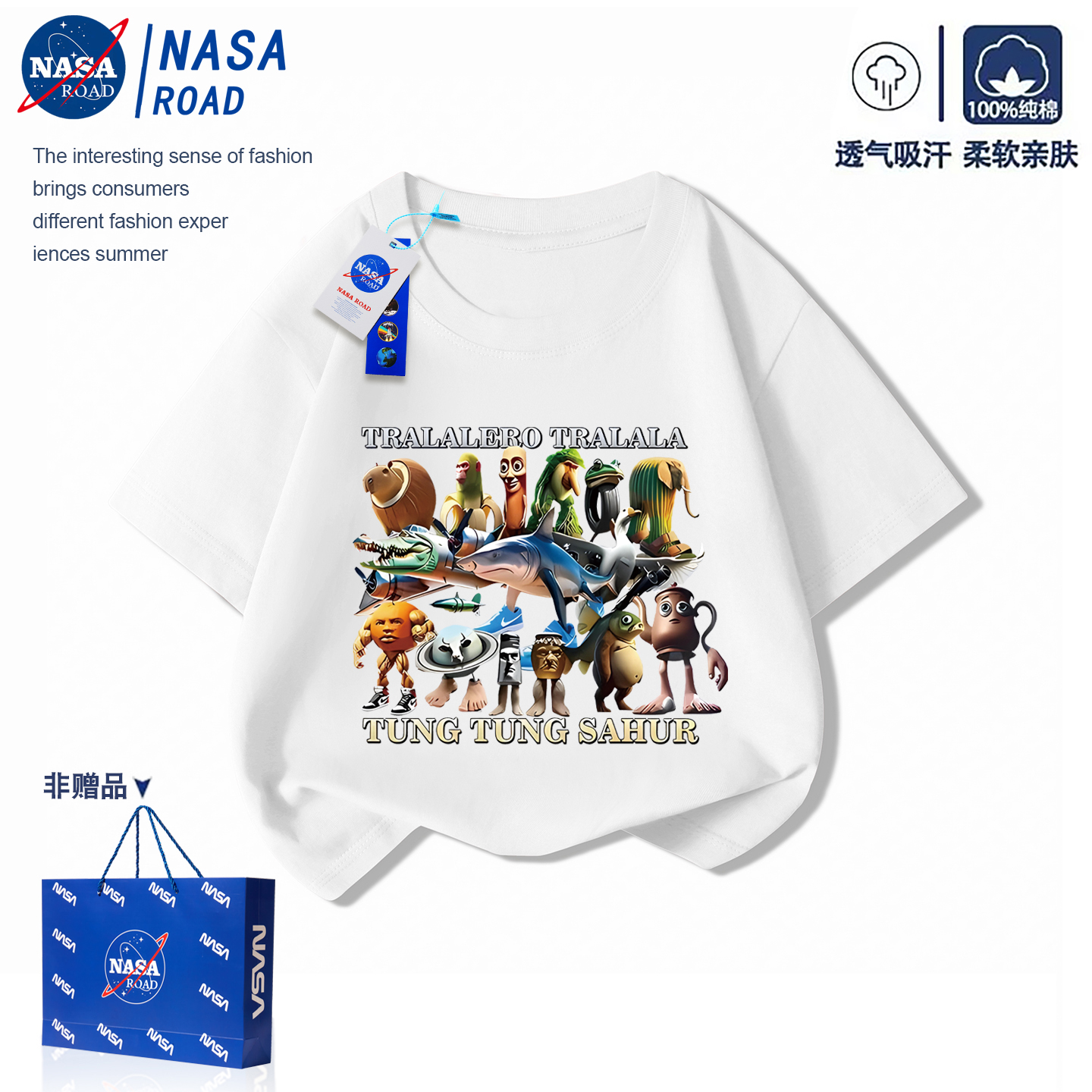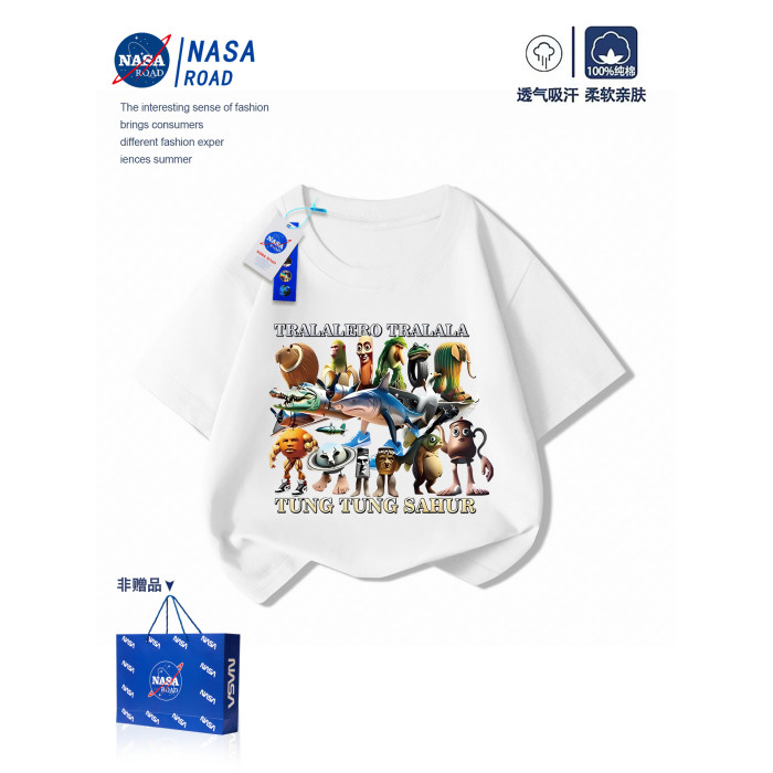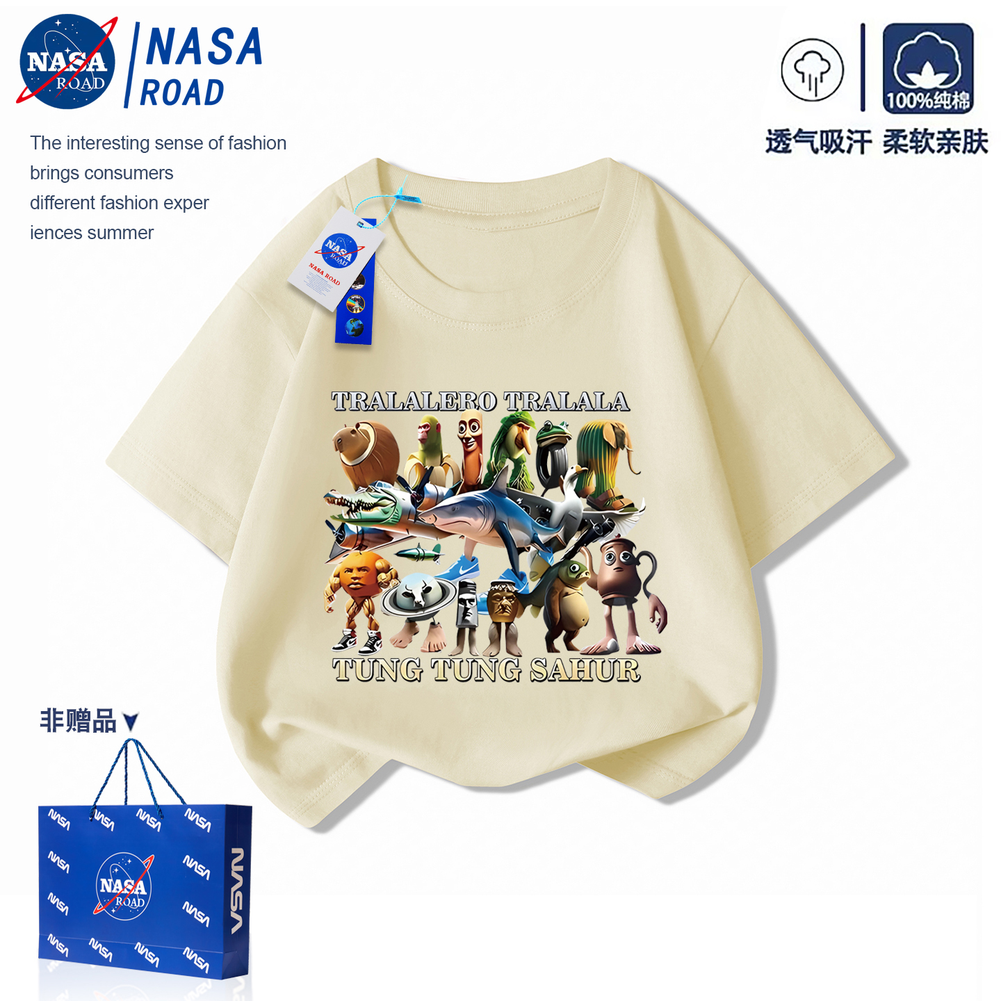 NASA聯名tungtungsahur通通哥木棍人抽象國外山海經兒童短袖T恤