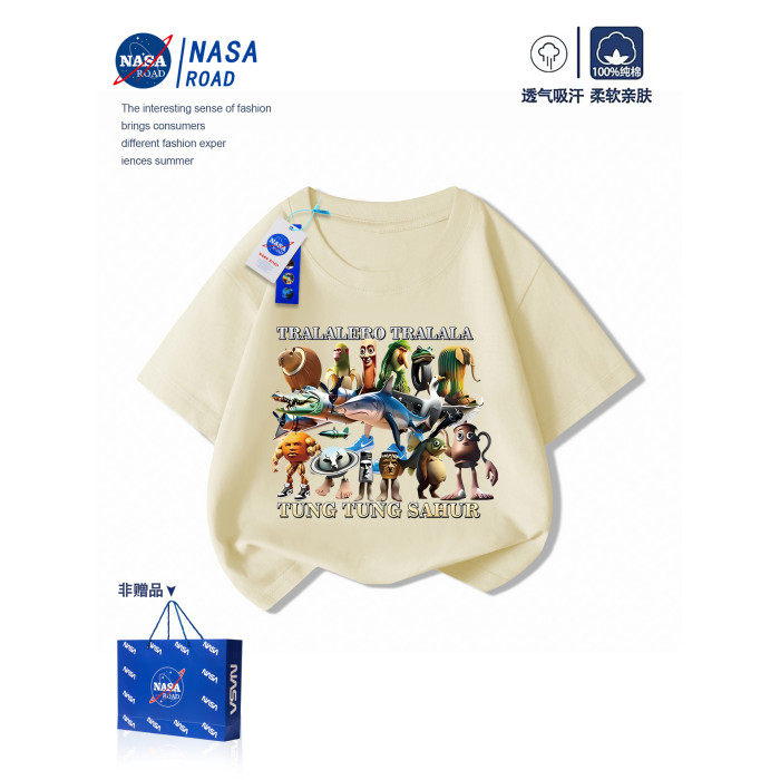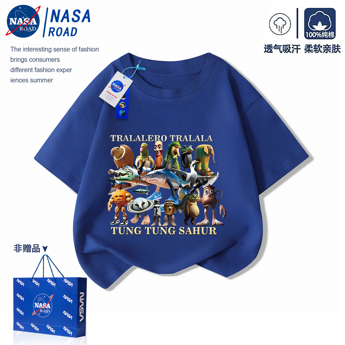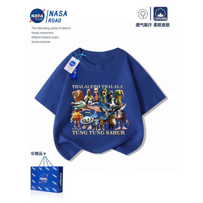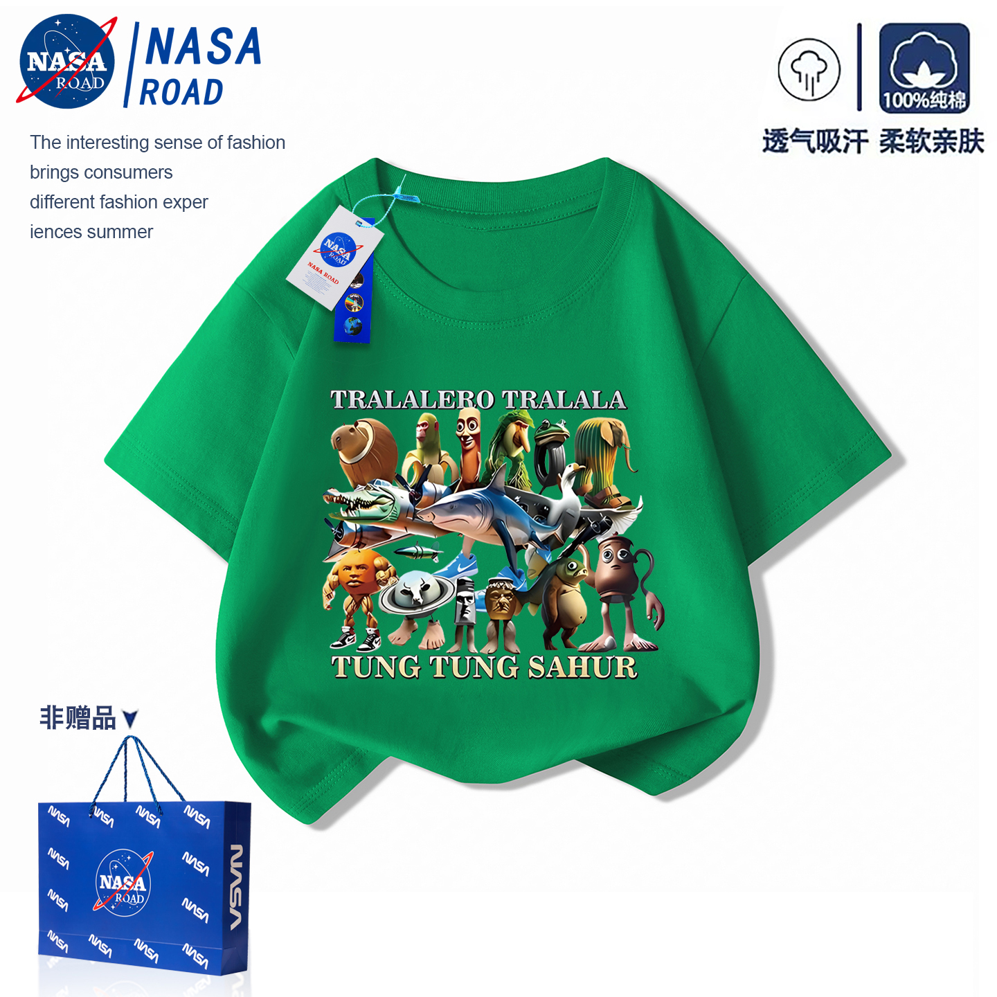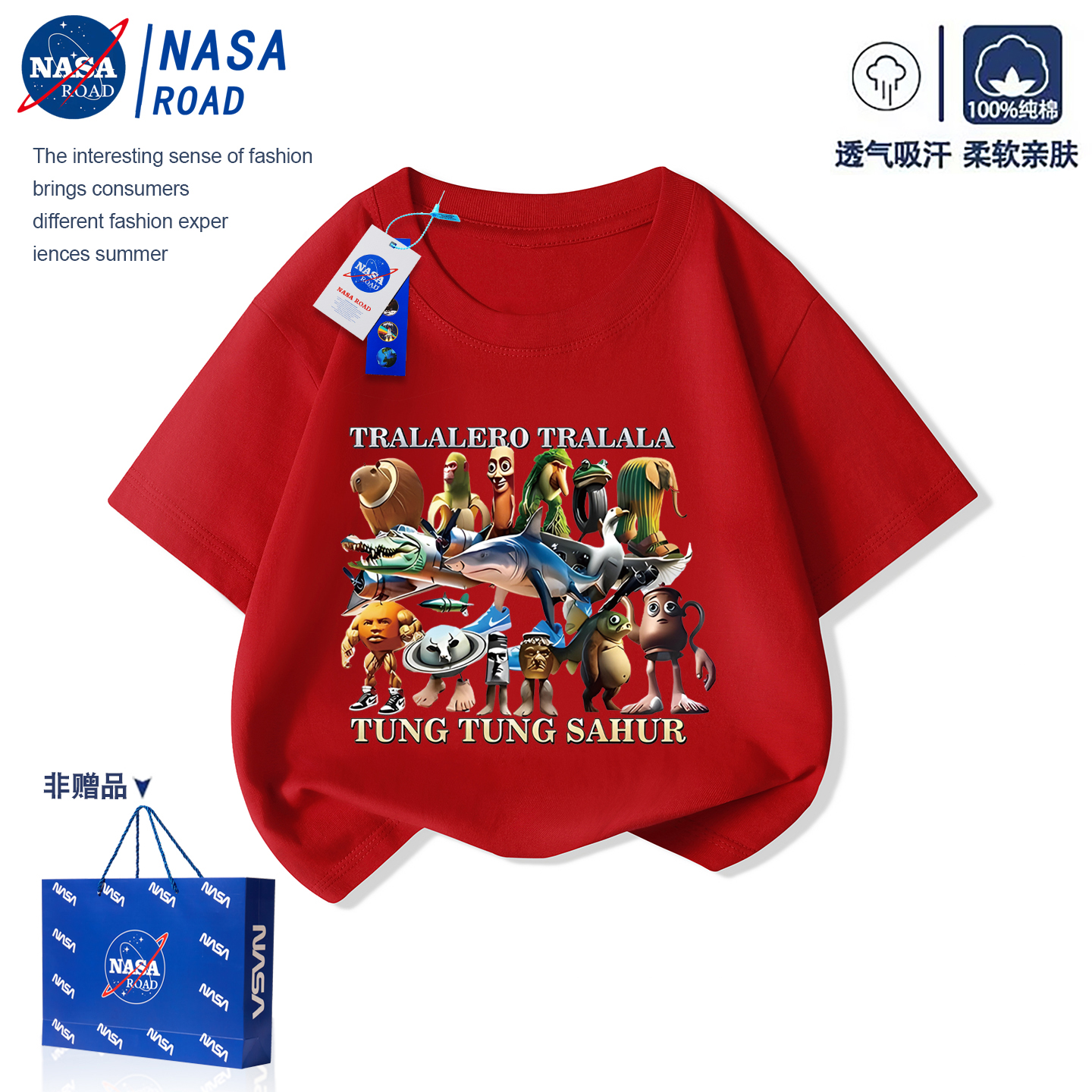 NASA聯名tungtungsahur通通哥木棍人抽象國外山海經兒童短袖T恤