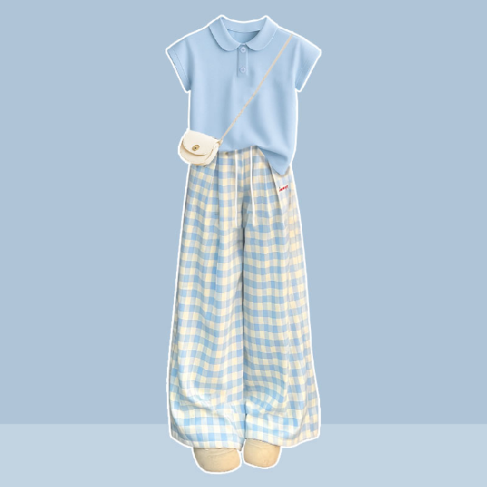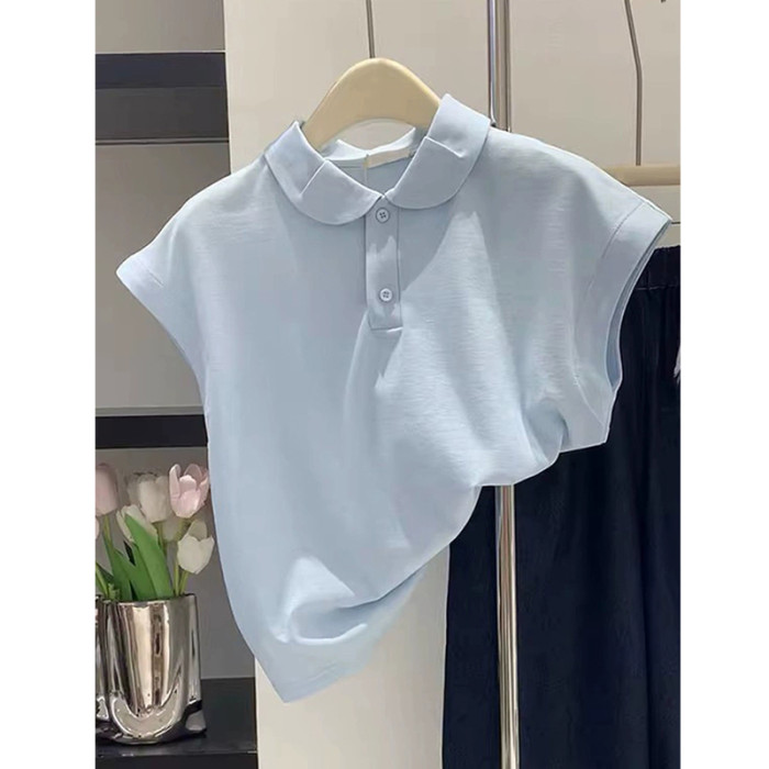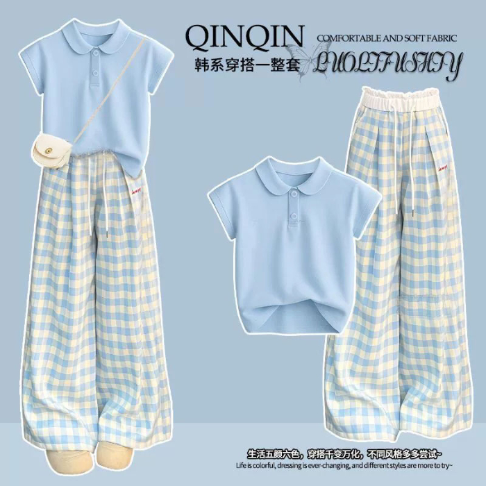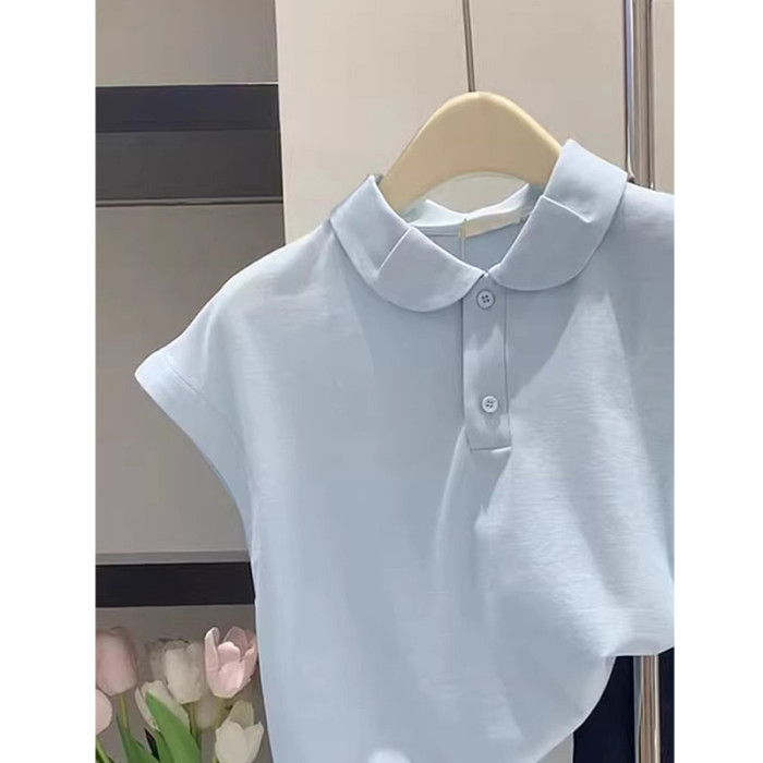 女童高級感純棉短袖t恤2025夏新款中大童爆款小飛袖polo上衣套裝