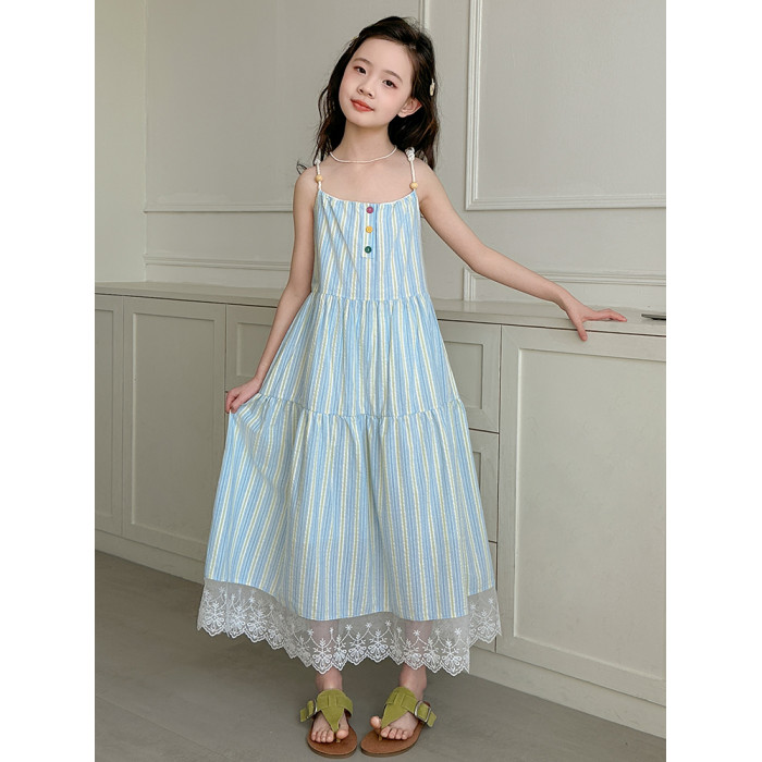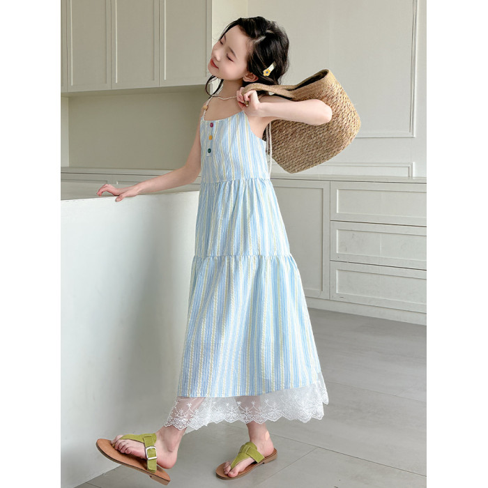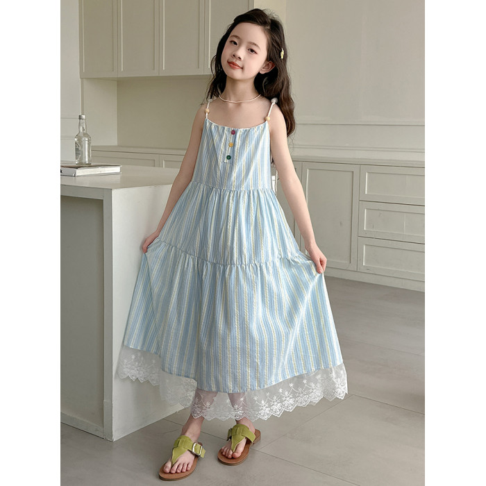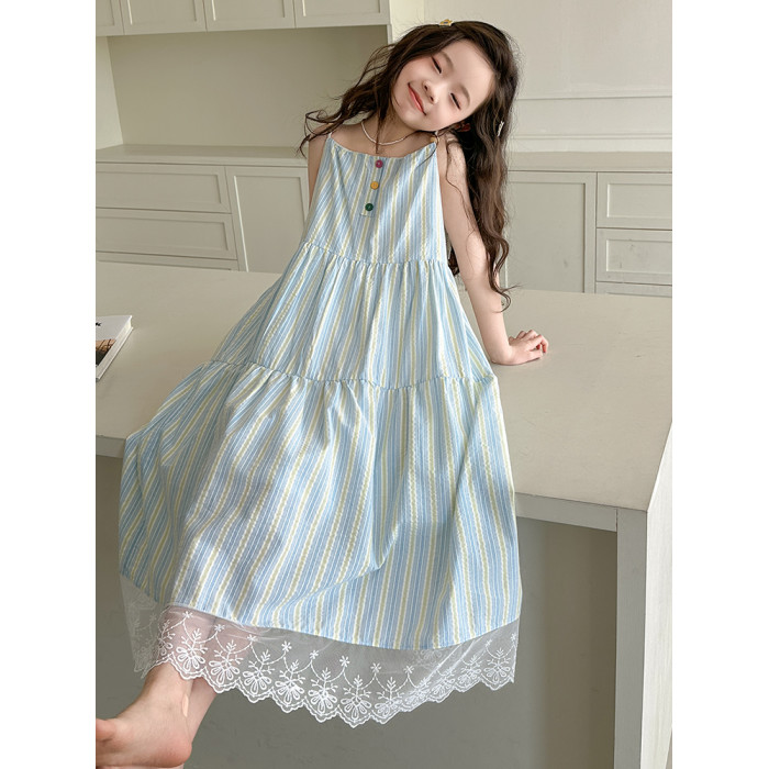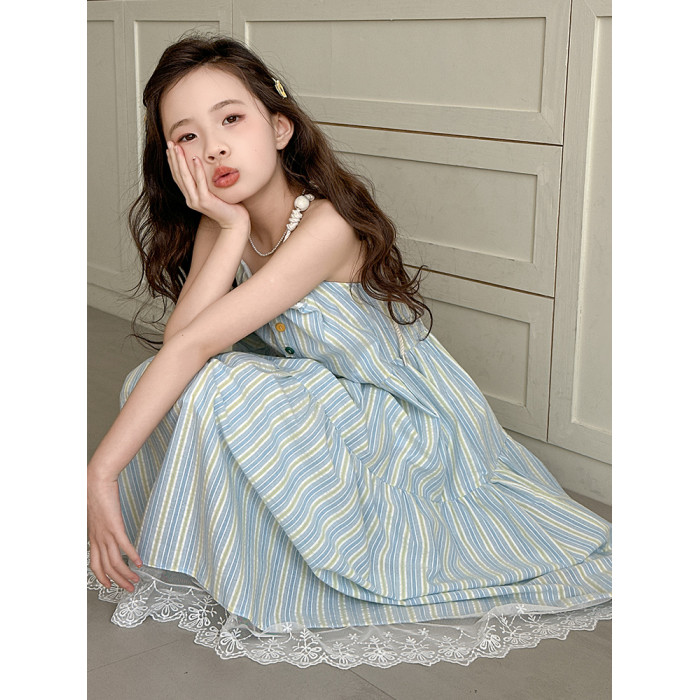 女童條紋連衣裙夏2025新款兒童洋氣吊帶公主裙夏裝海邊度假沙灘裙