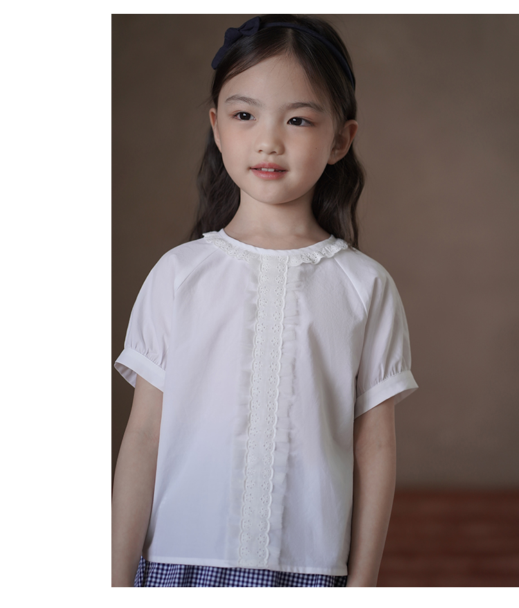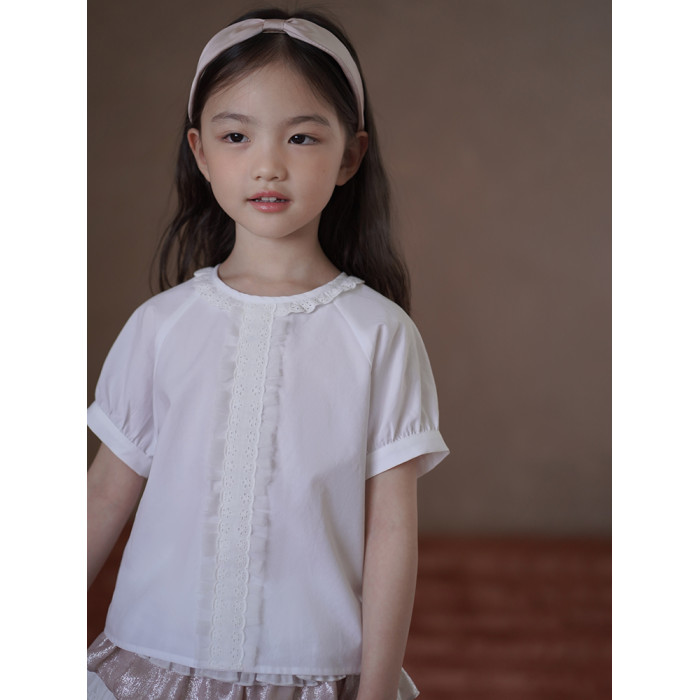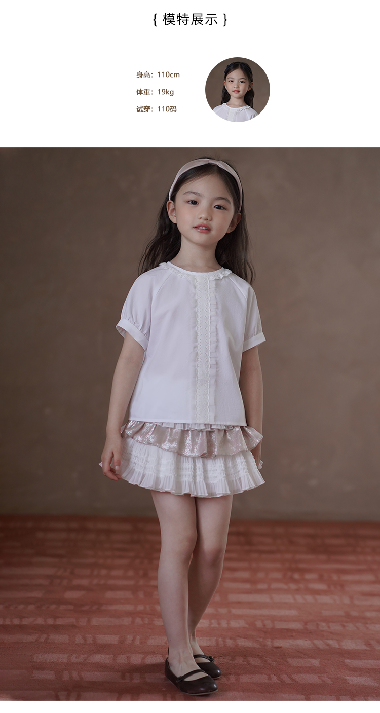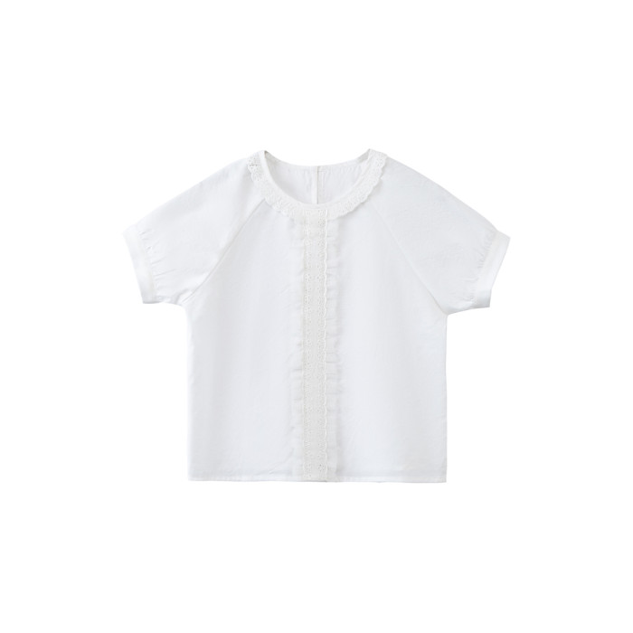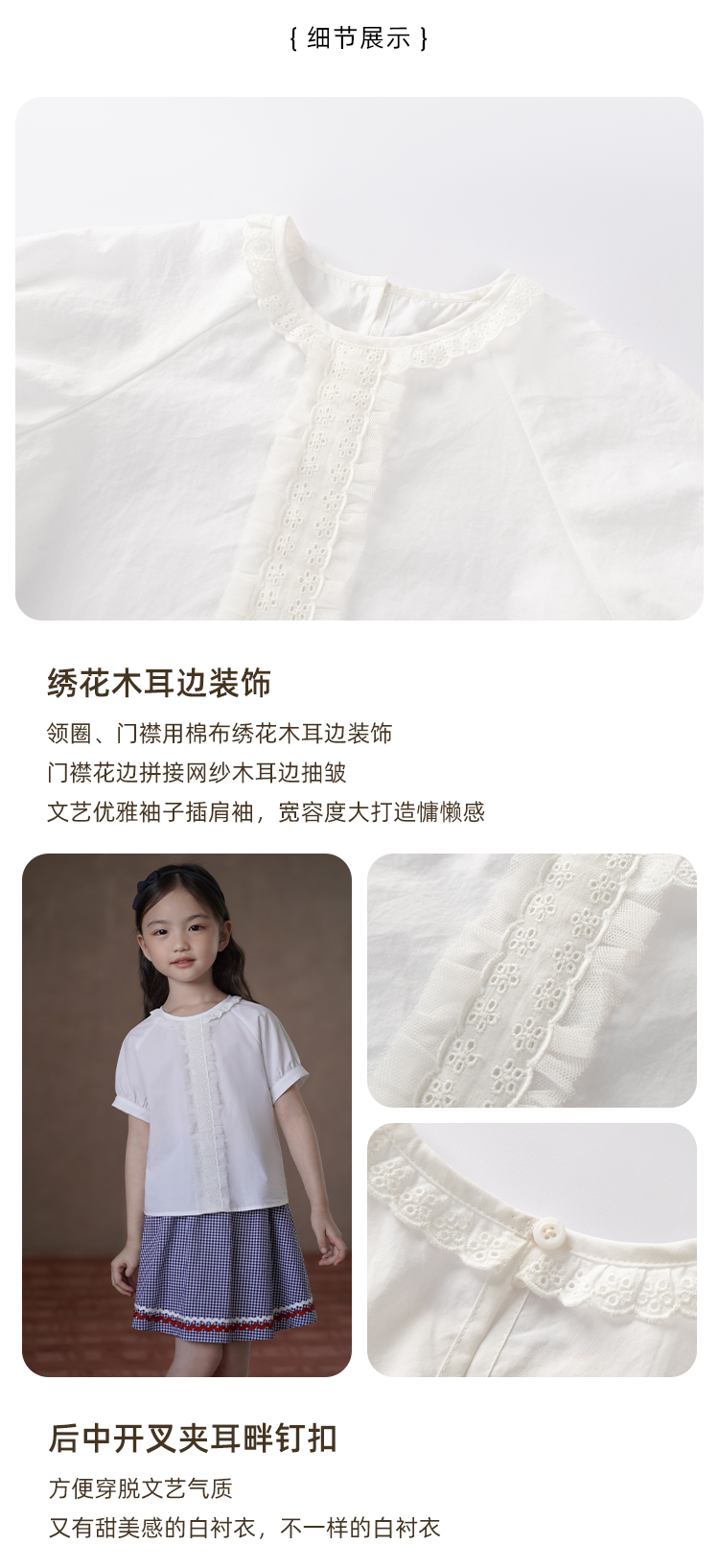 哈齒童裝夏季兒童涼感萊賽爾白色上衣女童短袖襯衫中大童夏裝新款