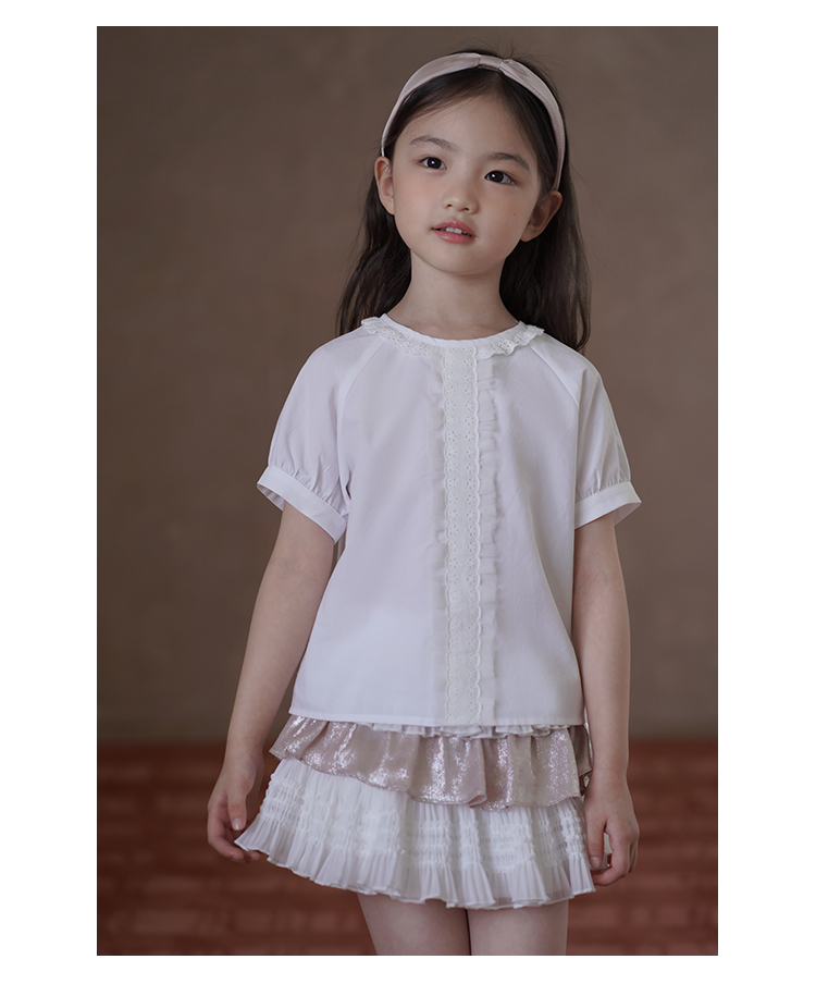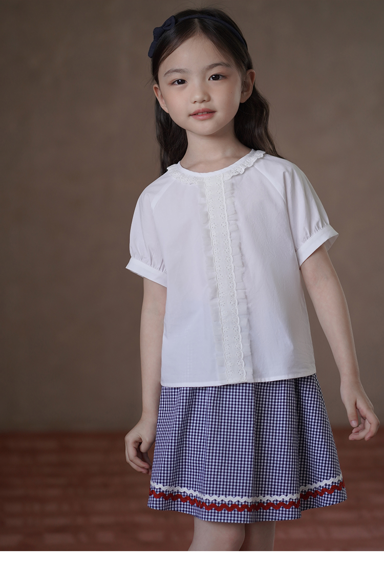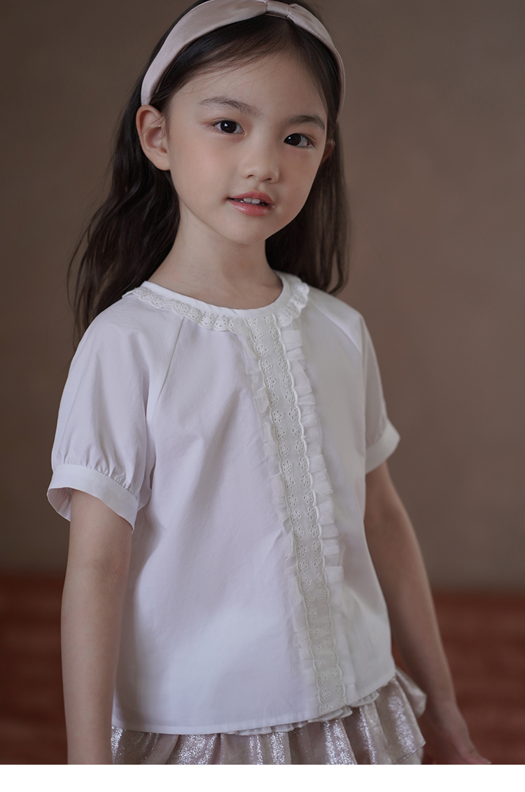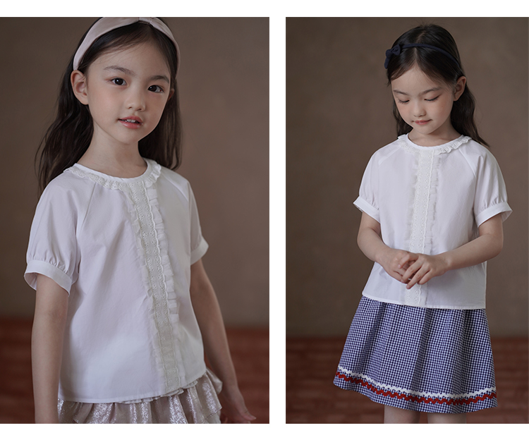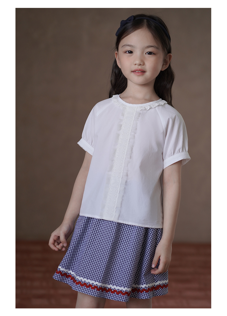 哈齒童裝夏季兒童涼感萊賽爾白色上衣女童短袖襯衫中大童夏裝新款