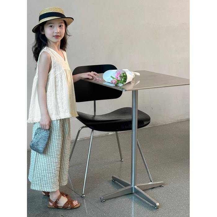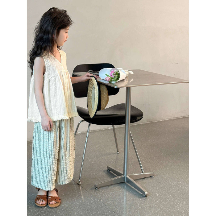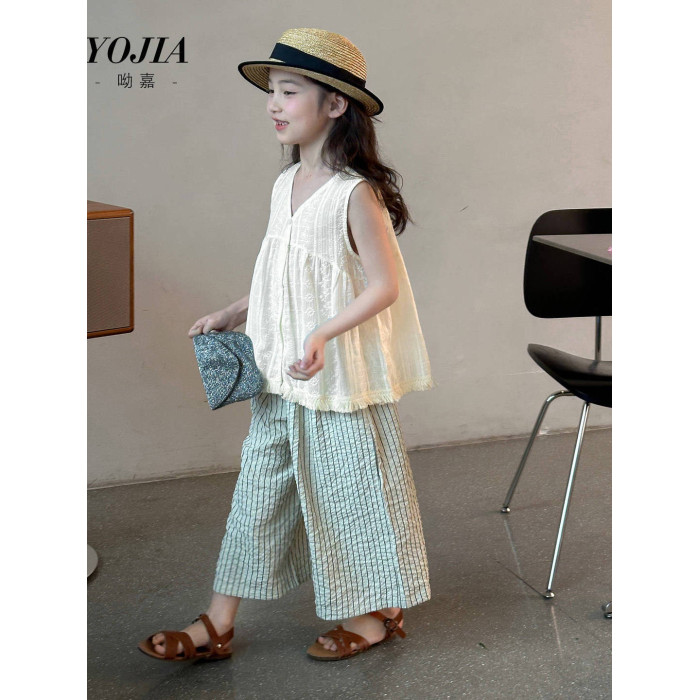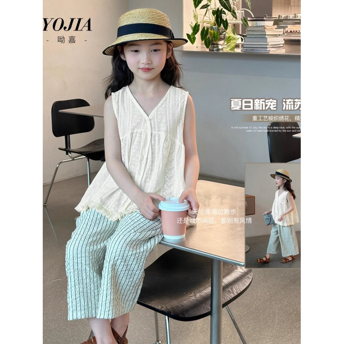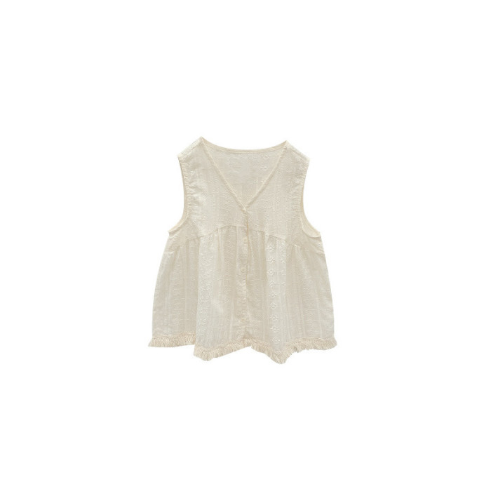 女童流蘇V領娃娃衫夏季2025新款韓版洋氣女孩無袖上衣薄款兒童T恤