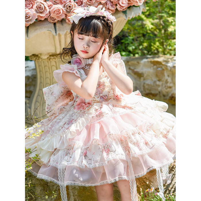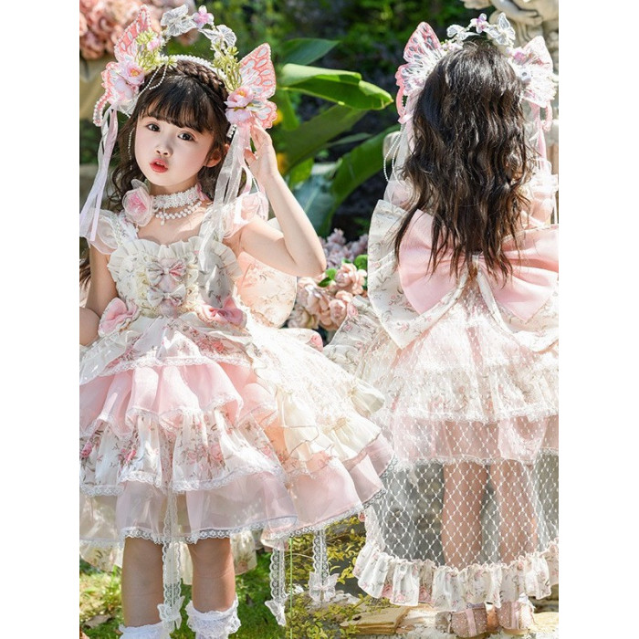 女童花仙子重工洛麗塔連衣裙2025新款兒童莫奈花園公主生日禮服裙