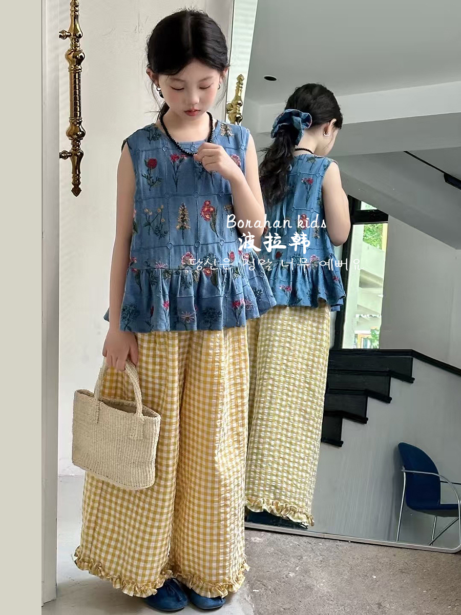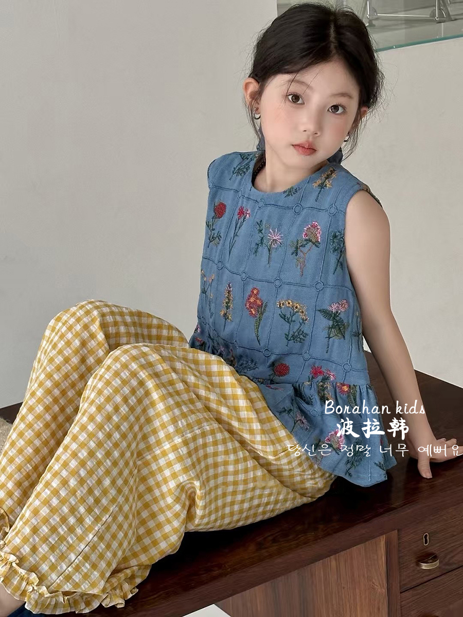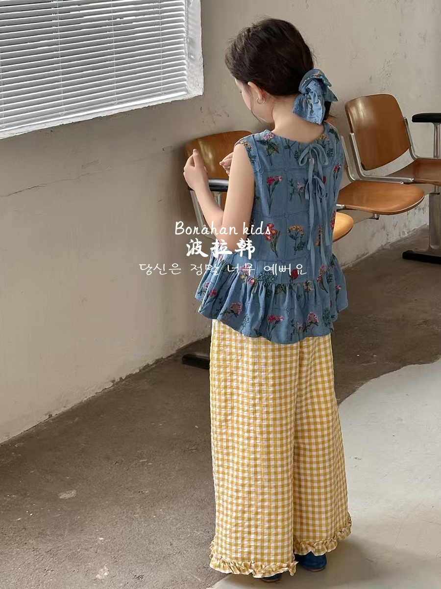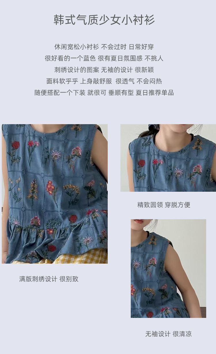 波拉韓兒童無袖娃娃衫夏季女童碎花襯衫2025新款中大童洋氣襯背心