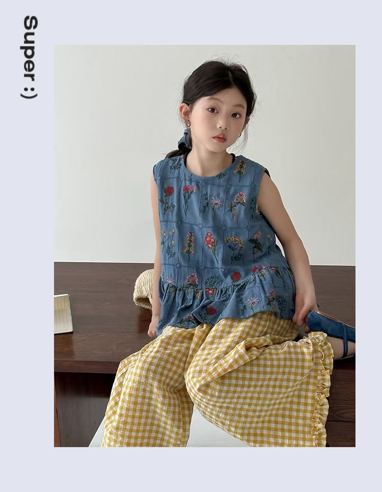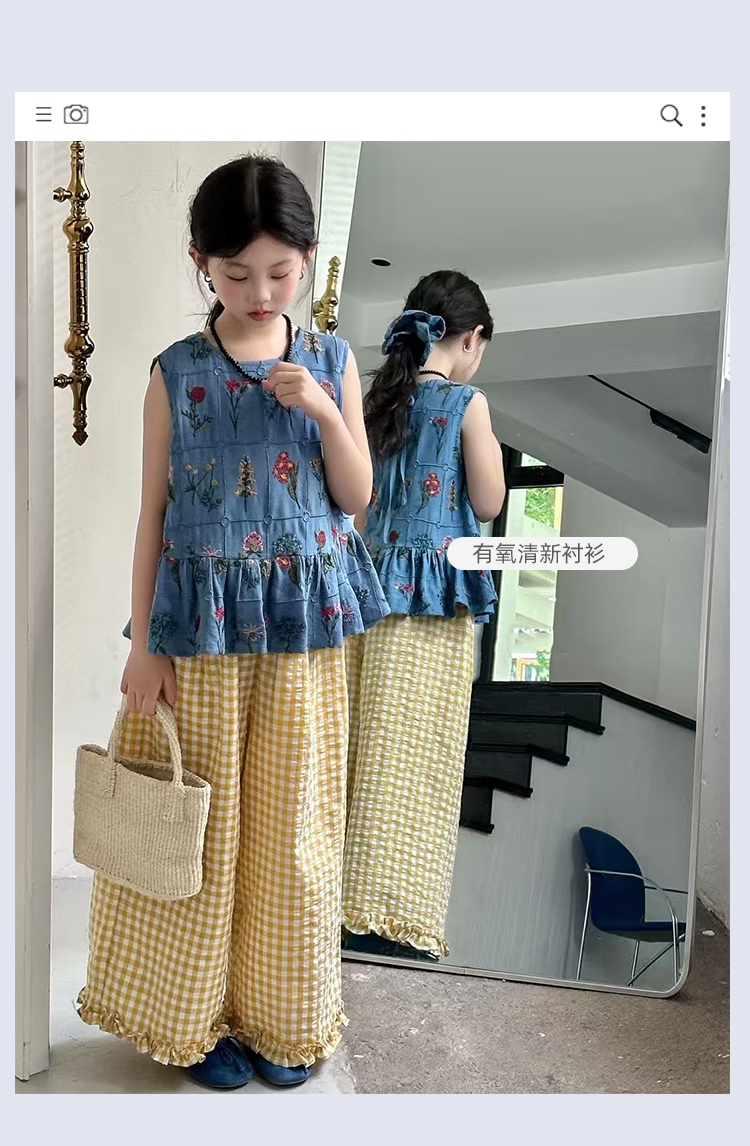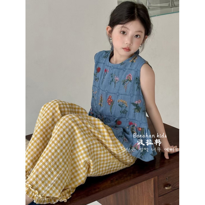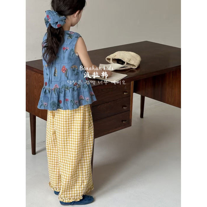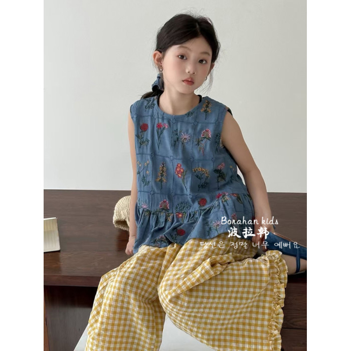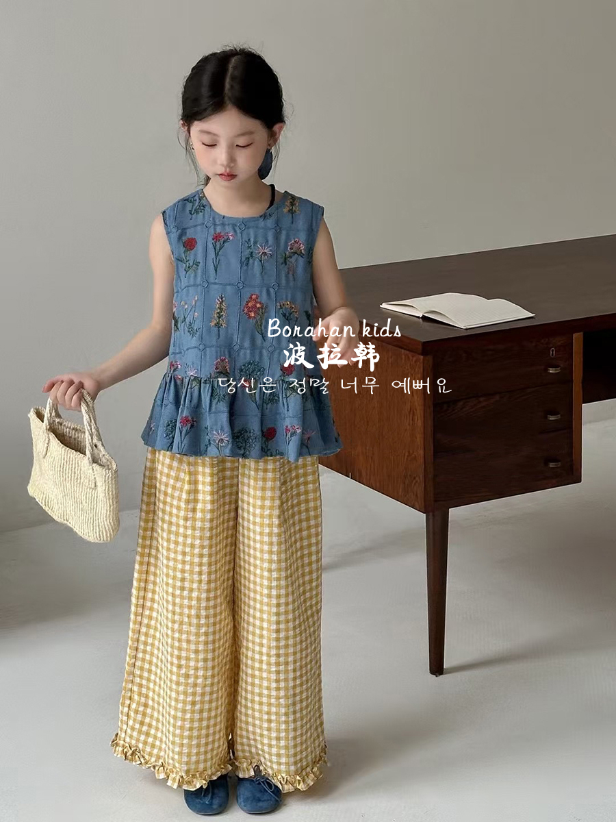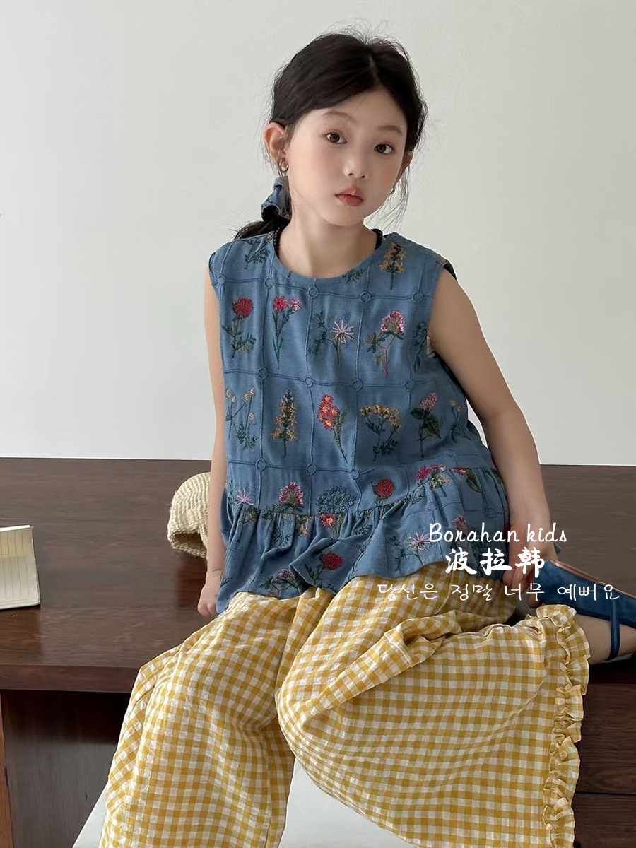 波拉韓兒童無袖娃娃衫夏季女童碎花襯衫2025新款中大童洋氣襯背心