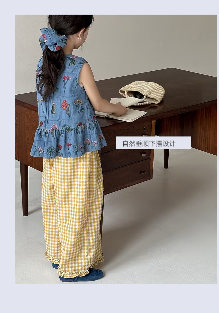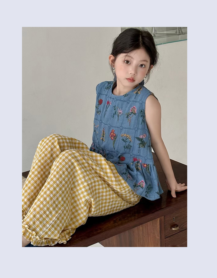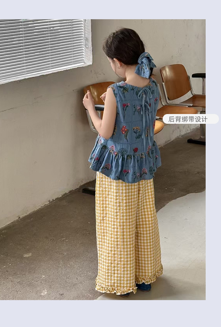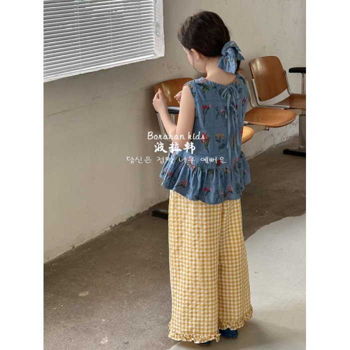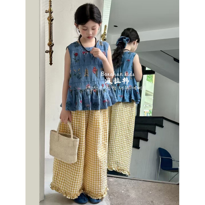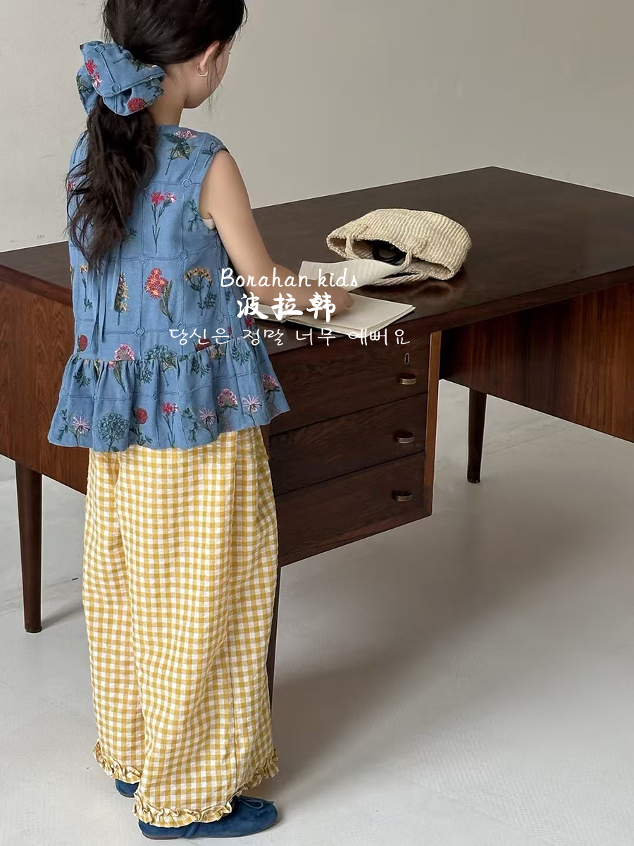 波拉韓兒童無袖娃娃衫夏季女童碎花襯衫2025新款中大童洋氣襯背心