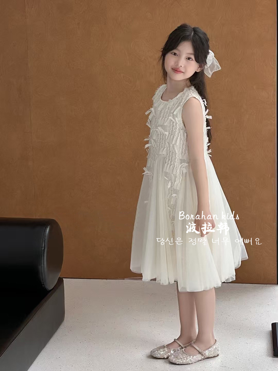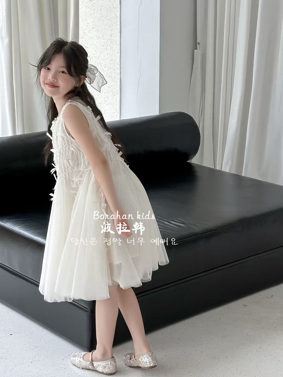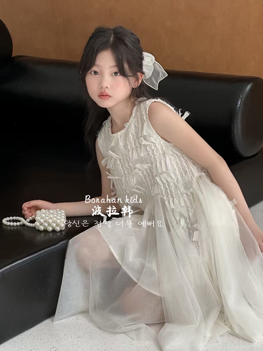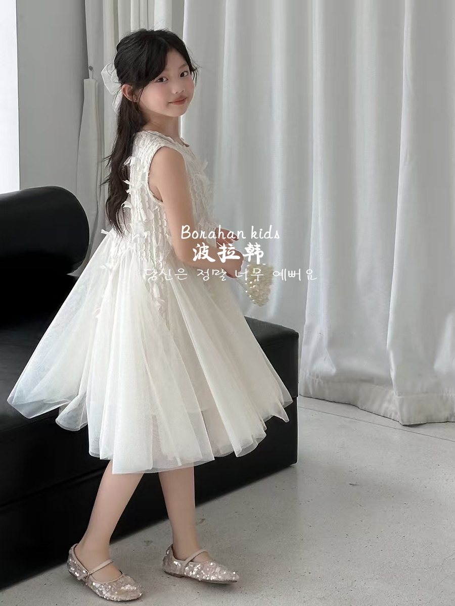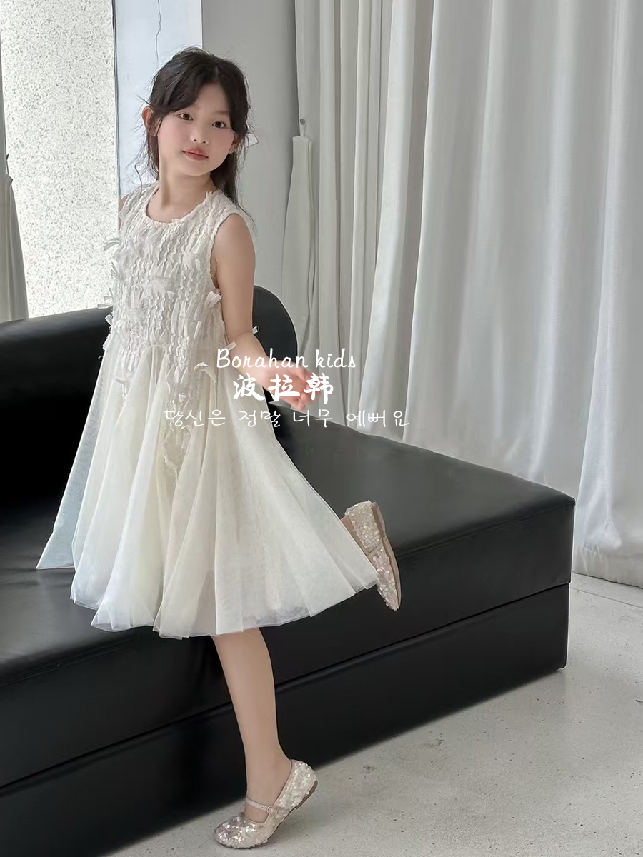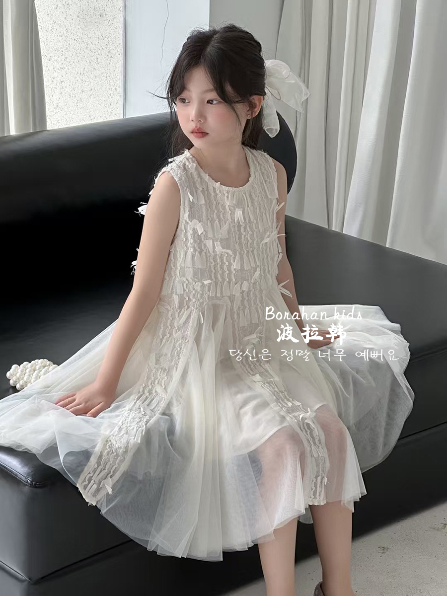 波拉韓女童夏季裙子2025新款兒童連衣裙小女孩背心裙禮服氣質紗裙