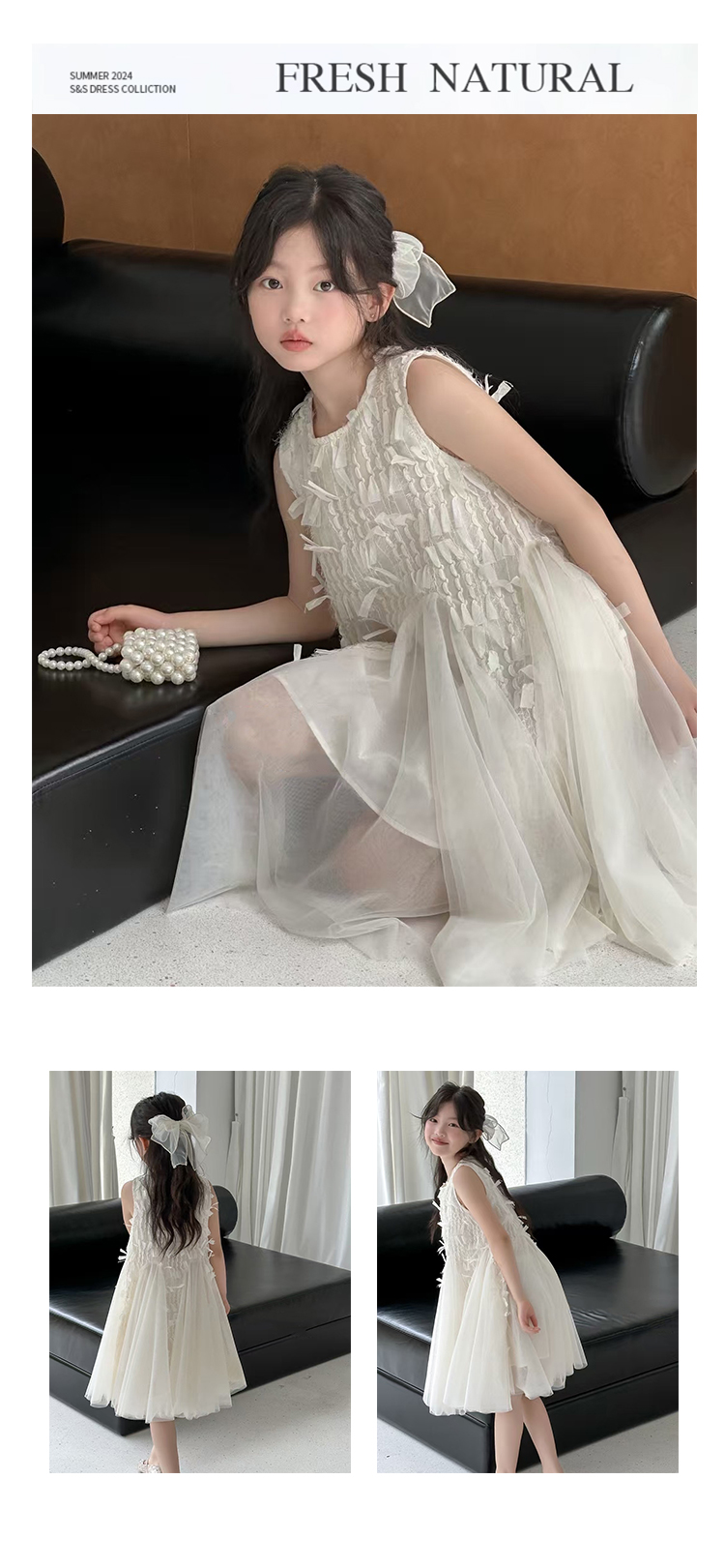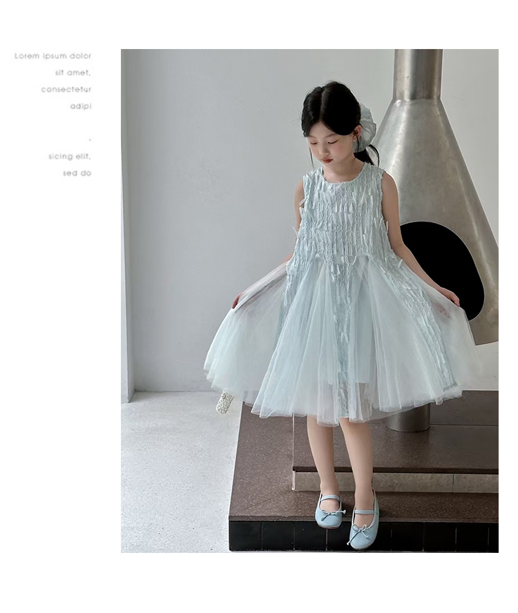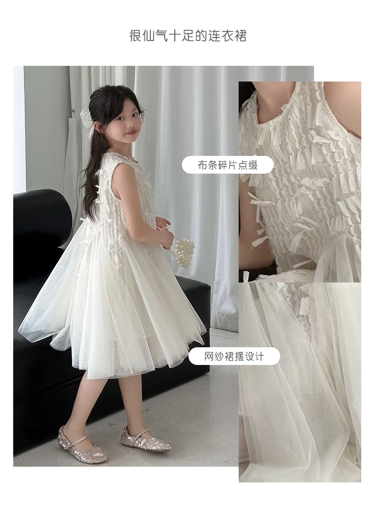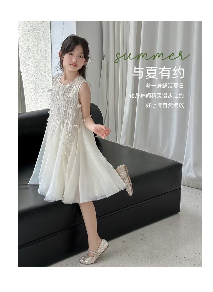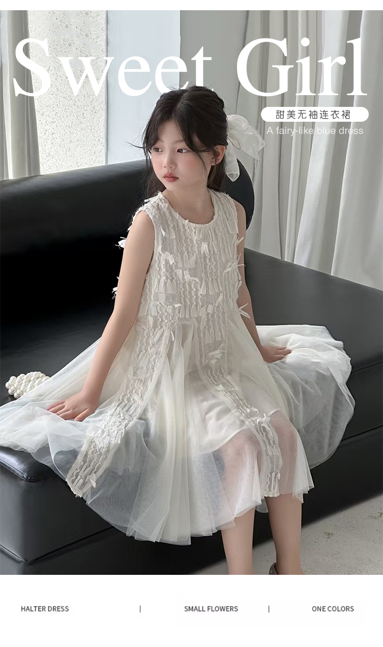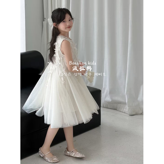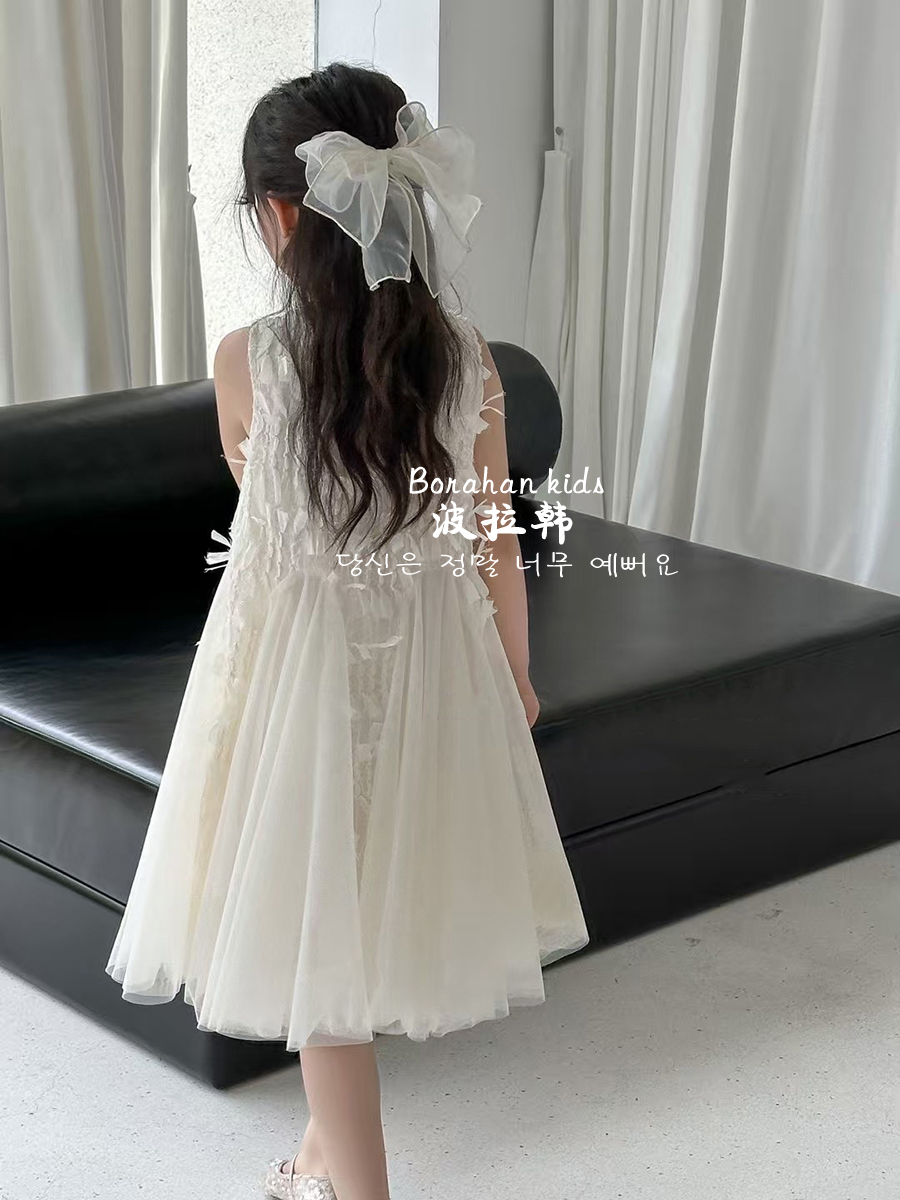波拉韓女童夏季裙子2025新款兒童連衣裙小女孩背心裙禮服氣質紗裙