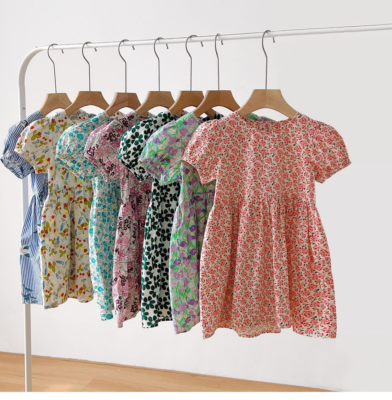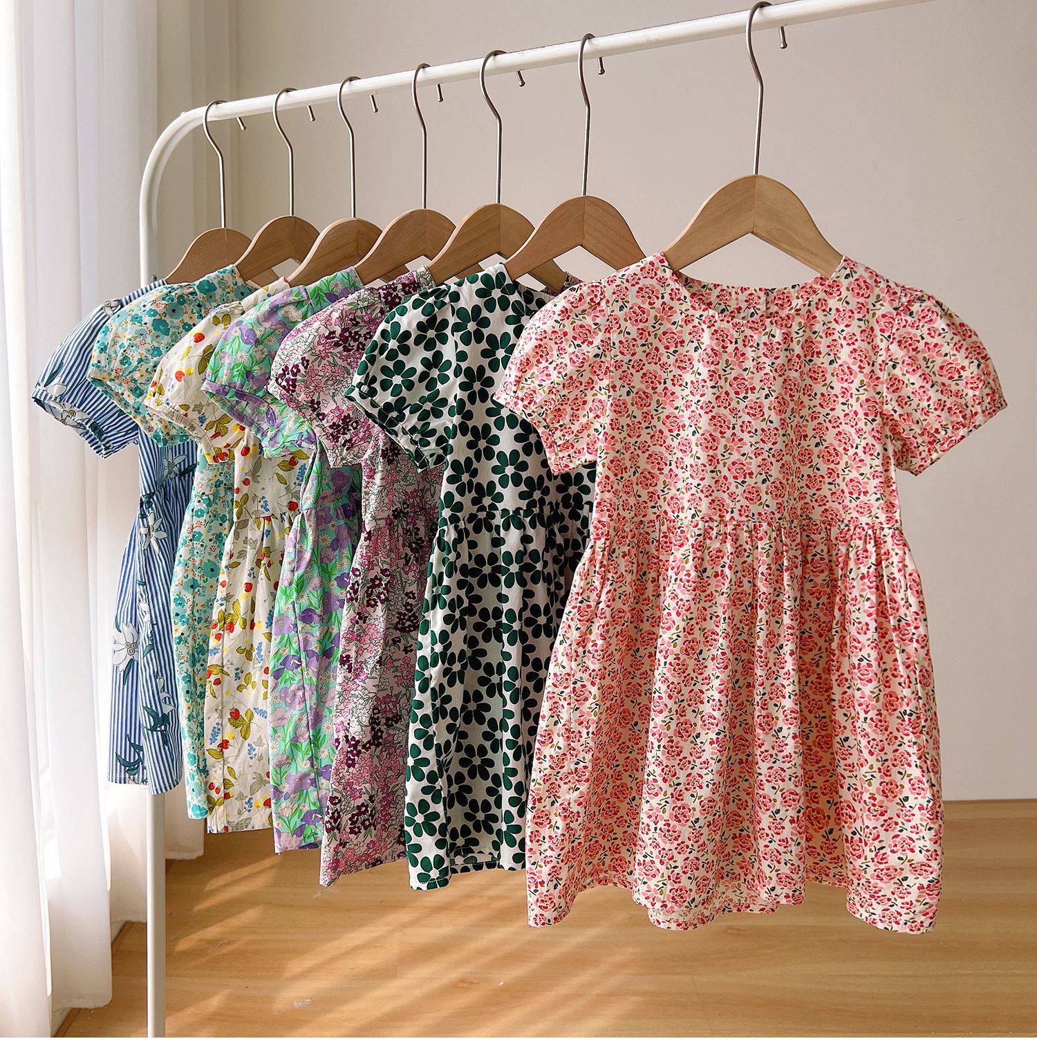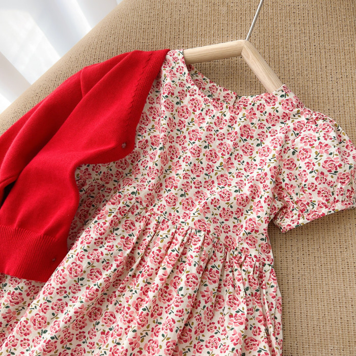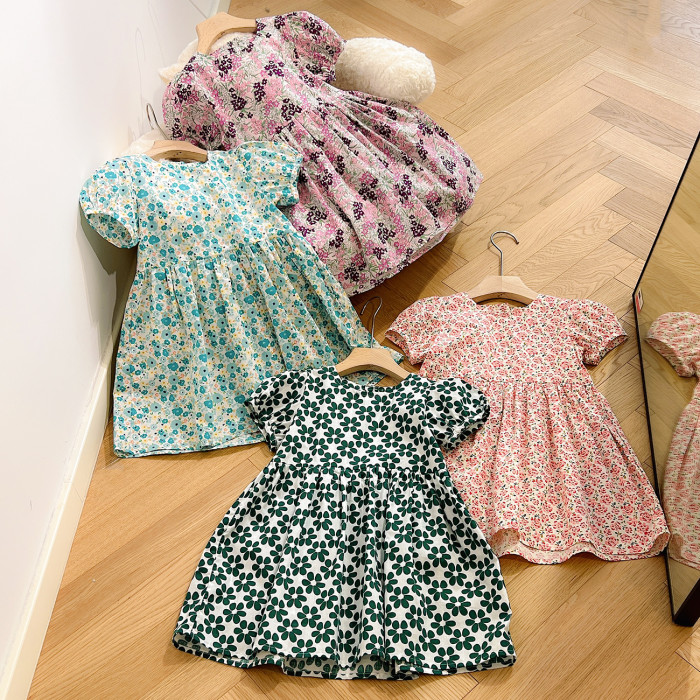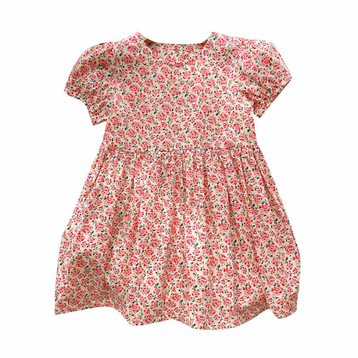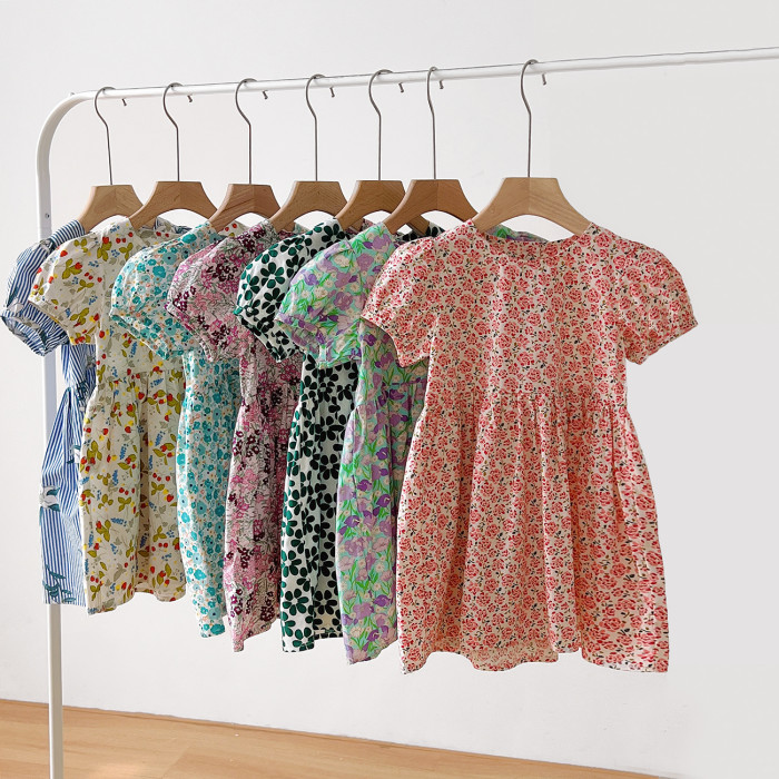 兒童純棉連衣裙 女童泡泡袖仙女裙 短袖中長款公主裙 夏款童裝