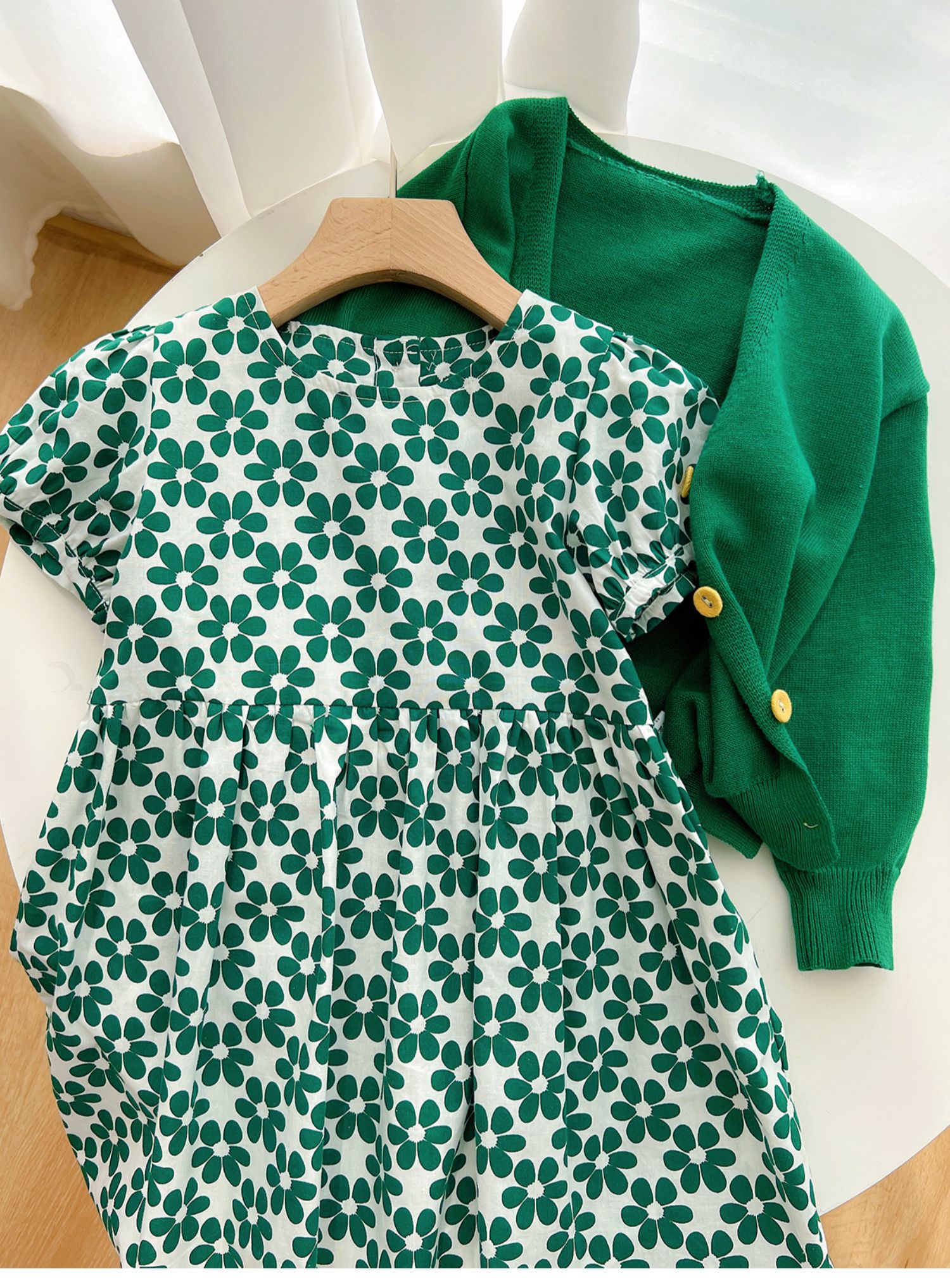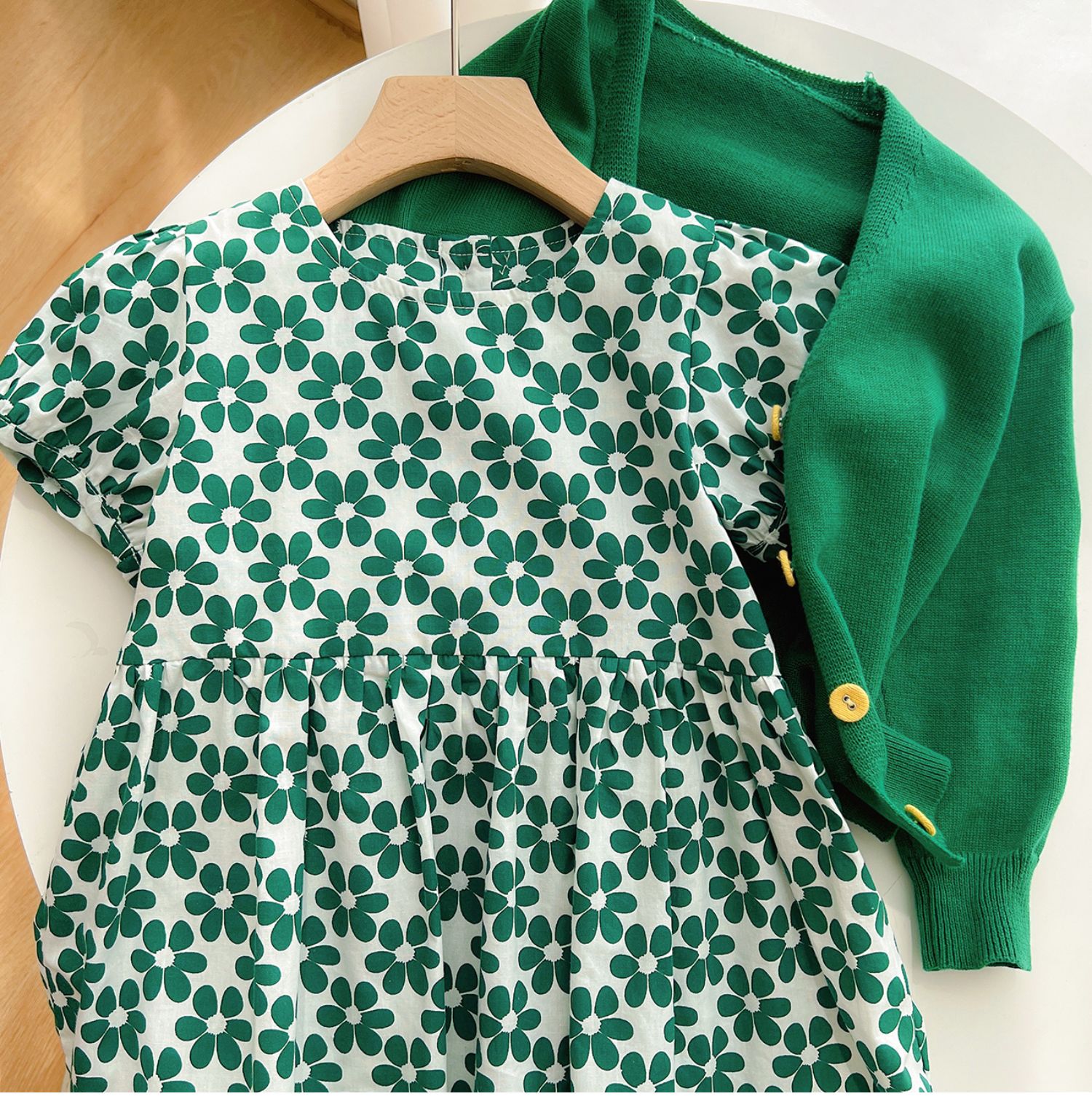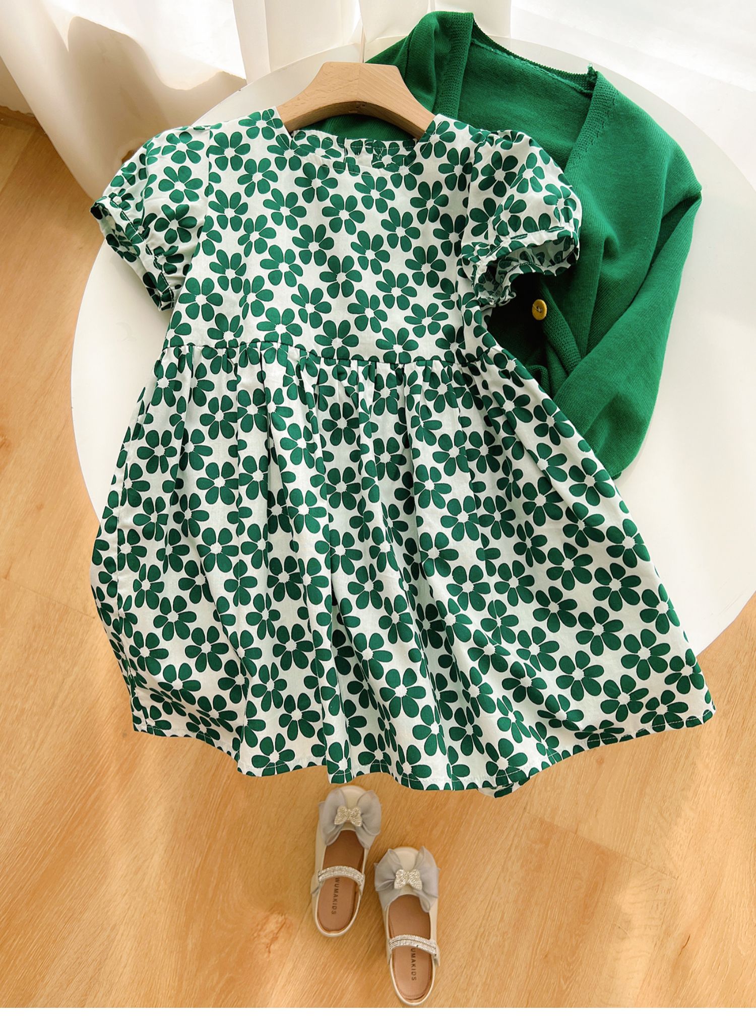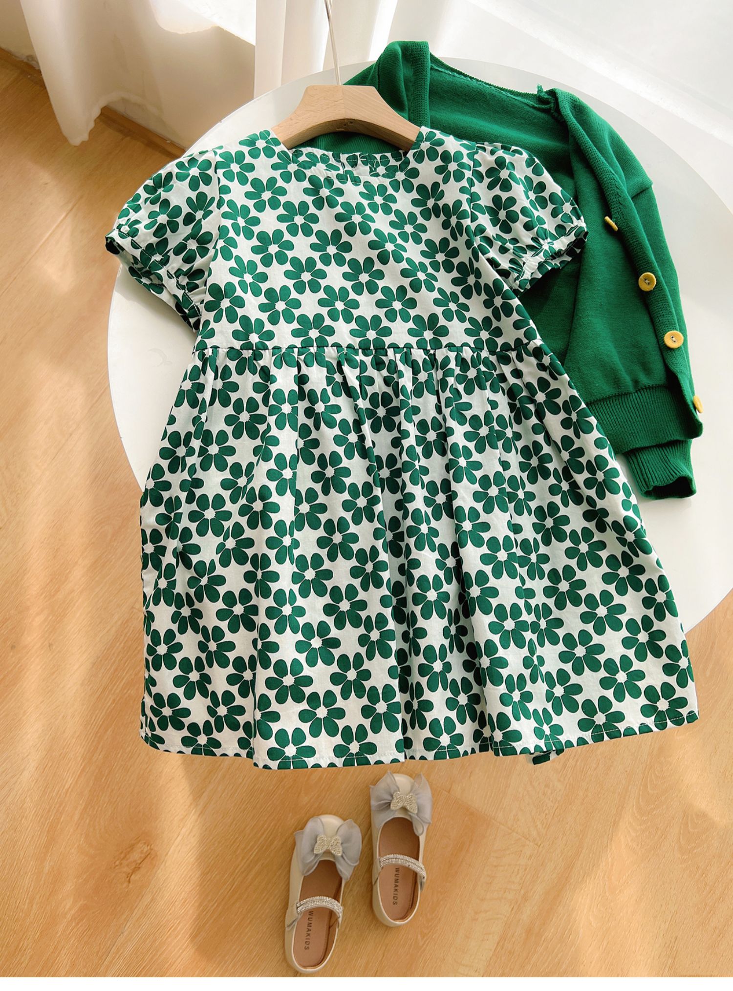 綠色碎花連衣裙