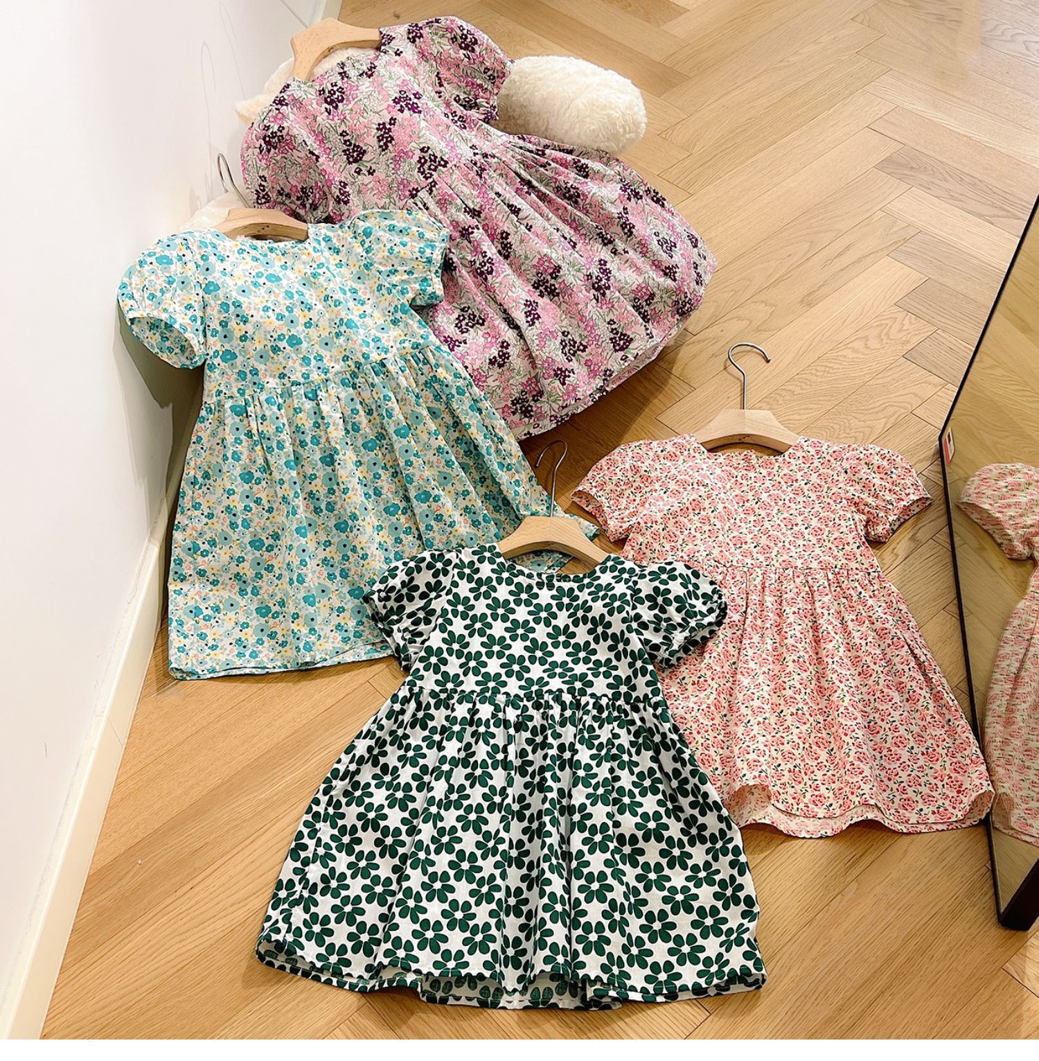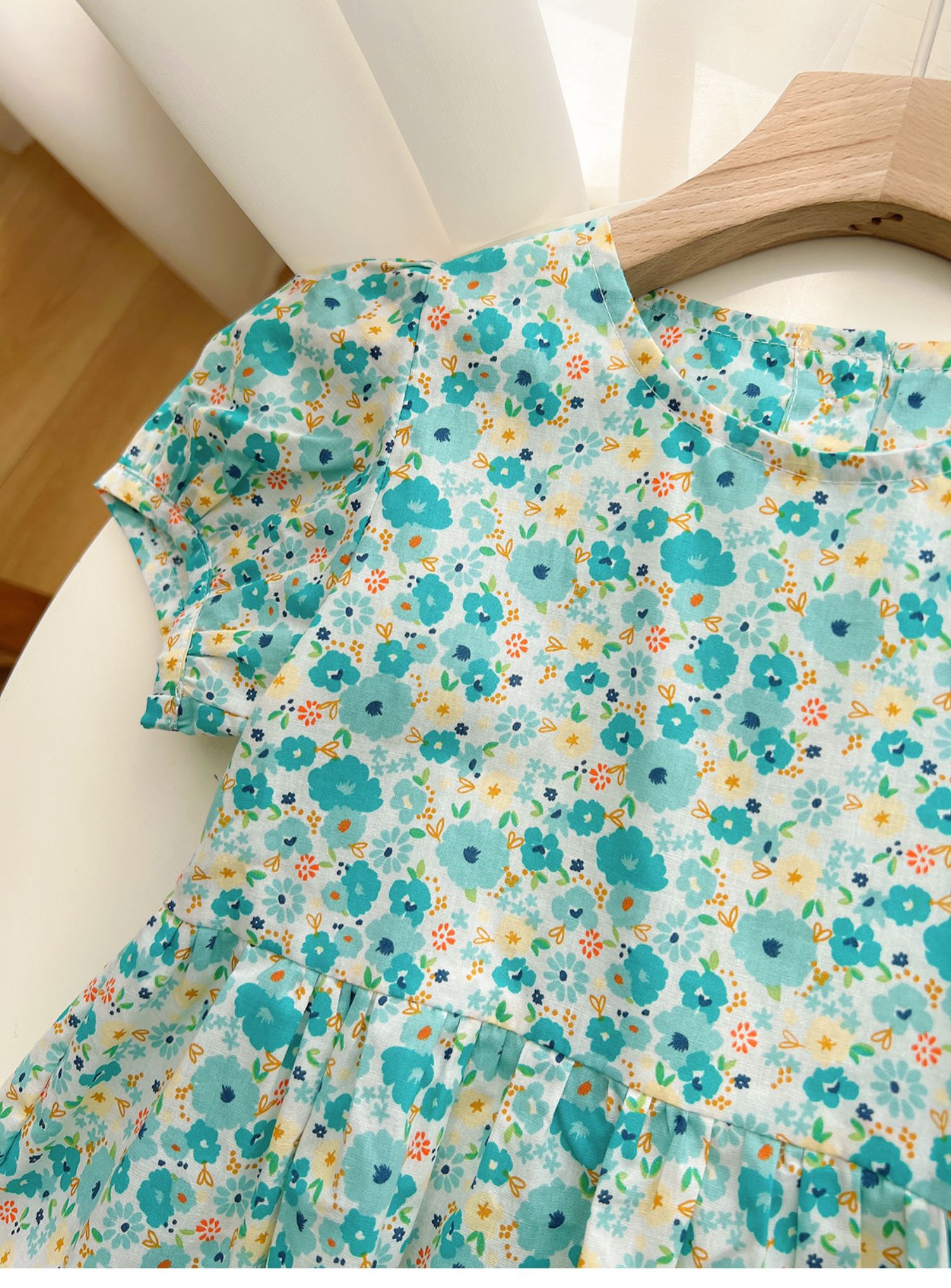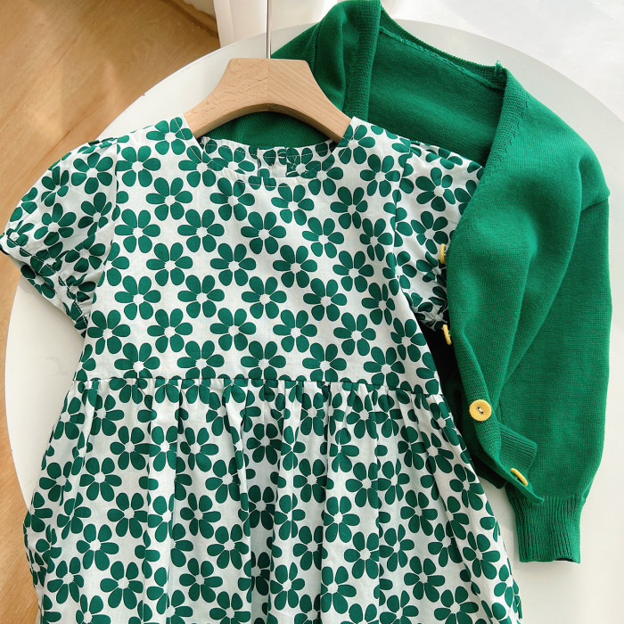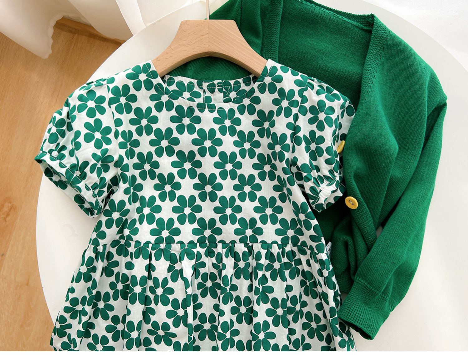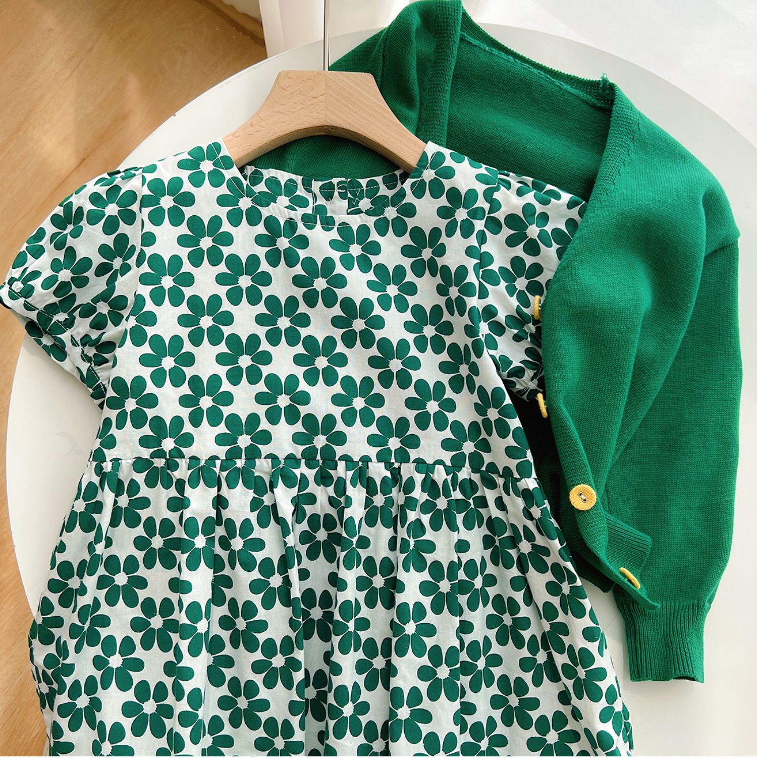 綠色碎花連衣裙