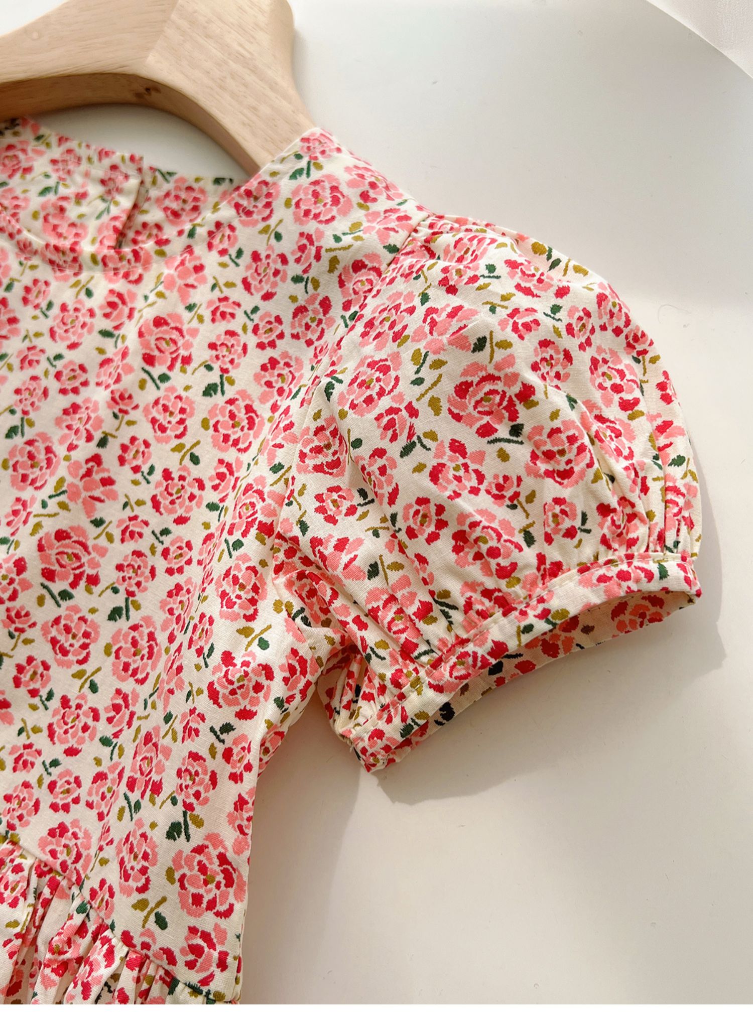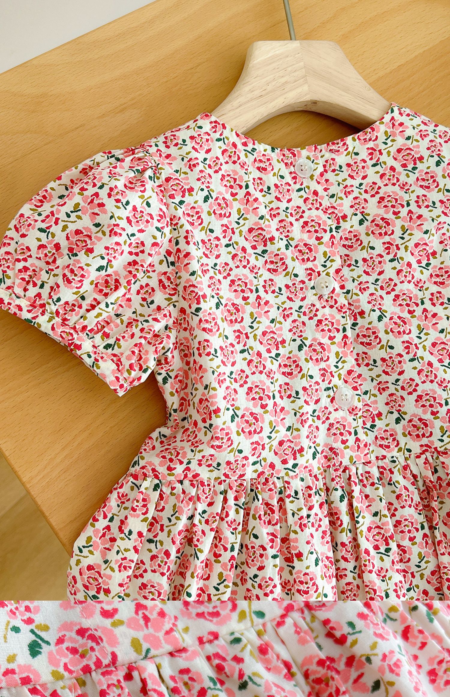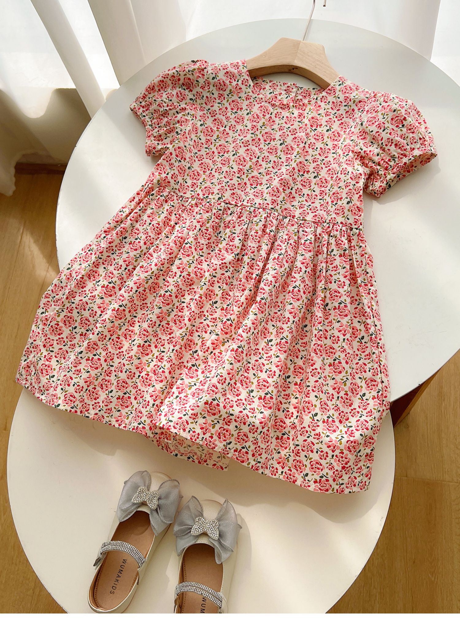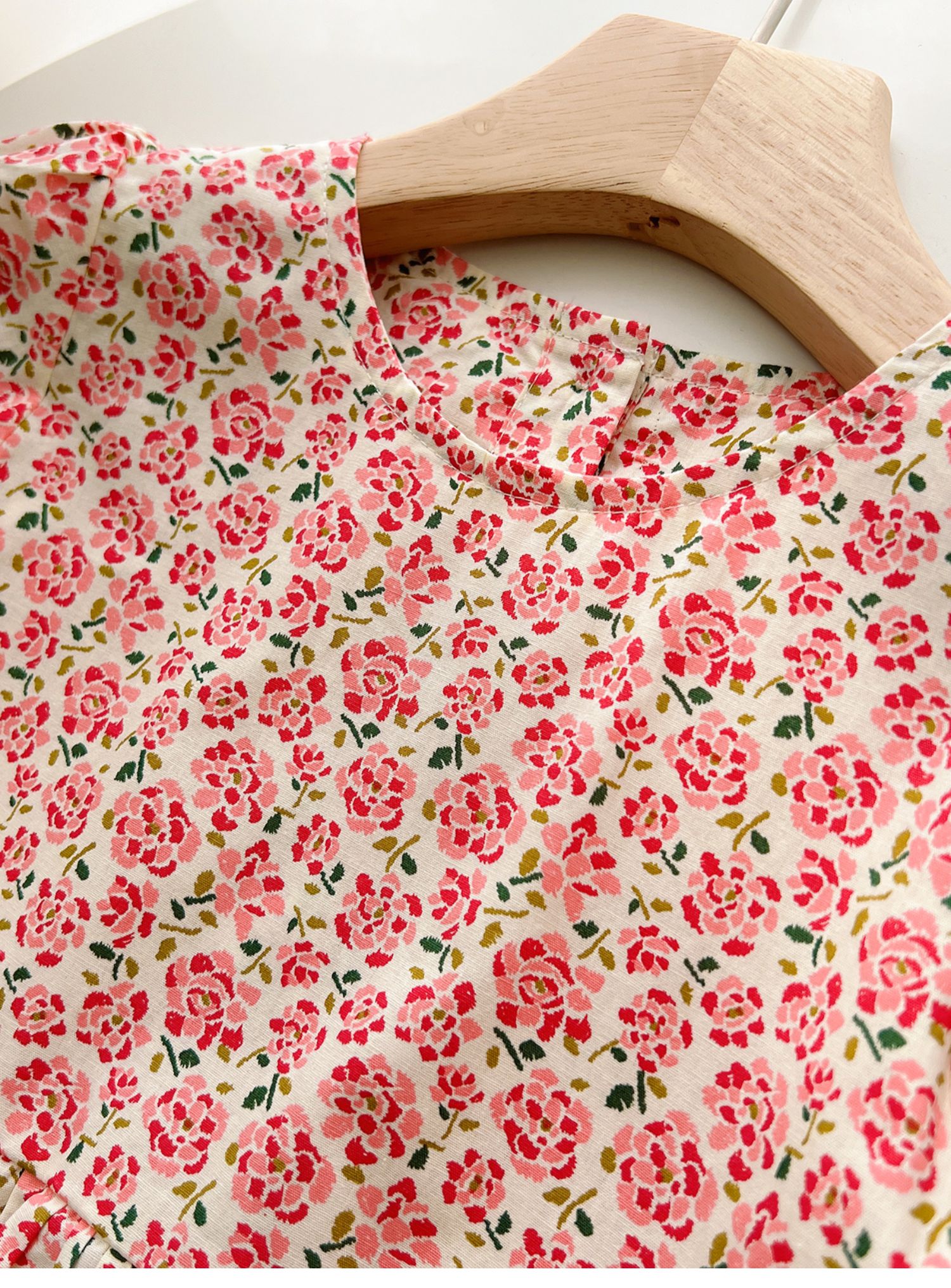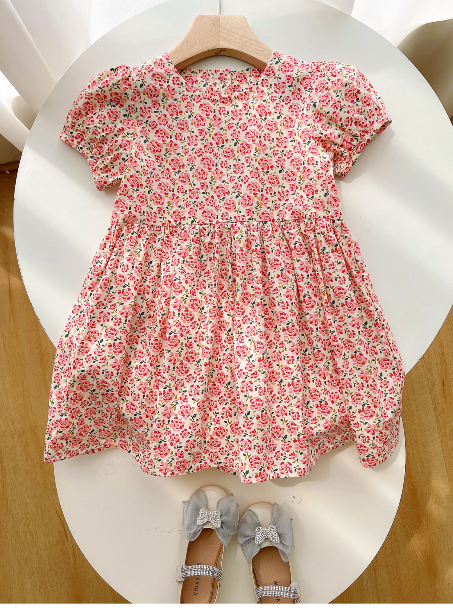 粉色碎花連衣裙
