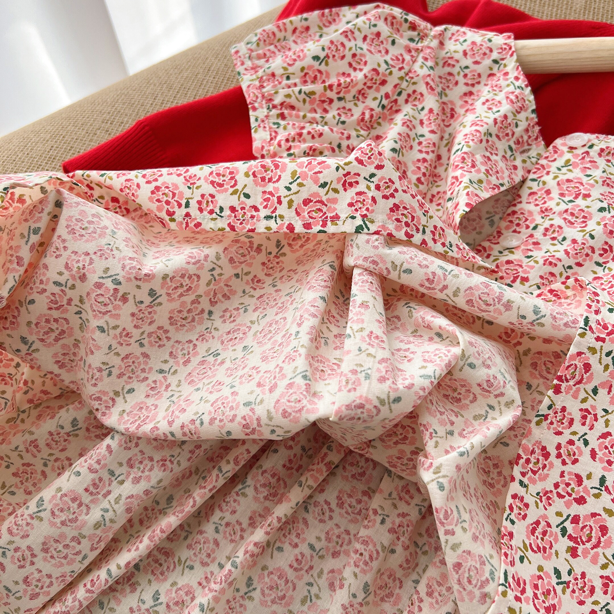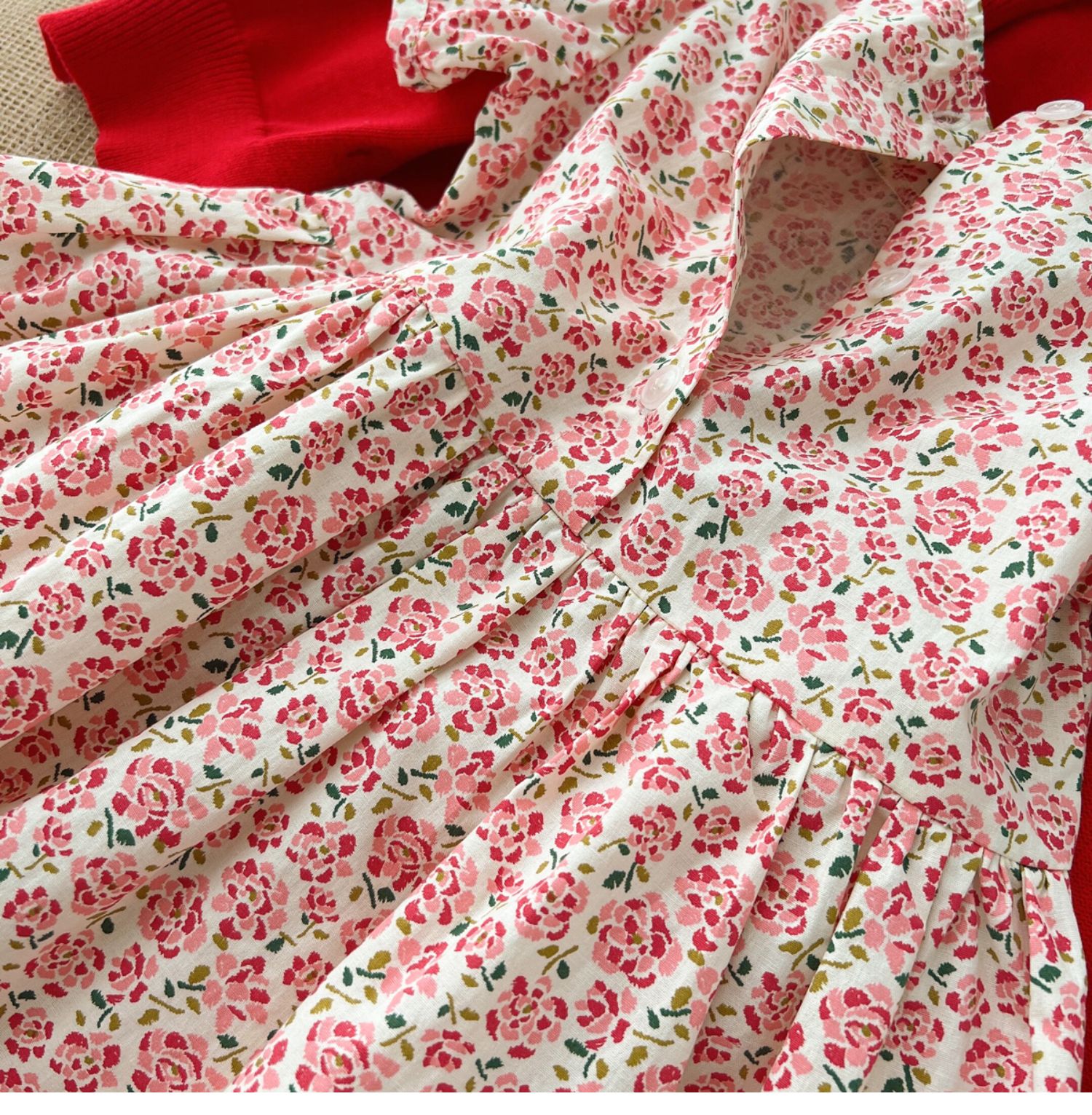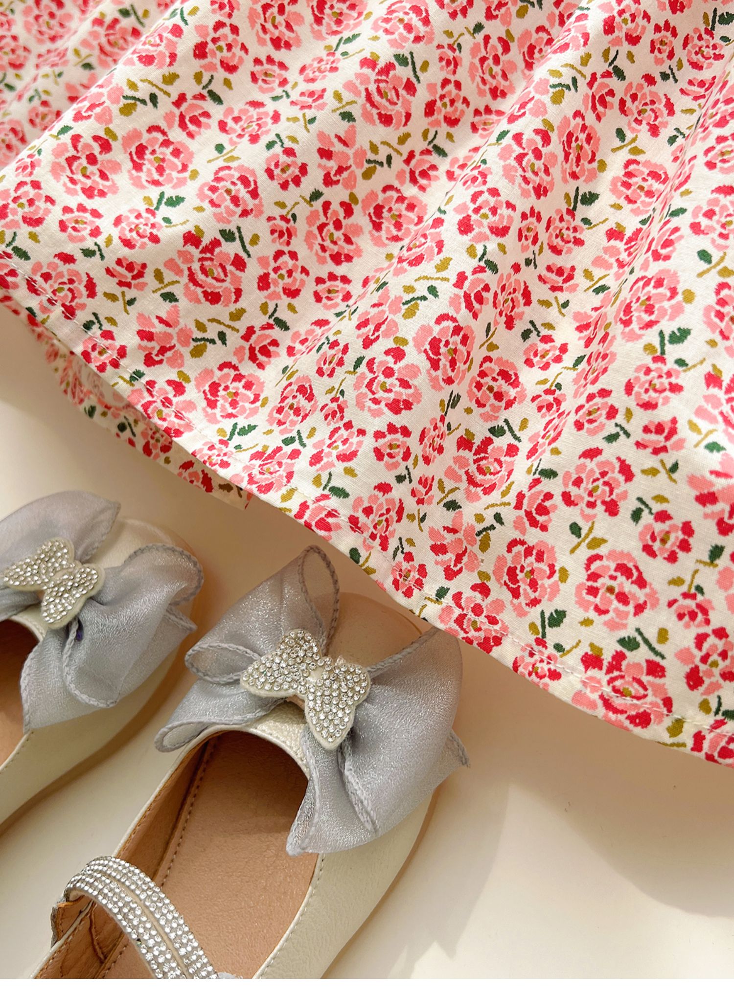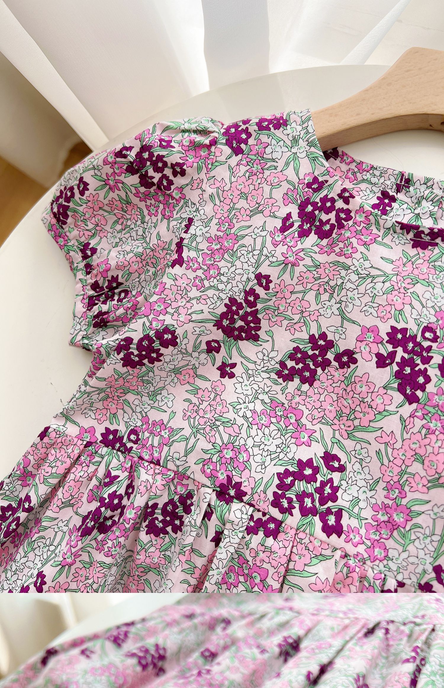 粉色碎花連衣裙