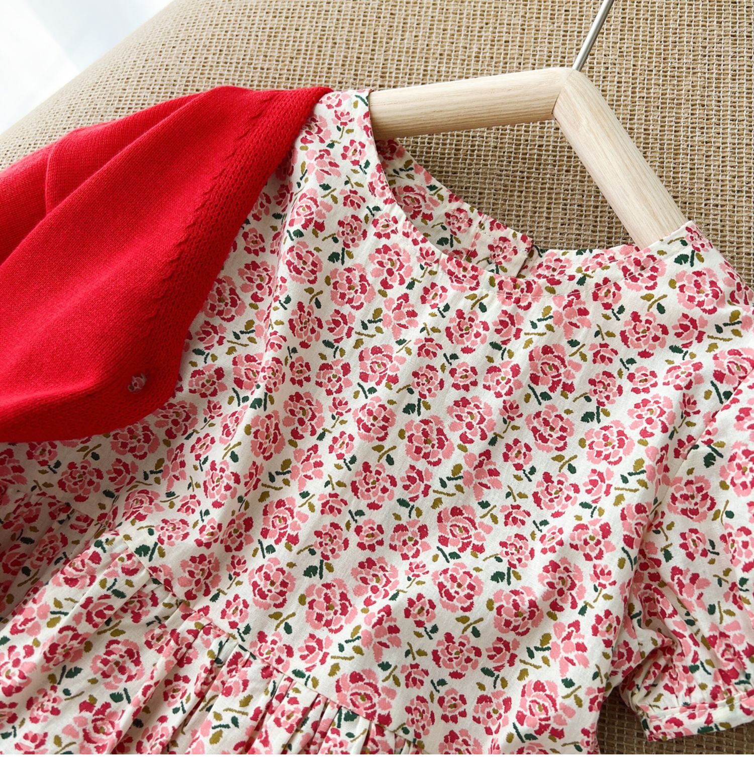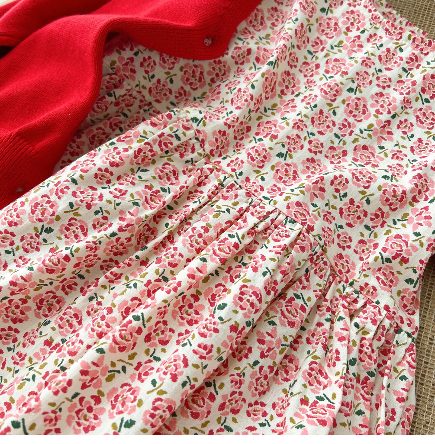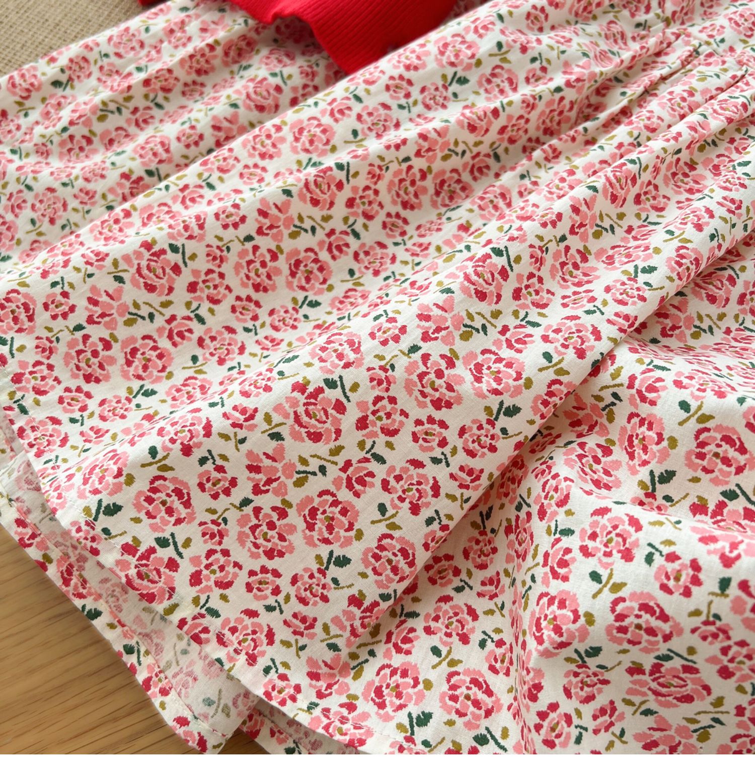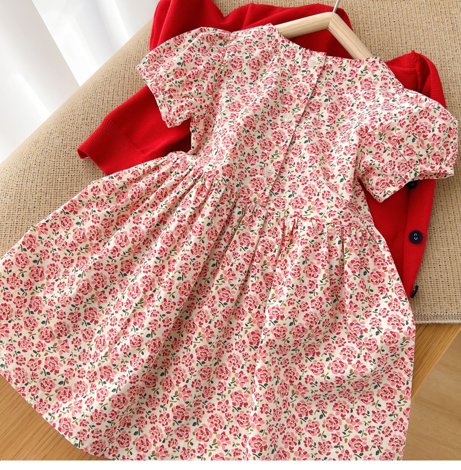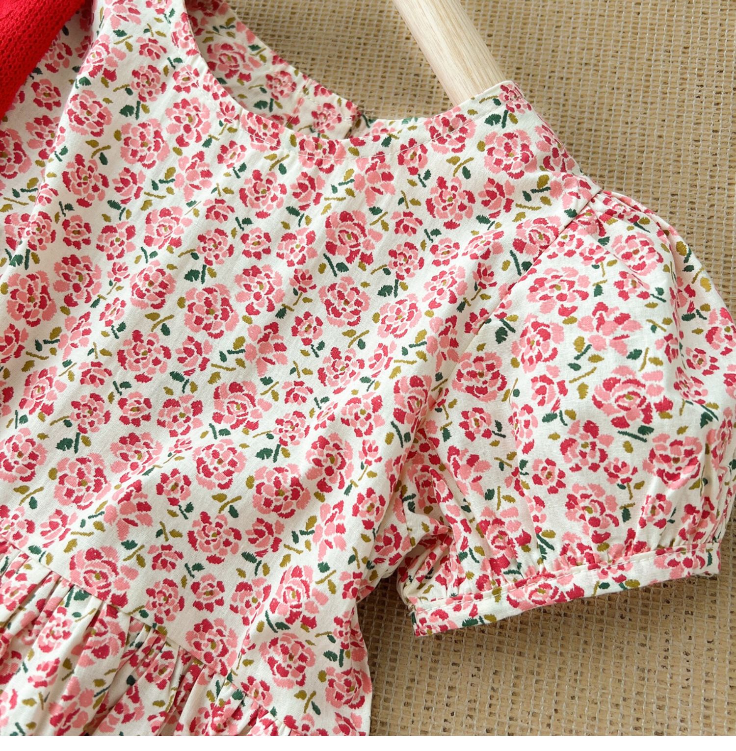 粉色碎花連衣裙