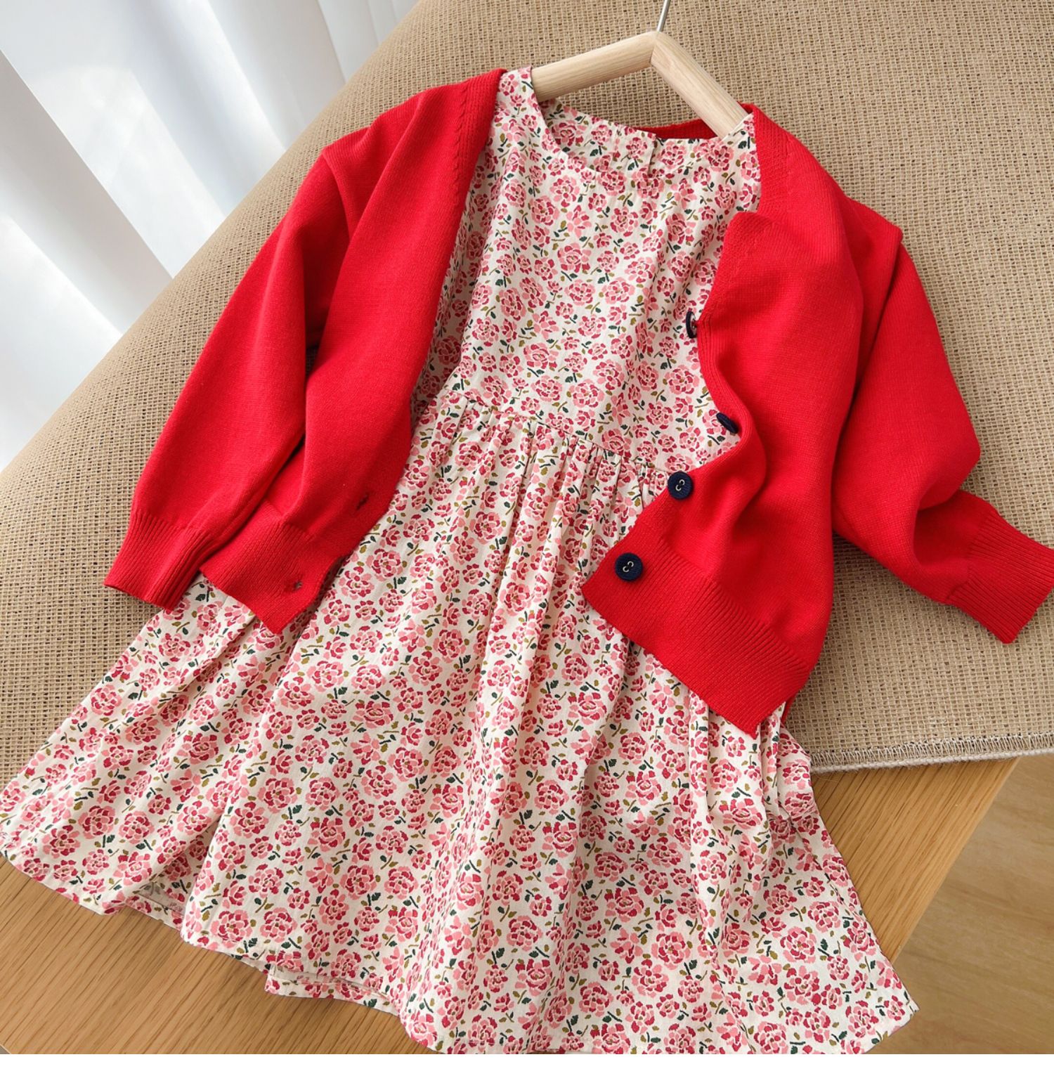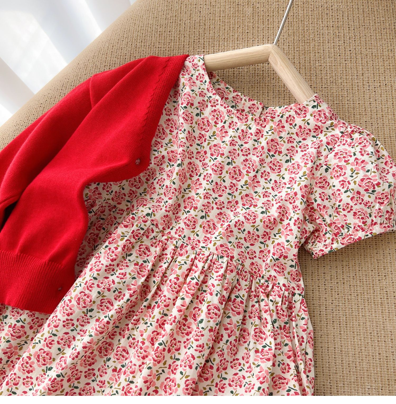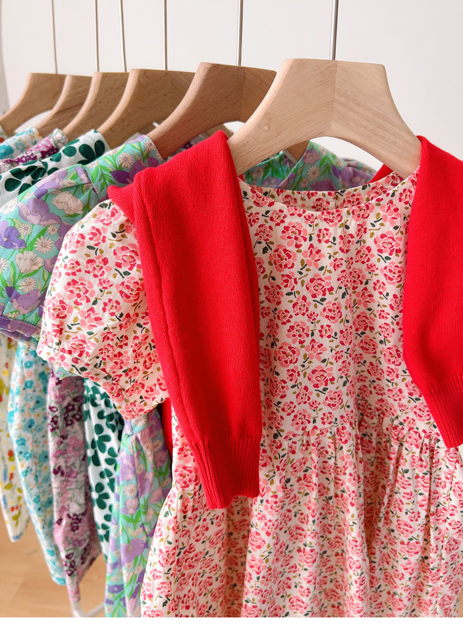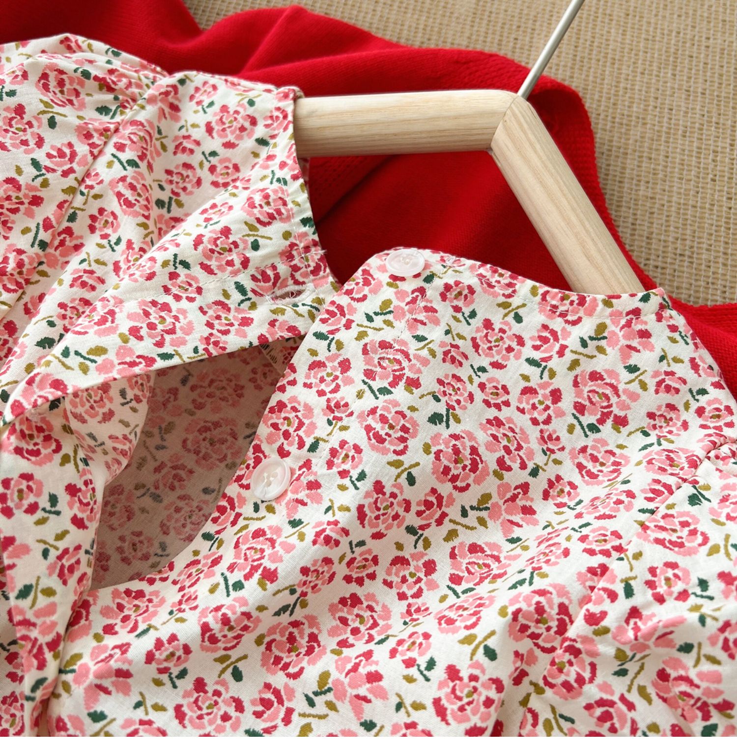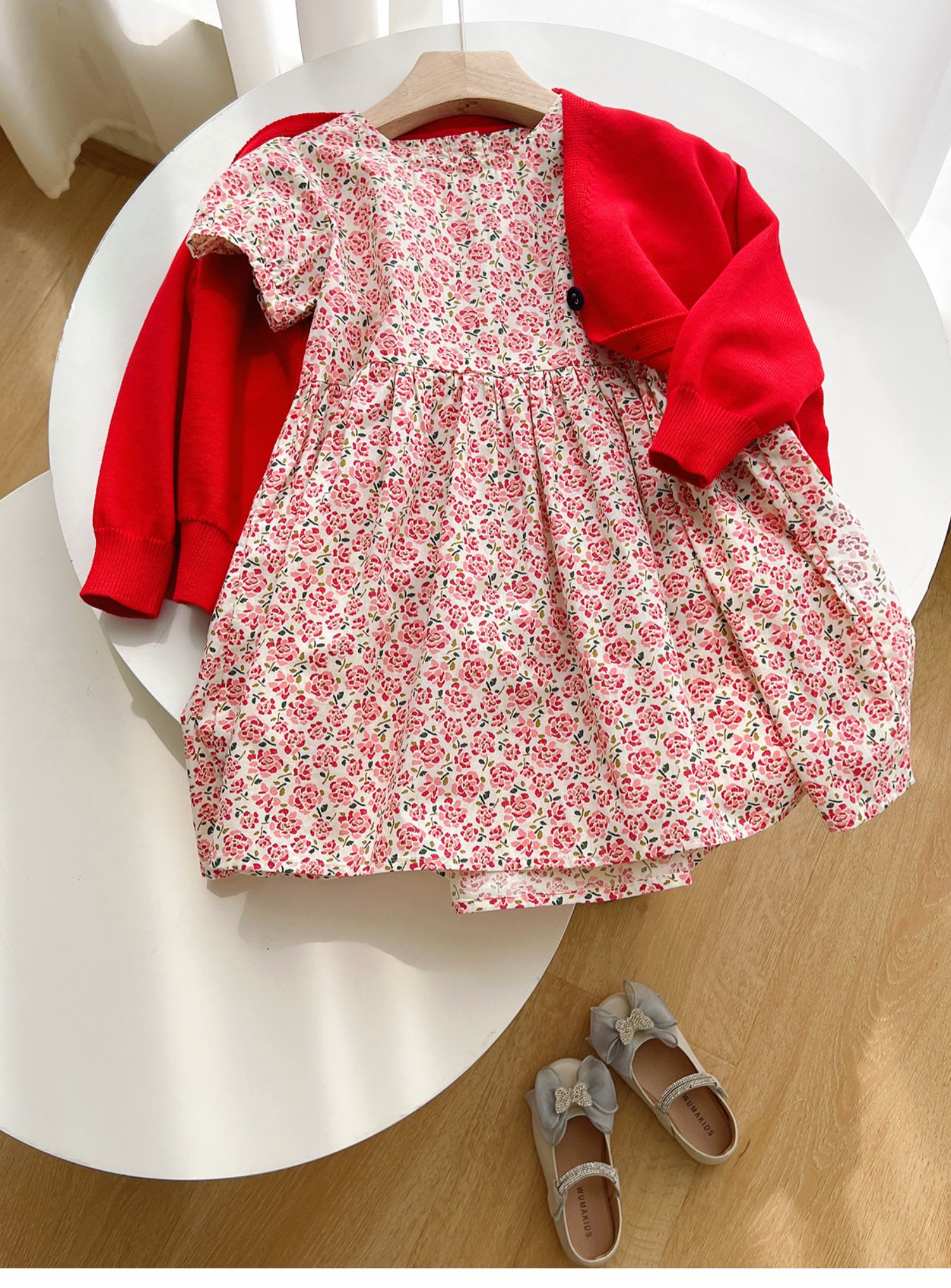 粉色碎花連衣裙