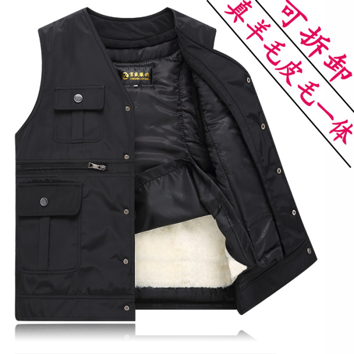 特價皮毛馬甲男秋冬真皮活裡可拆中老年皮毛一體多兜爸爸羊毛坎肩