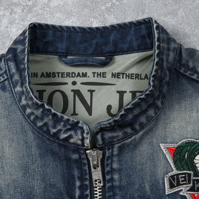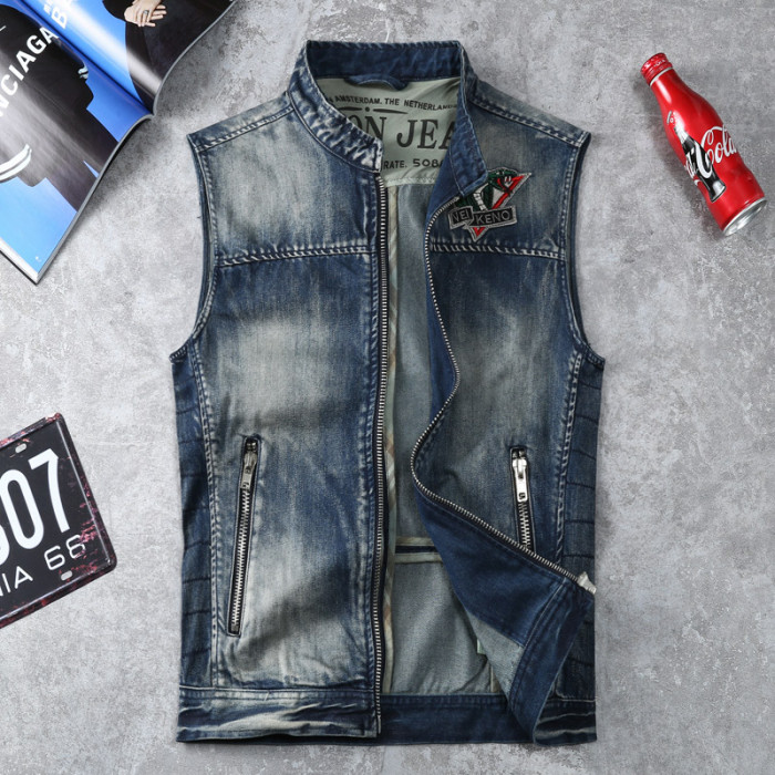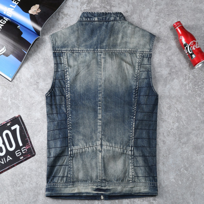 卡威酷潮男夏裝新款立領水洗做舊牛仔馬甲坎肩男休閒無袖馬夾外套