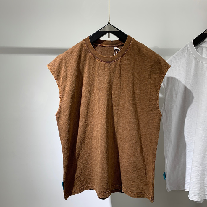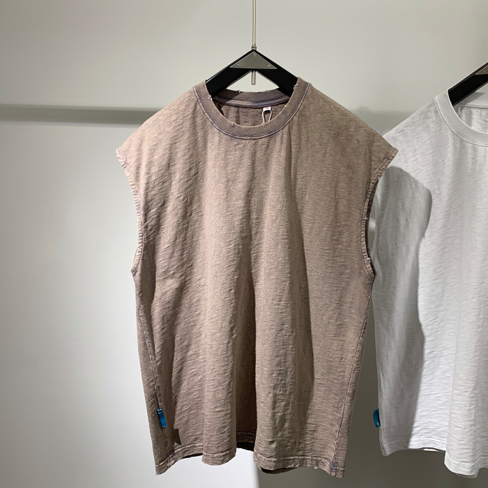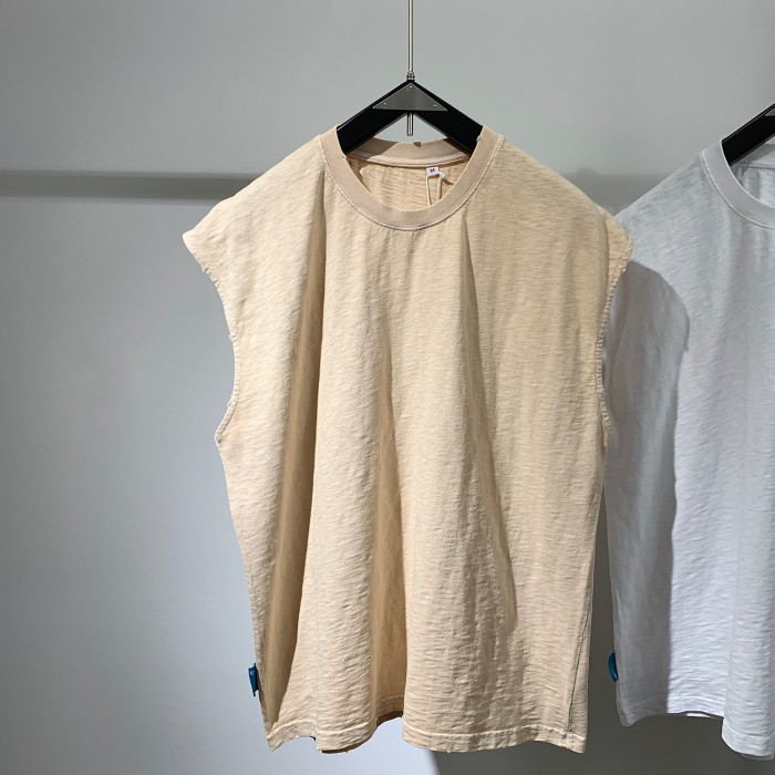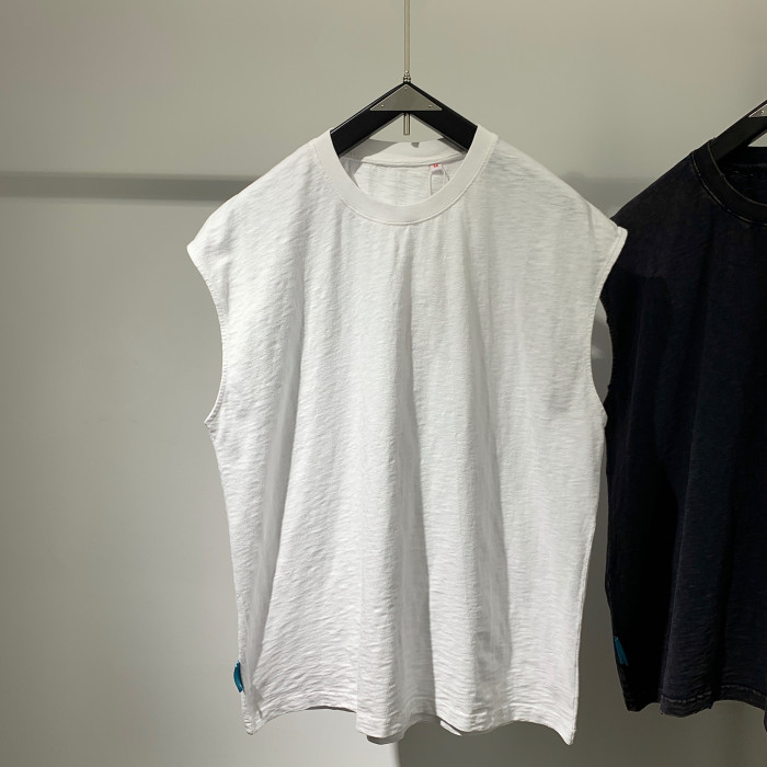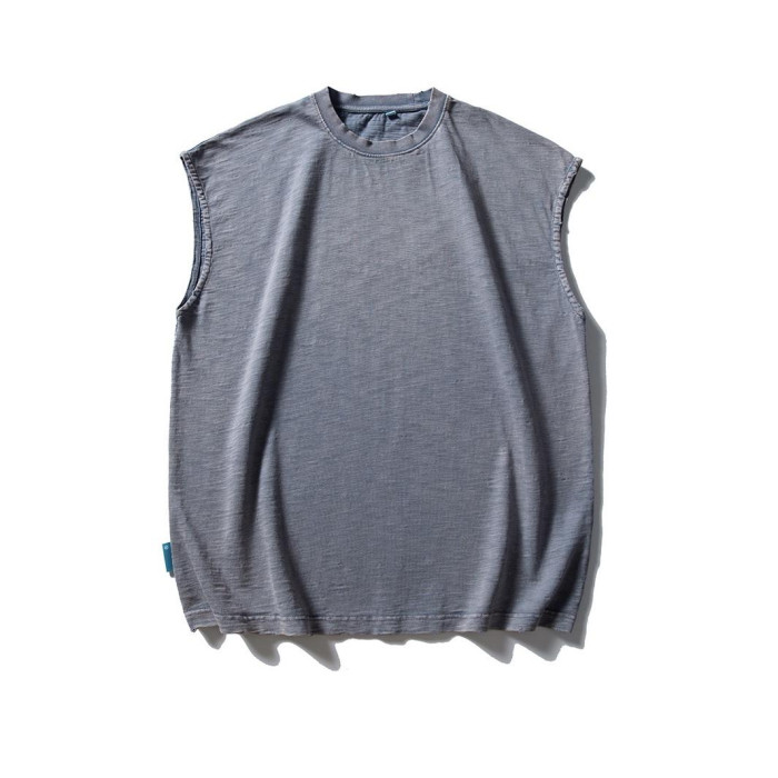 夏季潮牌淨版百搭寬肩休閒濶版背心男美式水洗做舊竹節棉無袖坎肩