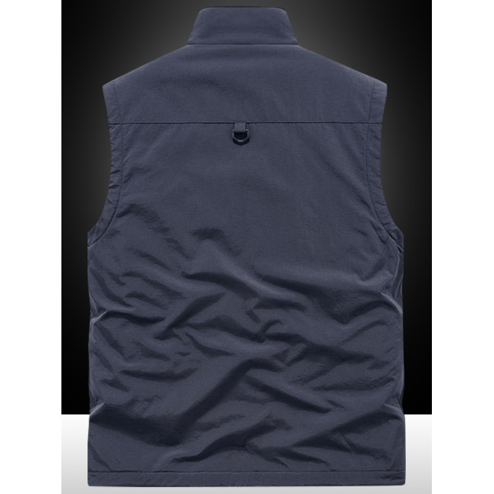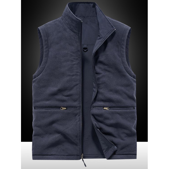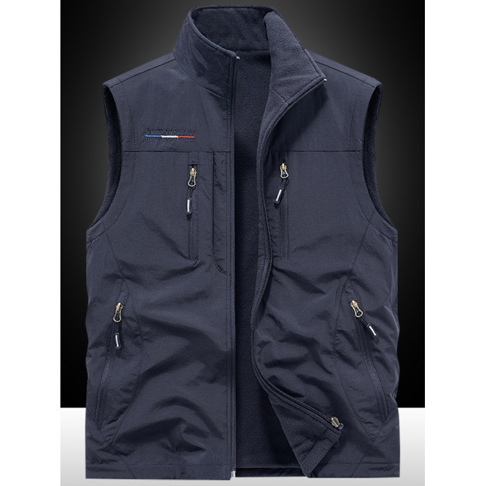 雙面穿加絨馬甲男秋冬戶外寬松大碼立領坎肩中年多袋釣魚保暖外套