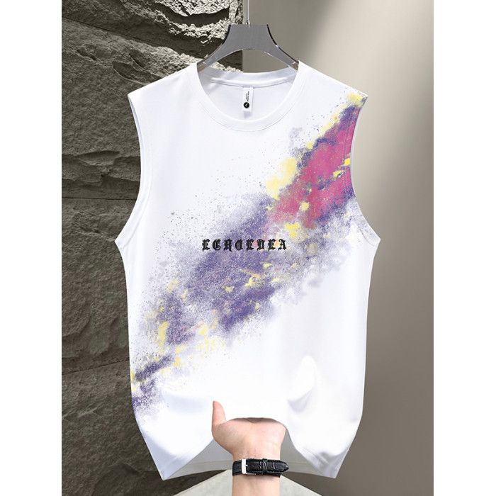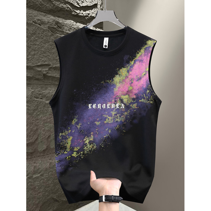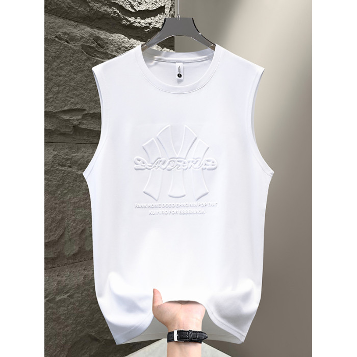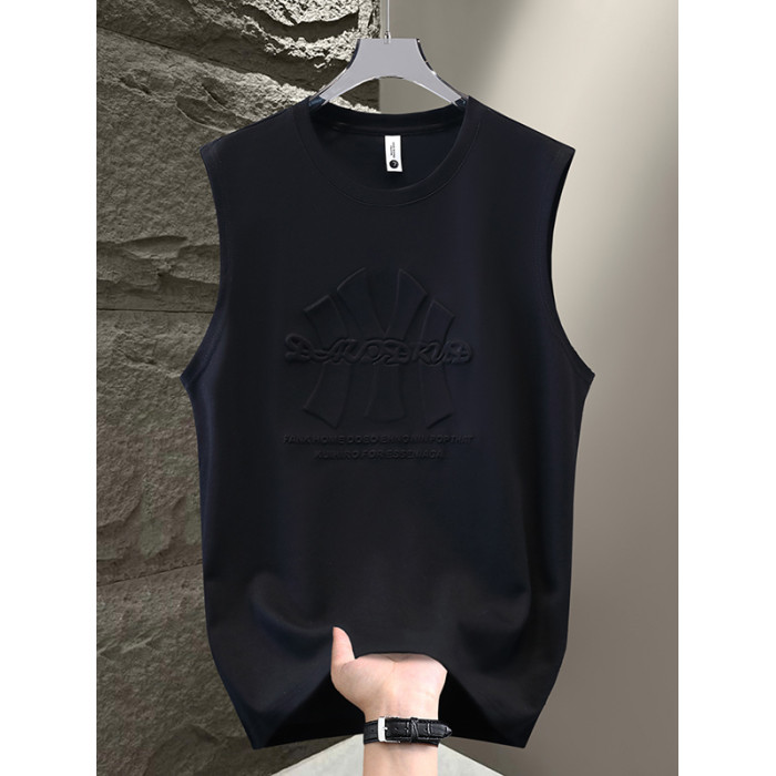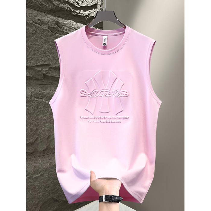 2025夏季新款粉色背心男圓領青少年學生時尚帥氣潮流無袖坎肩T恤