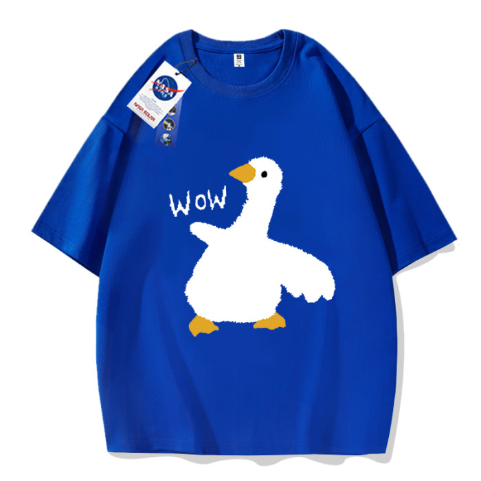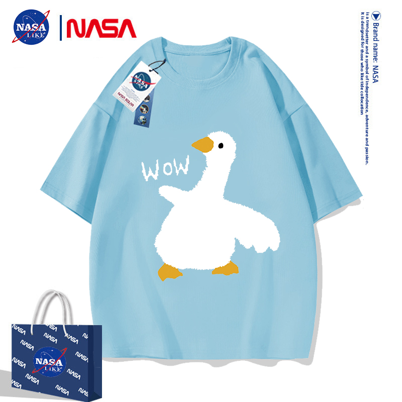 NASA聯名短袖男童兒童純棉夏裝大童夏季wow卡通鴨大鵞上衣半袖t恤