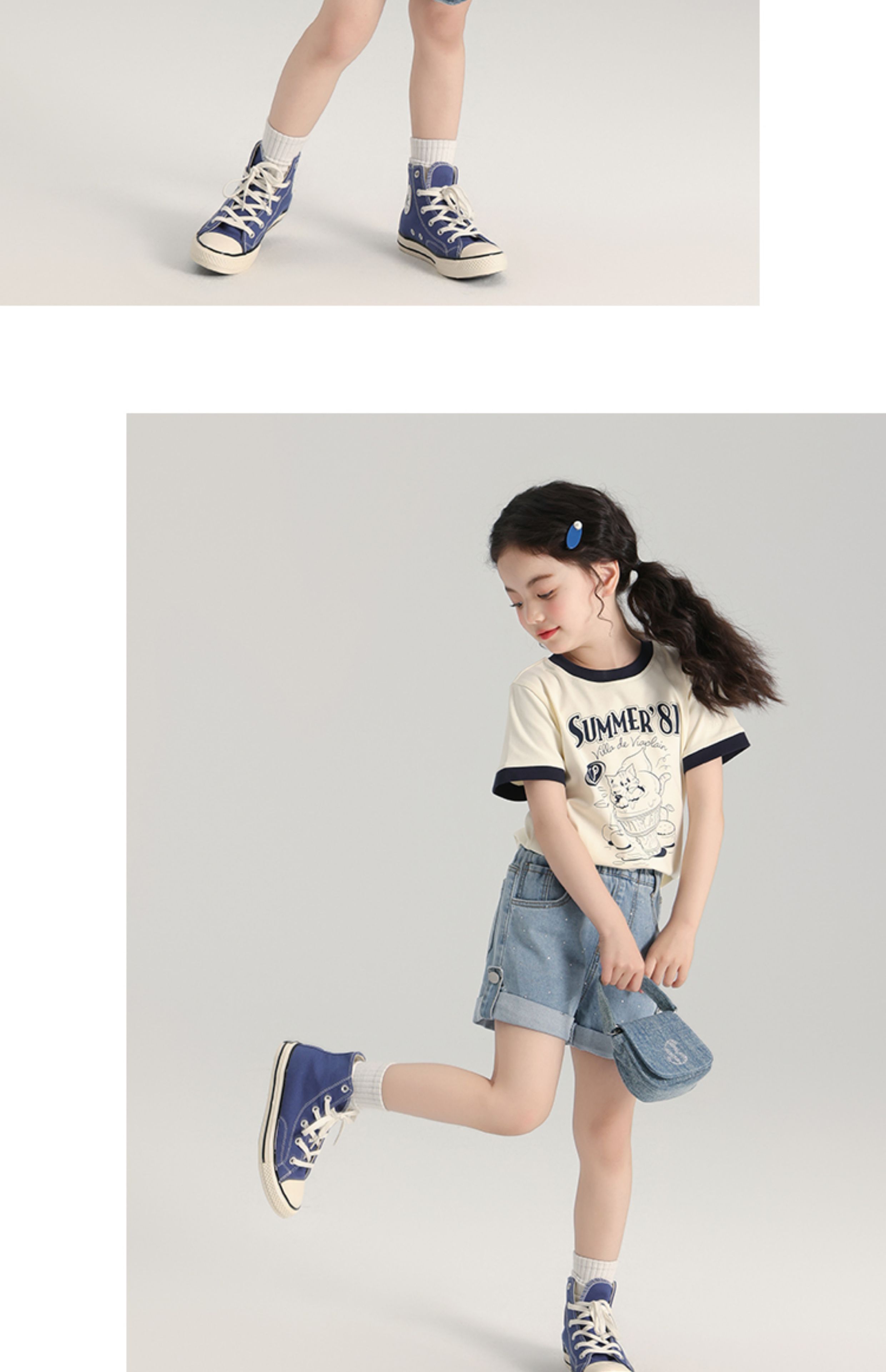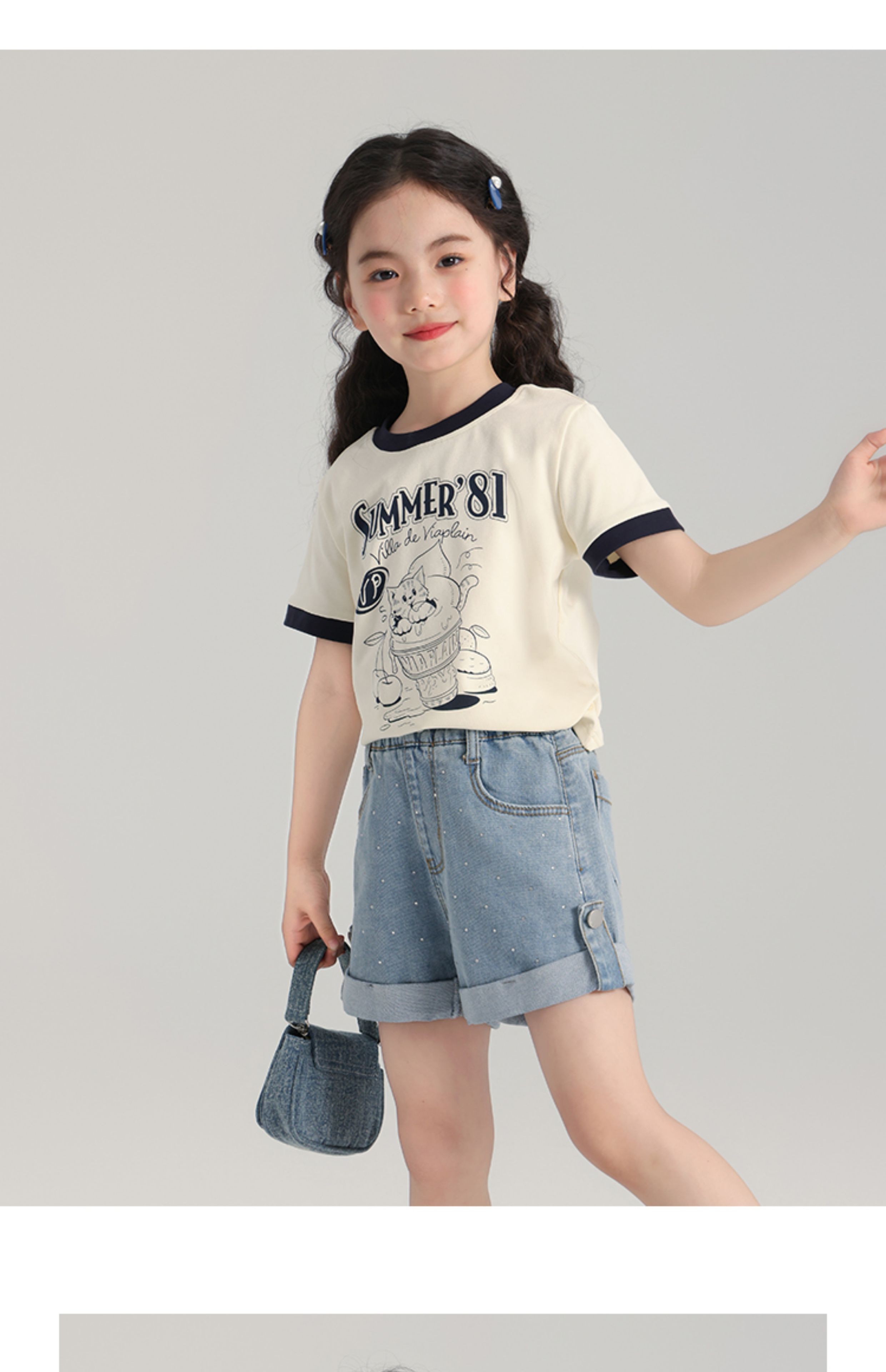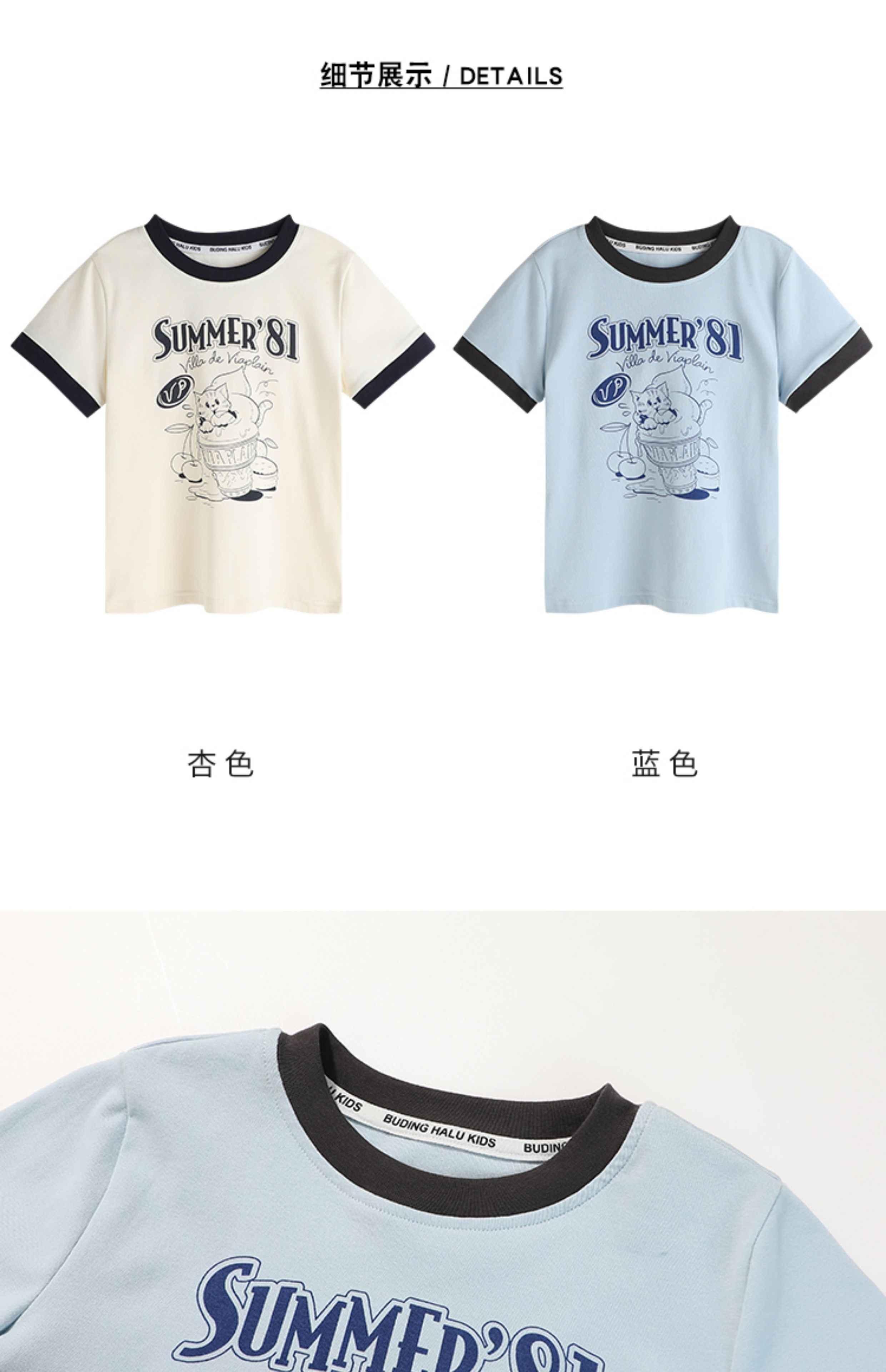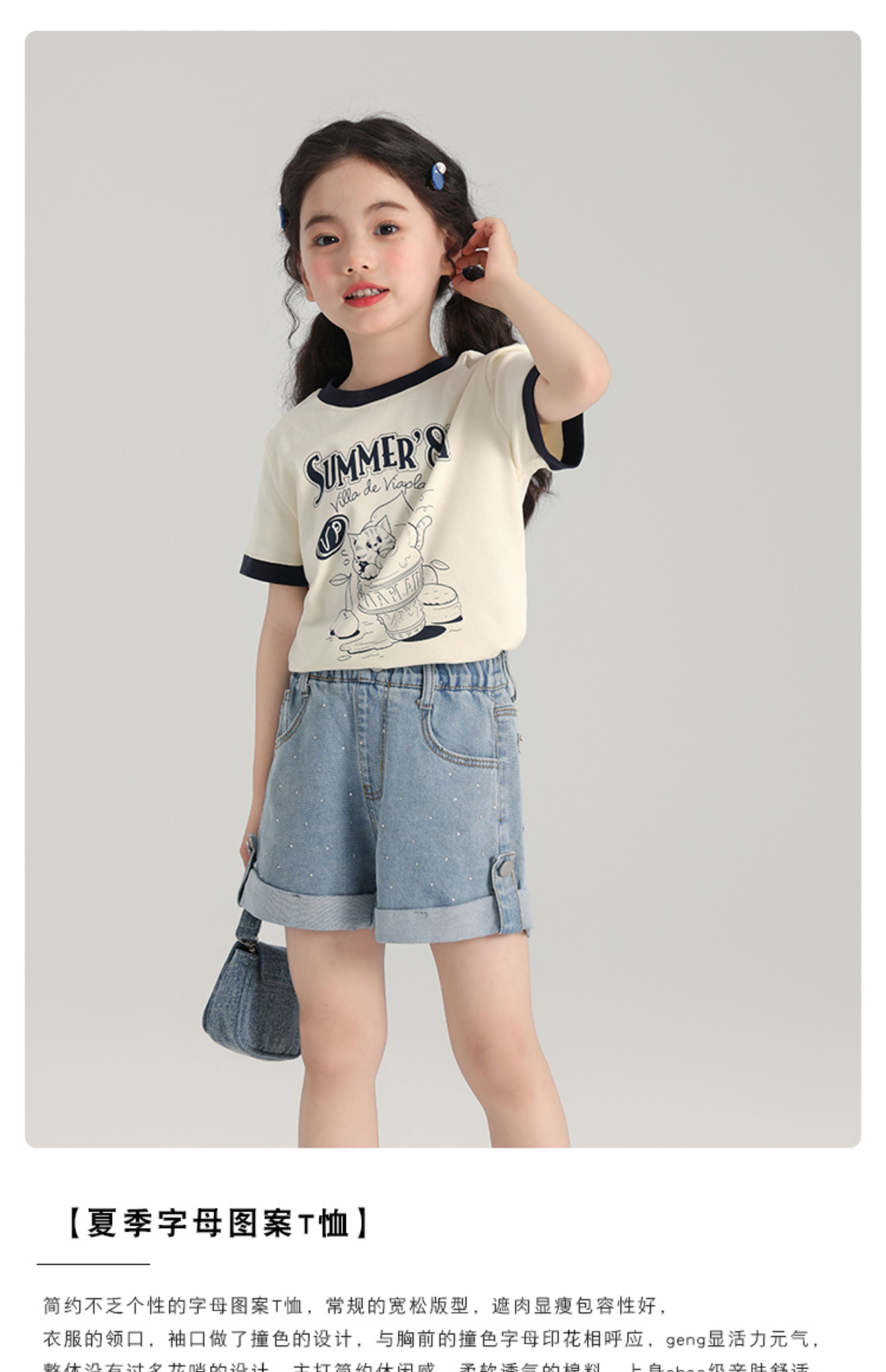 布丁哈魯童裝夏裝女童夏季打底衫2025新款兒童休閒字母短袖T恤