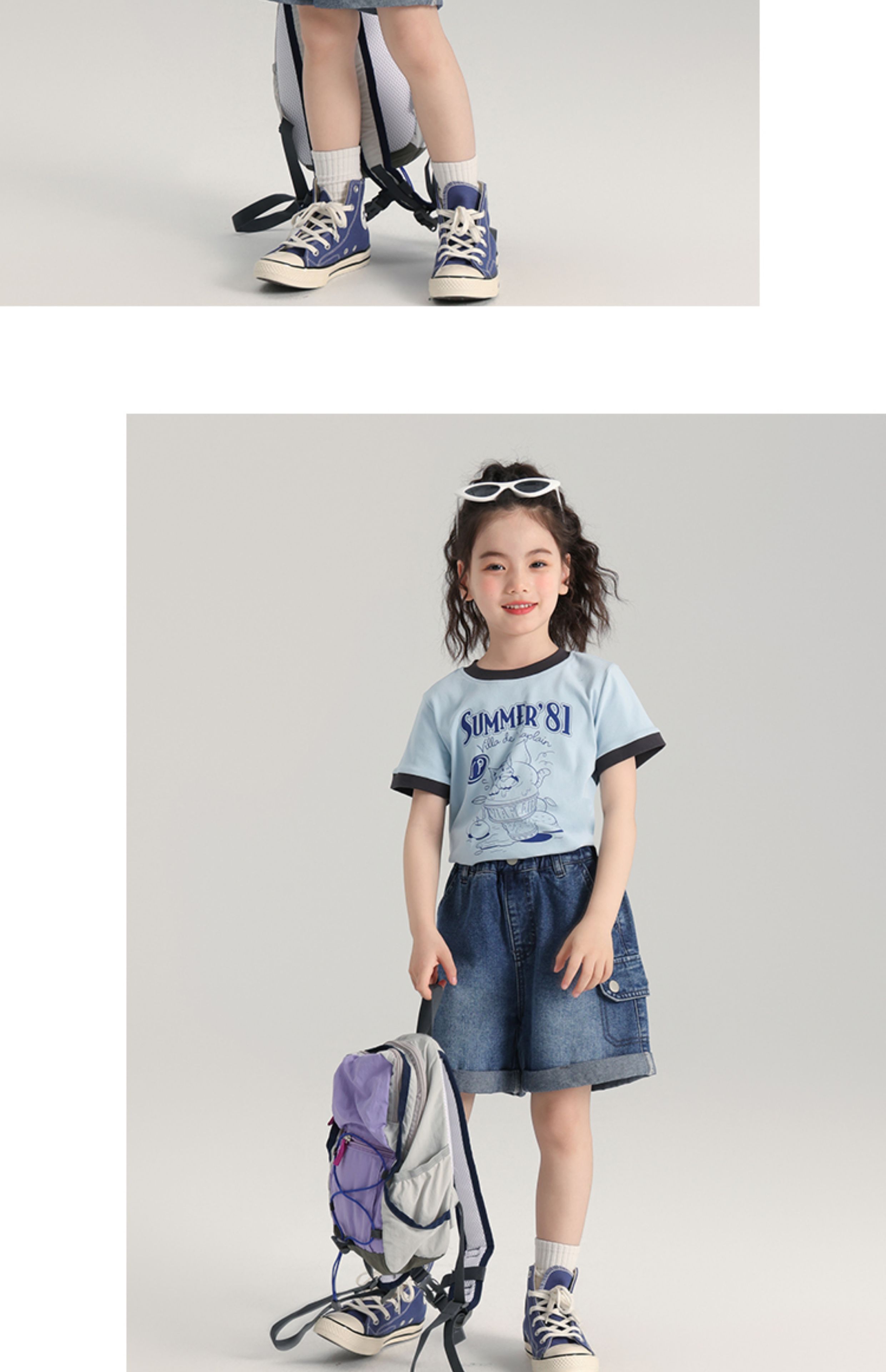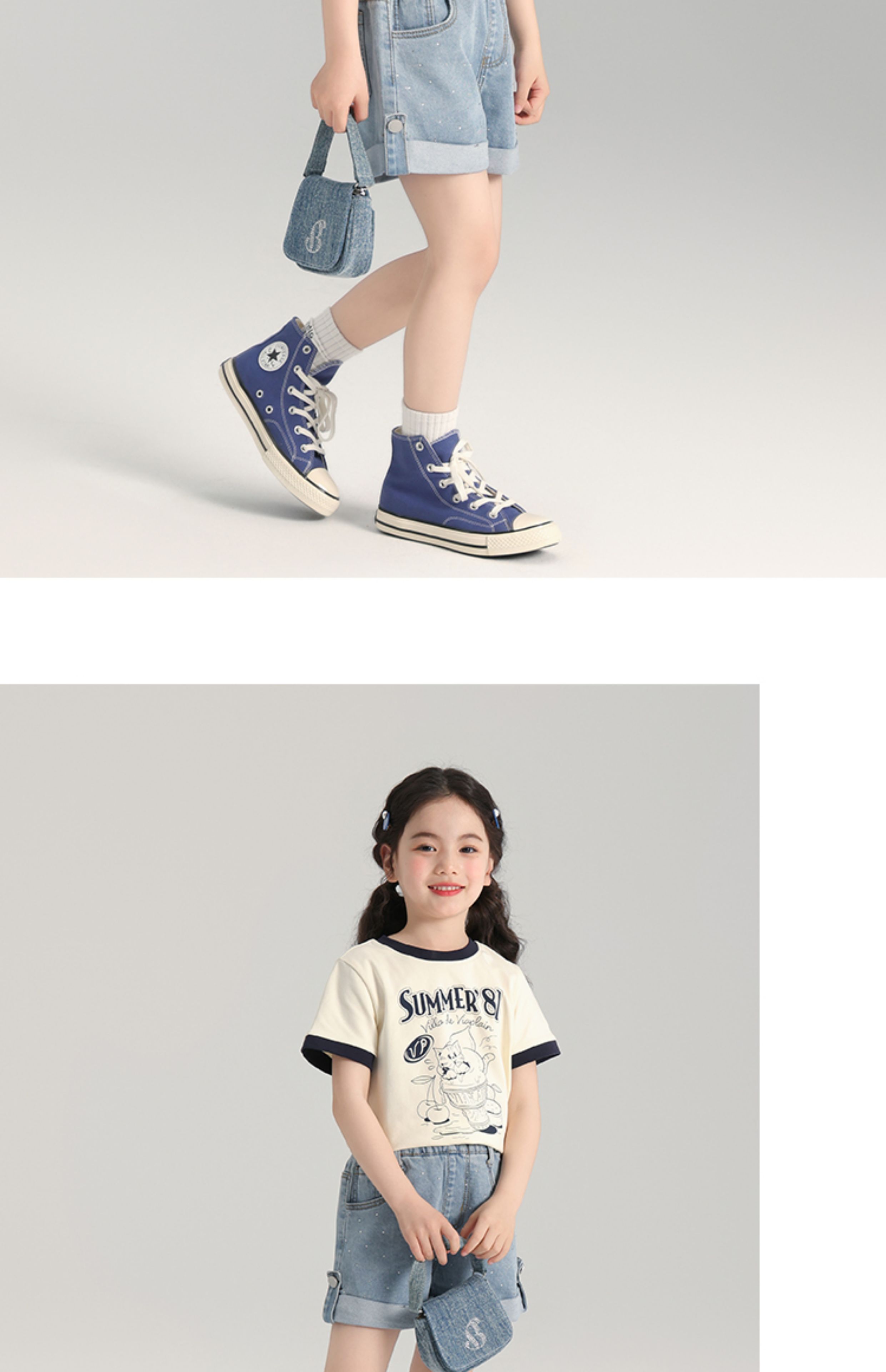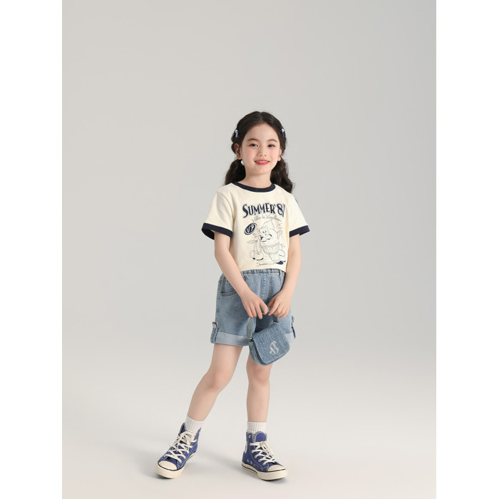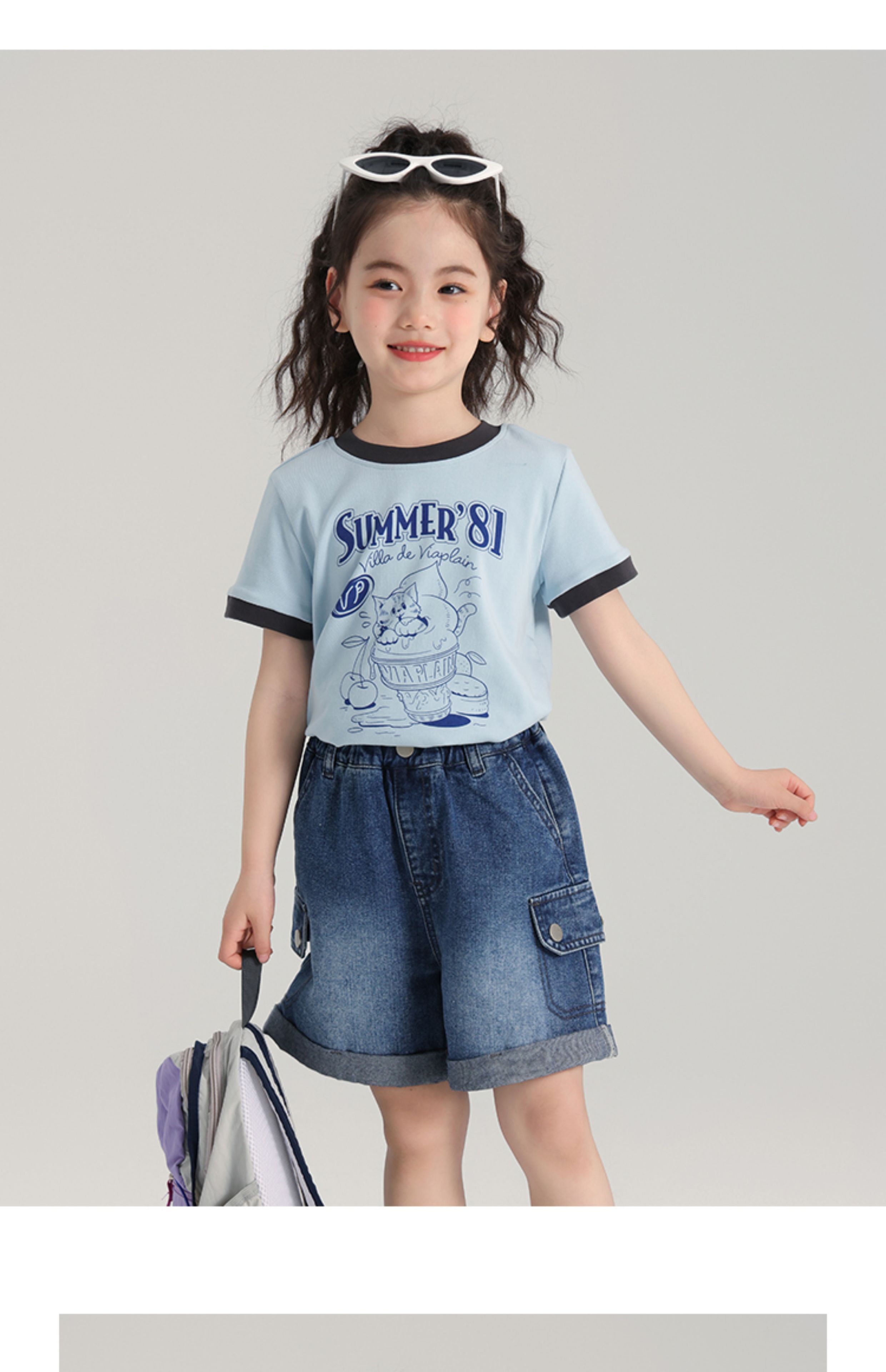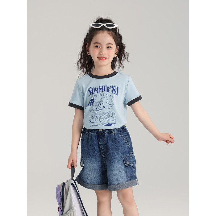 布丁哈魯童裝夏裝女童夏季打底衫2025新款兒童休閒字母短袖T恤