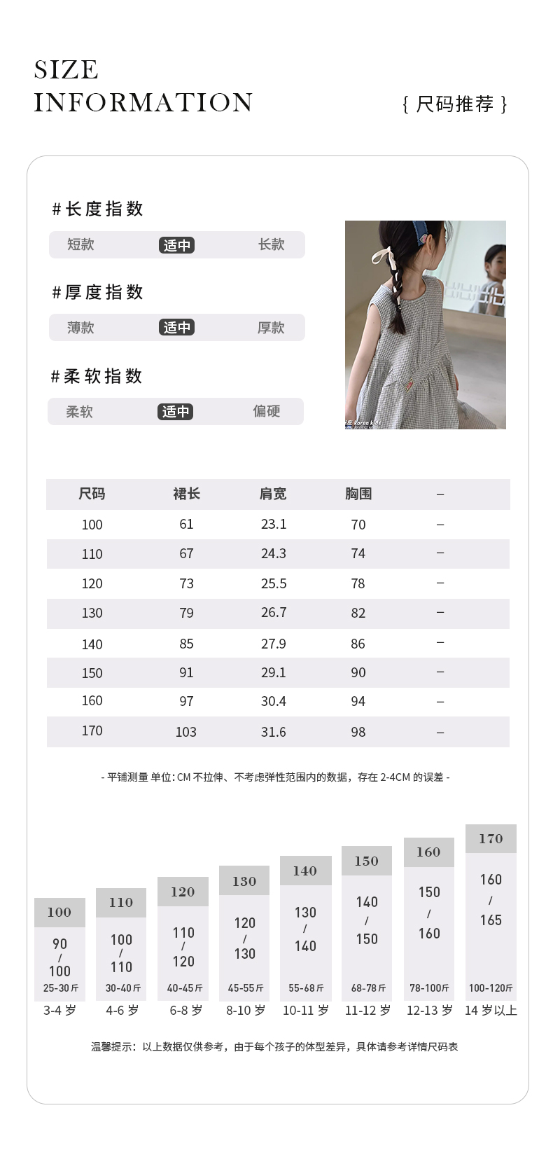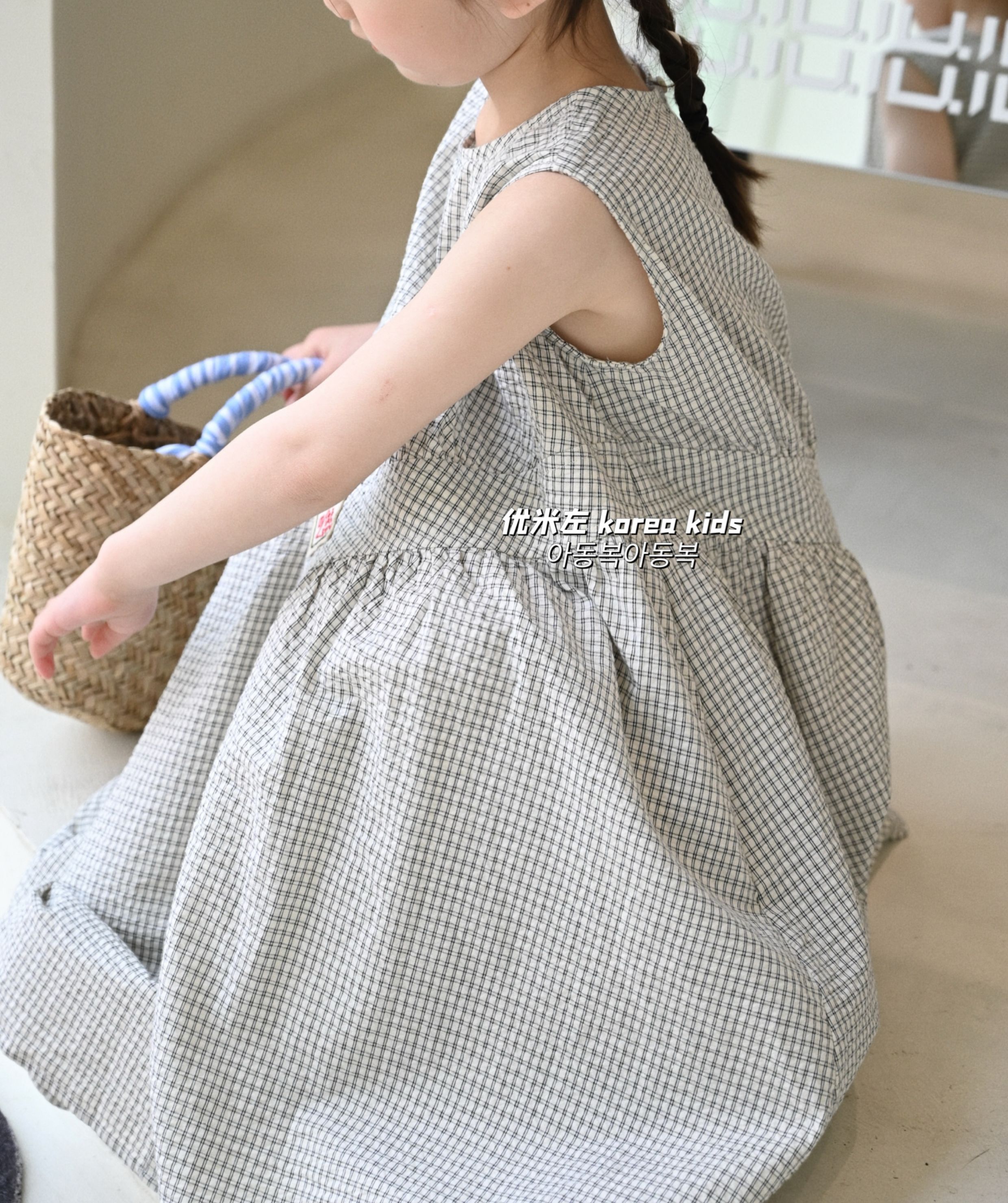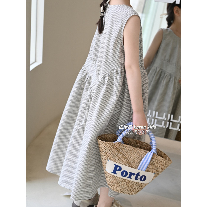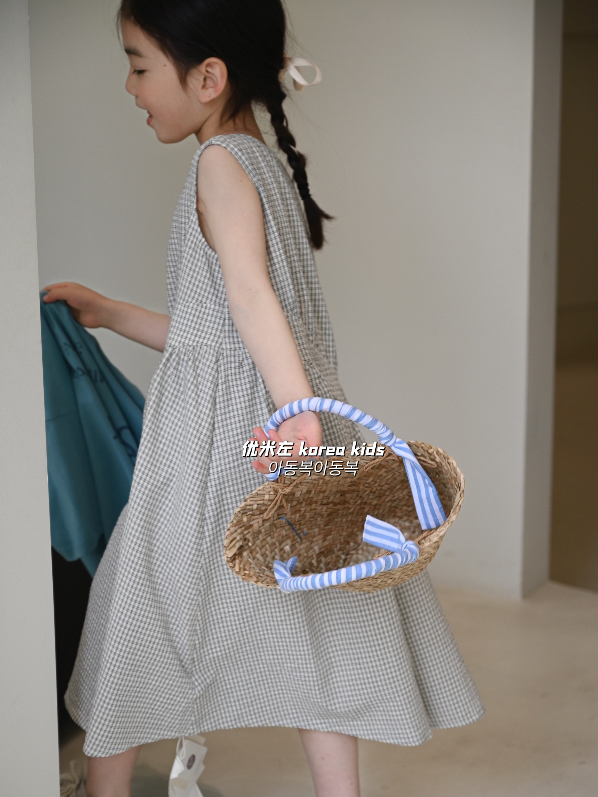 2025夏季新款韓版兒童設計感格子連衣裙女童簡約泡泡棉無袖背心裙