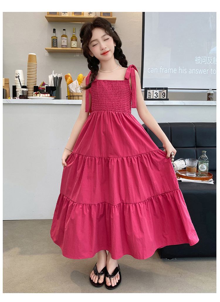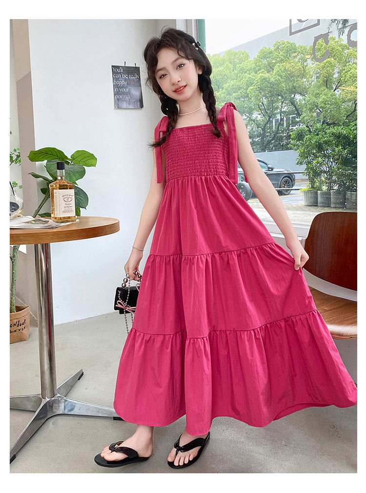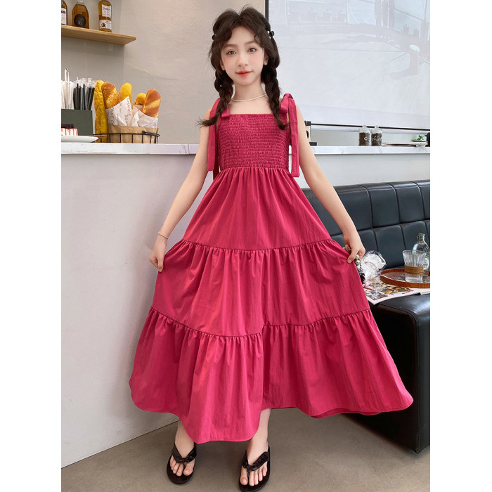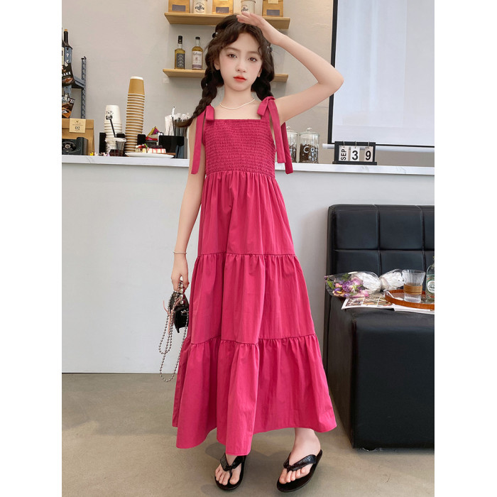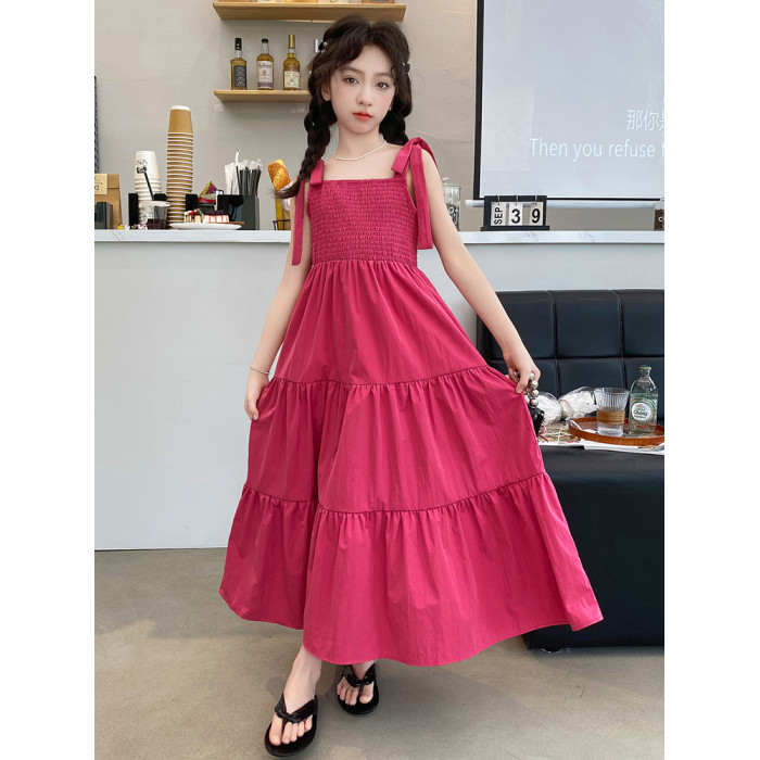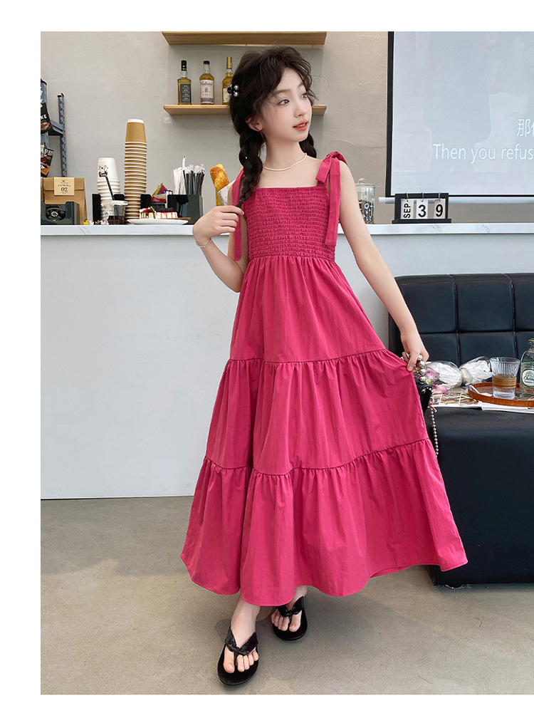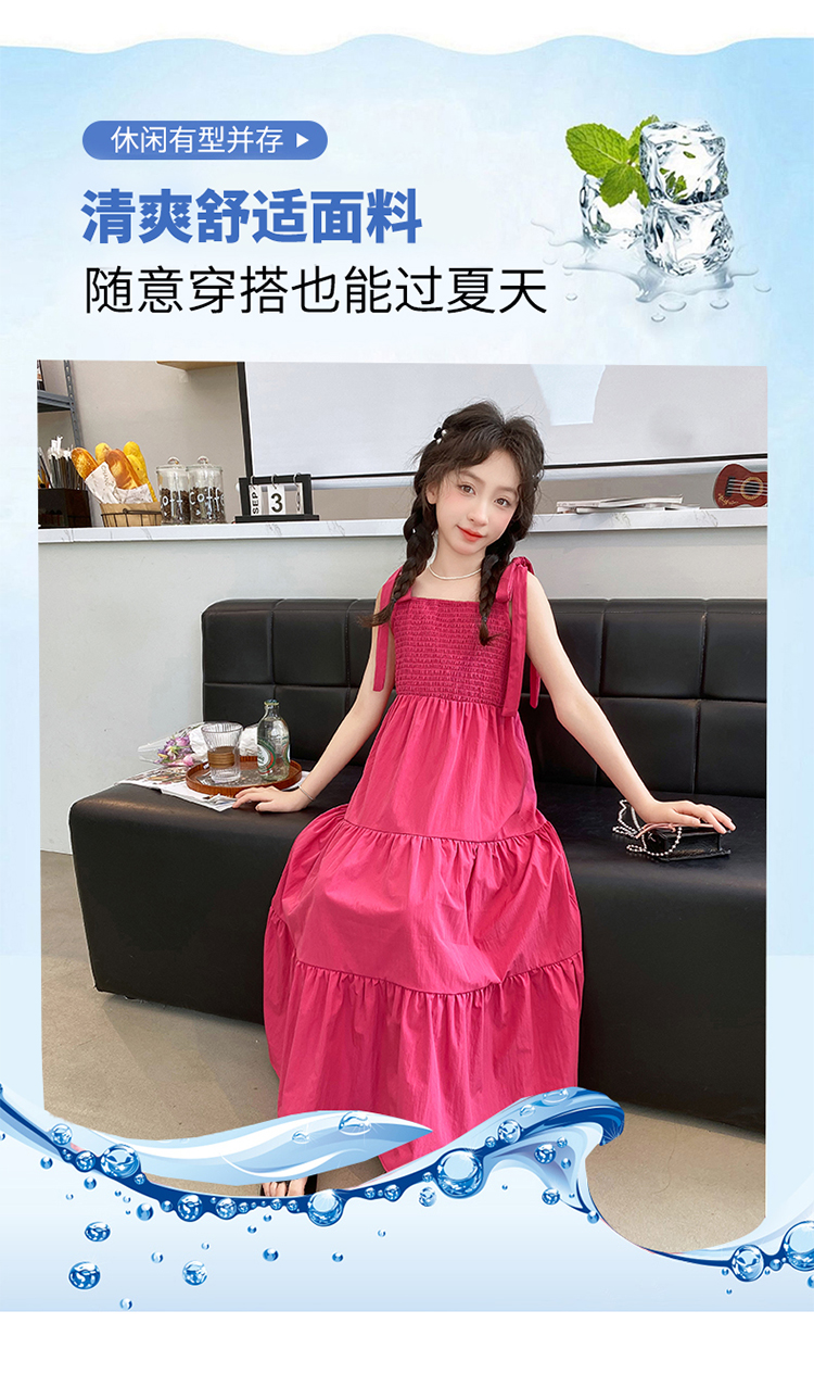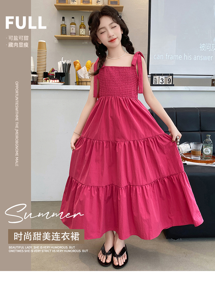 女童連衣裙夏季高級感2025新款女大童禮服裙子兒童夏裝赫本風長裙
