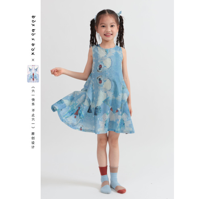 boxboxbox【入夢手繪印花裙】高級感女童無袖連衣裙夏季兒童裙子