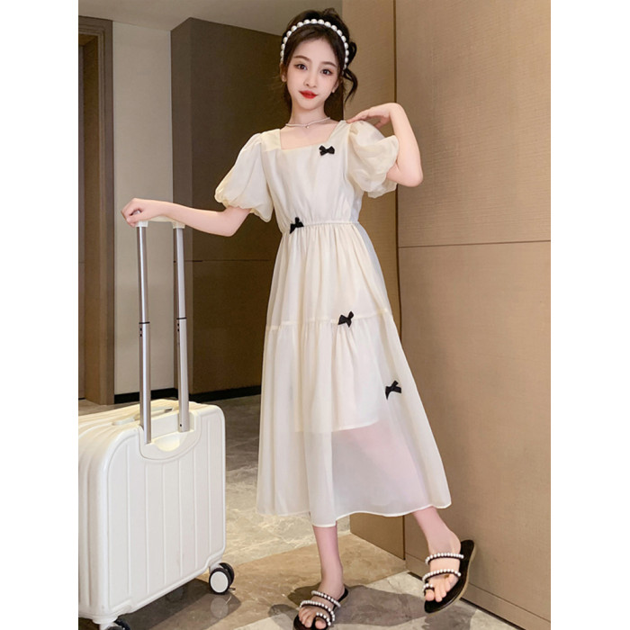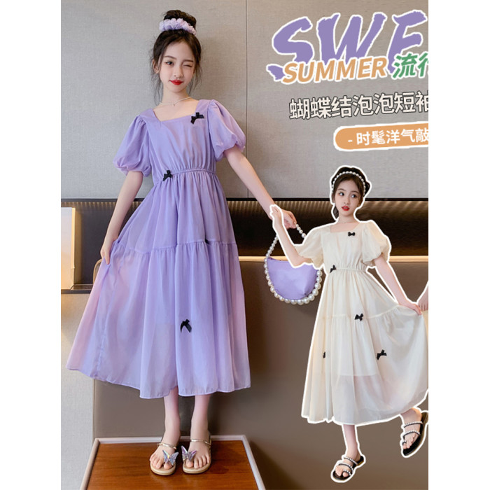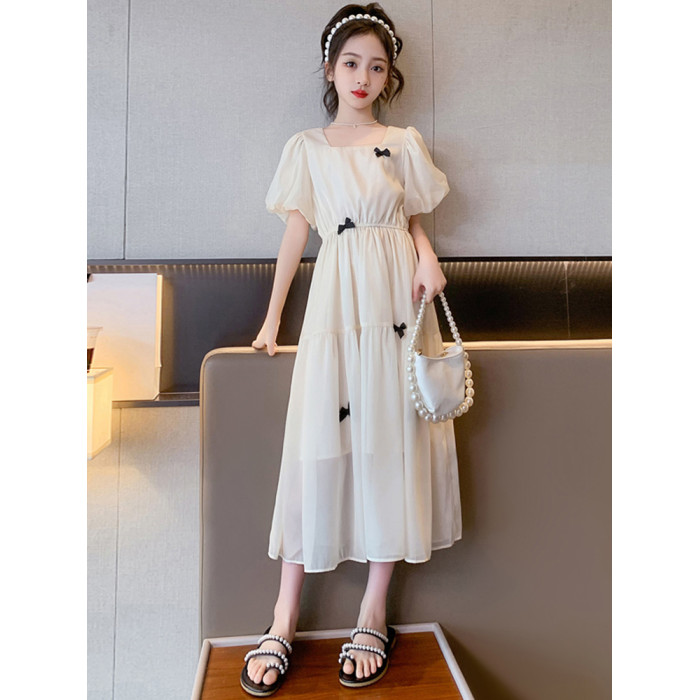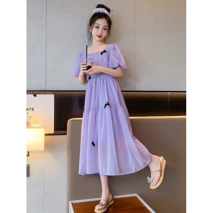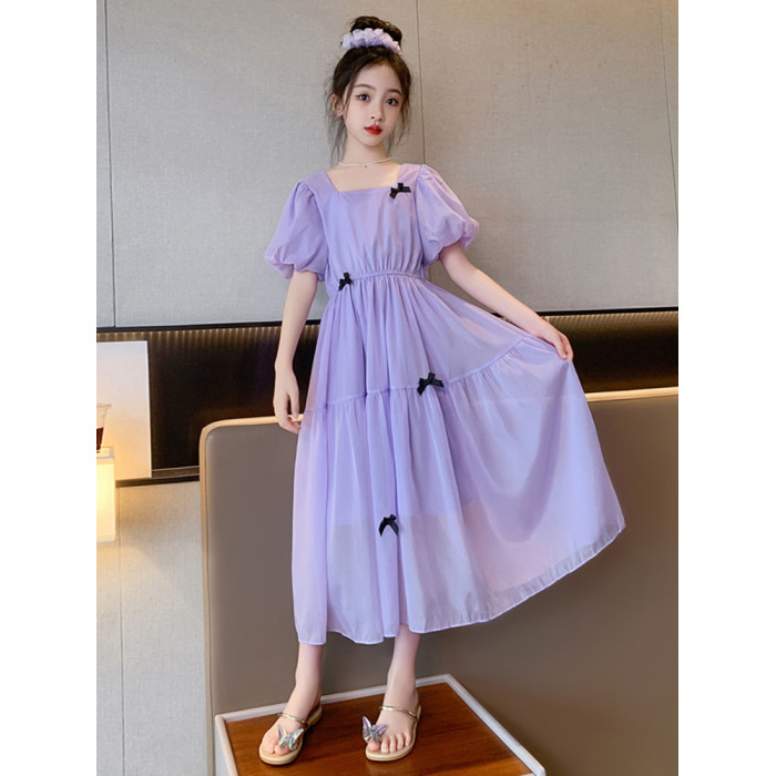 女童夏季雪紡連衣裙時髦兒童女孩短袖長裙子中大童夏款網紅公主裙