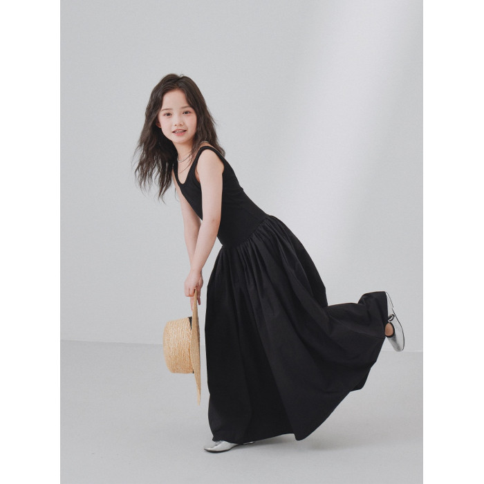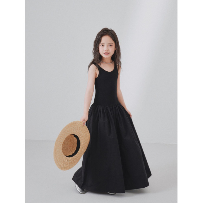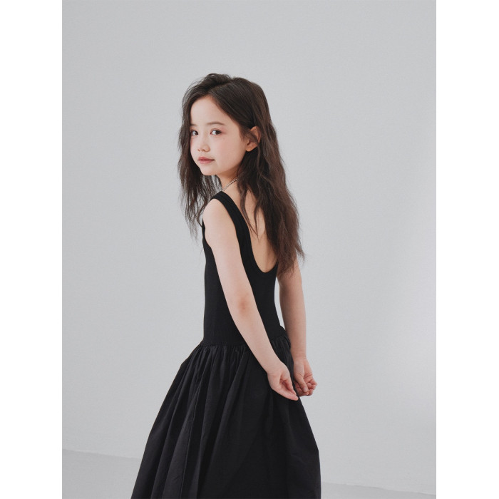 女童短款日常小黑裙無袖背心連衣裙+夏季露背長款禮服版度假長裙
