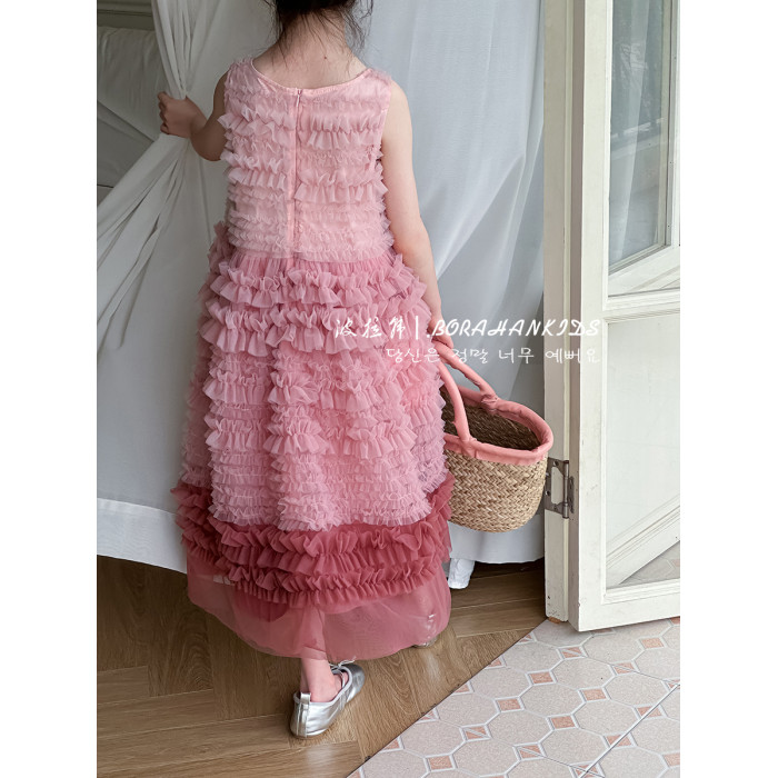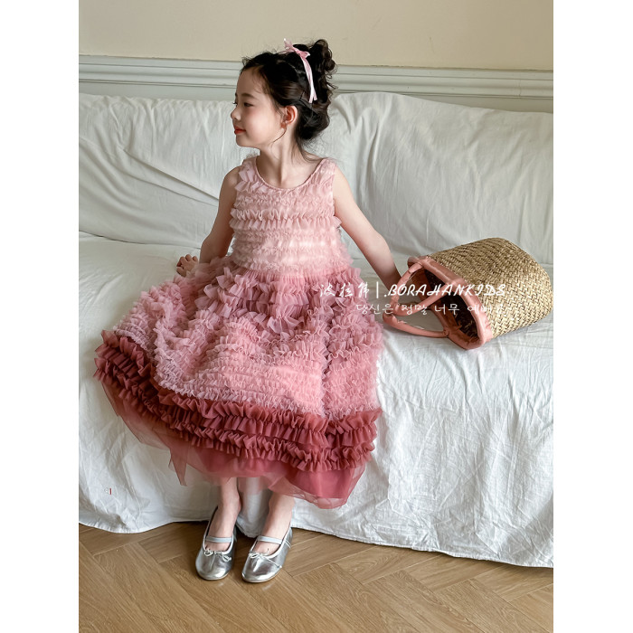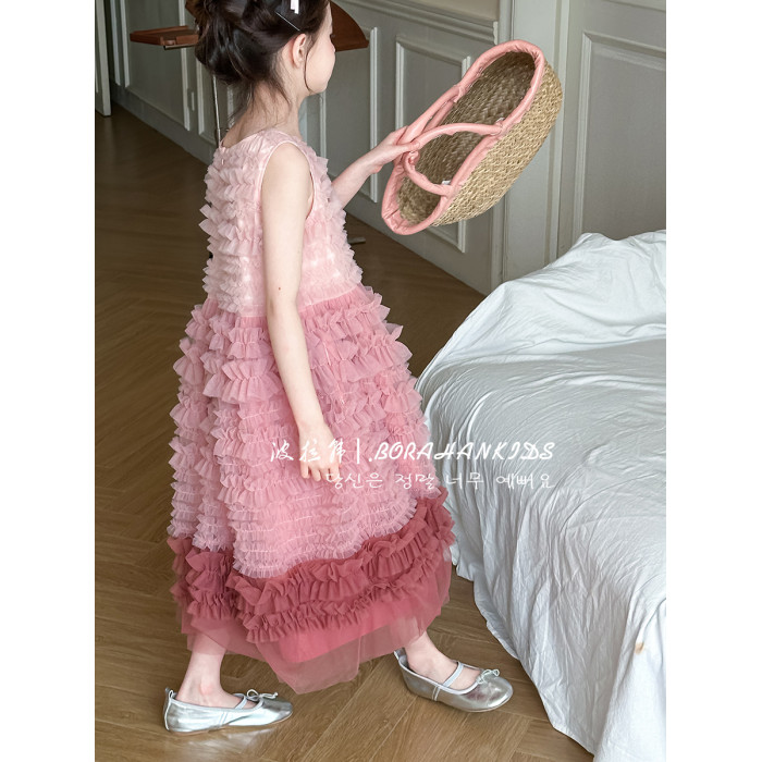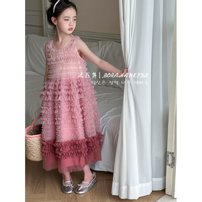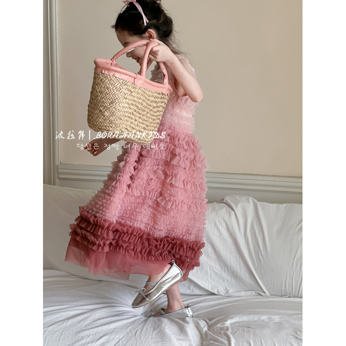 女童蓬蓬蛋糕裙夏天兒童2025仙女連衣裙漸變紗裙兒童背心裙子長裙