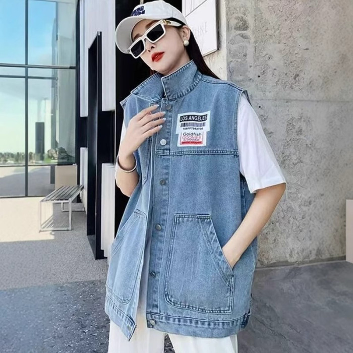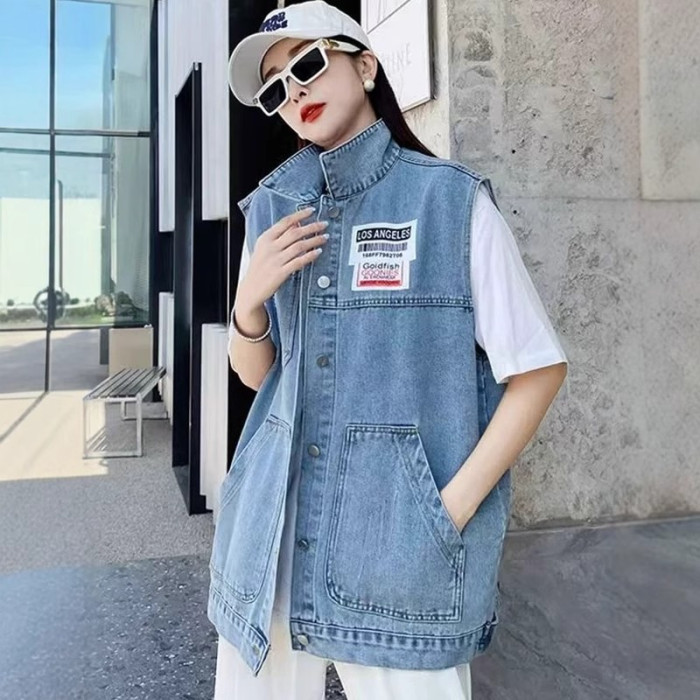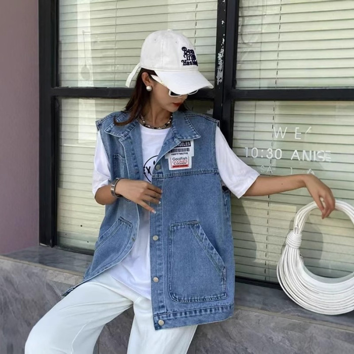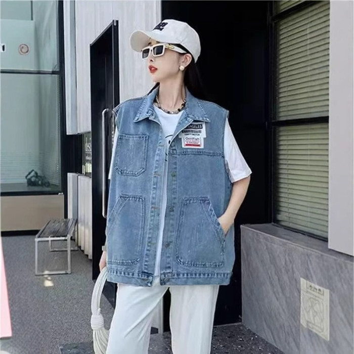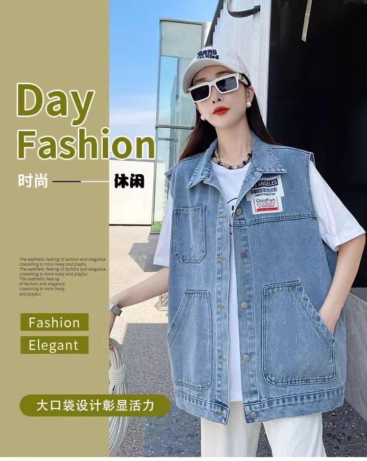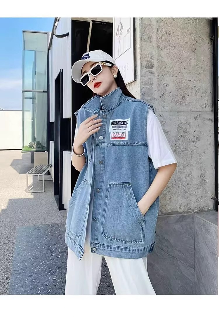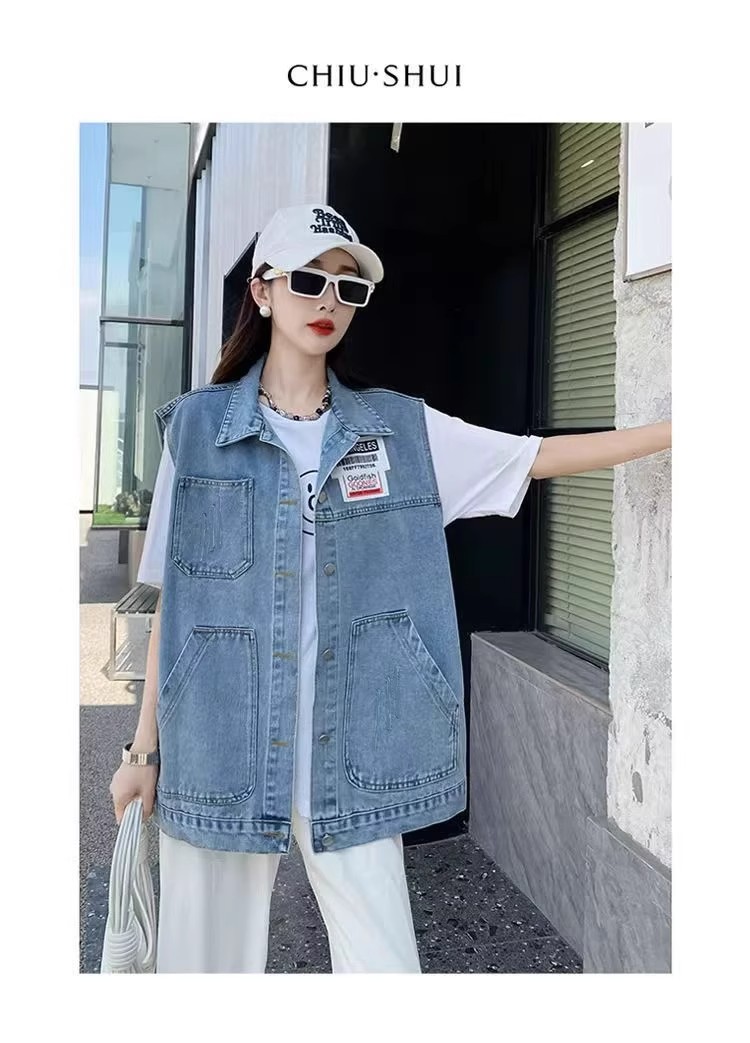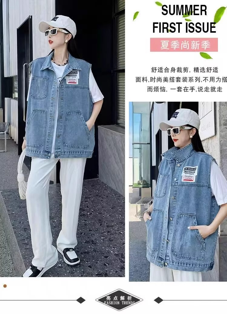 大碼300斤薄款復古牛仔馬甲男女裝夏季新款口袋寬松曡穿坎肩外套2
