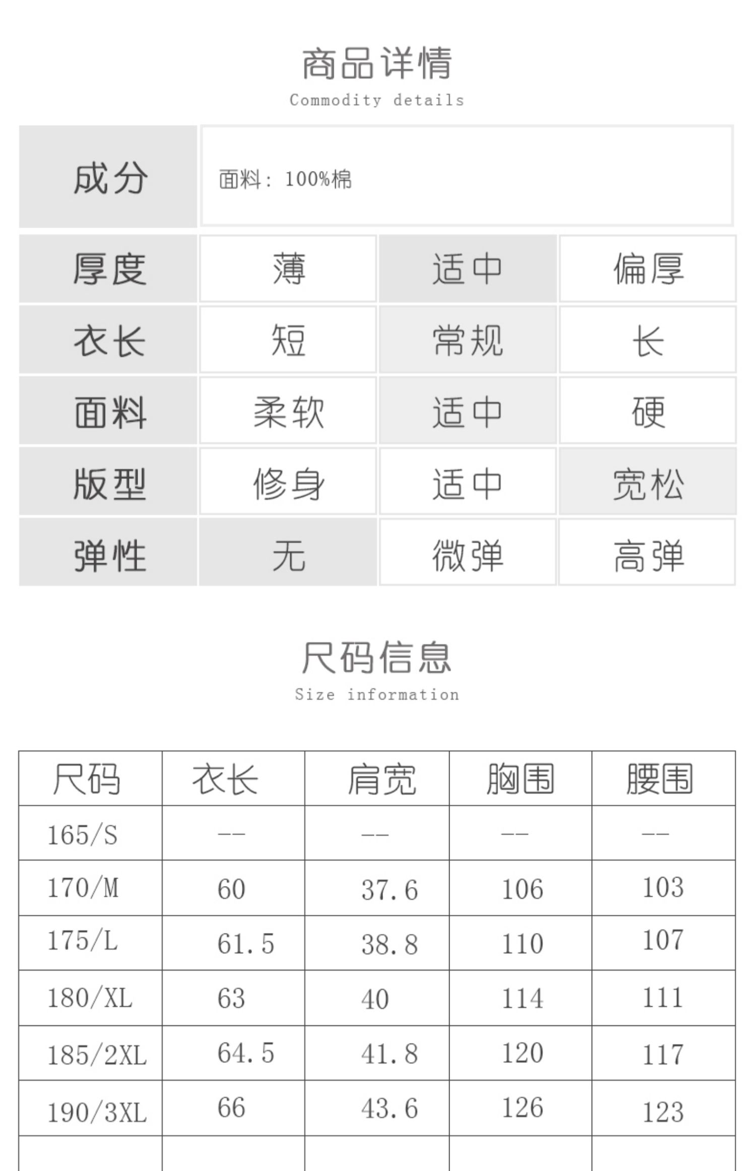 款式及尺寸: