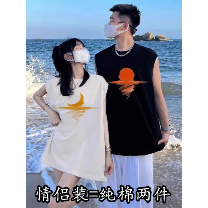 純棉情侶裝無袖坎肩夏季男女不一樣的情侶套裝disoo高級感T恤背心