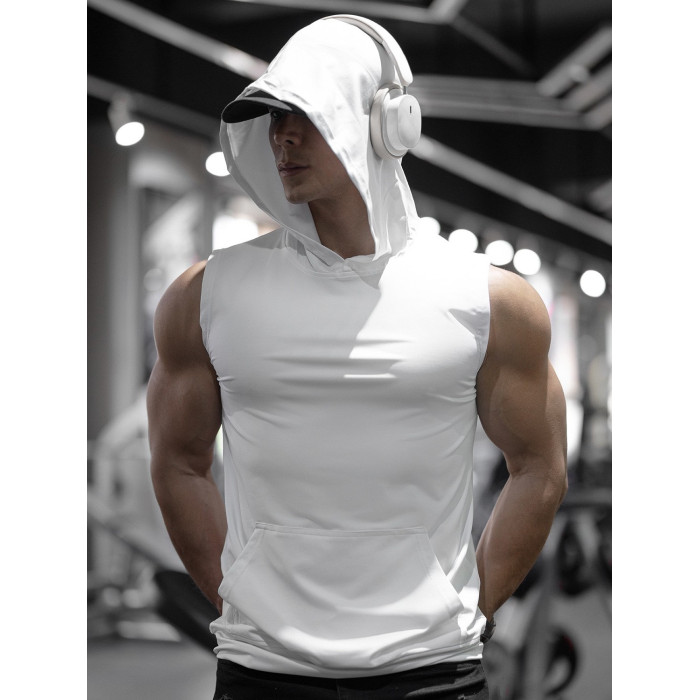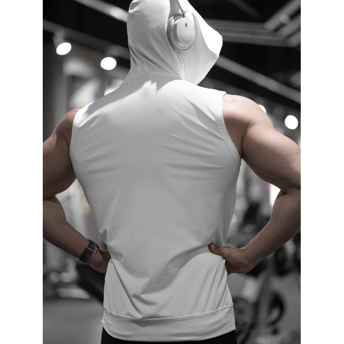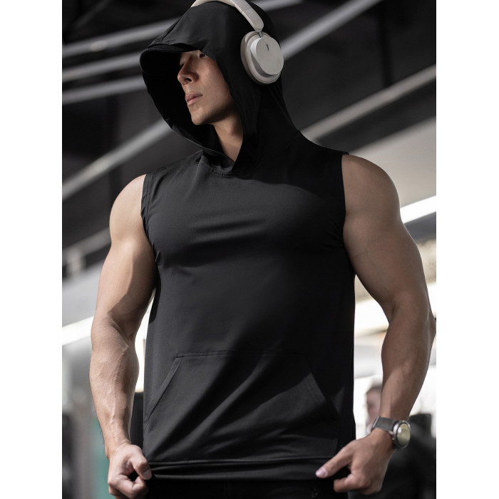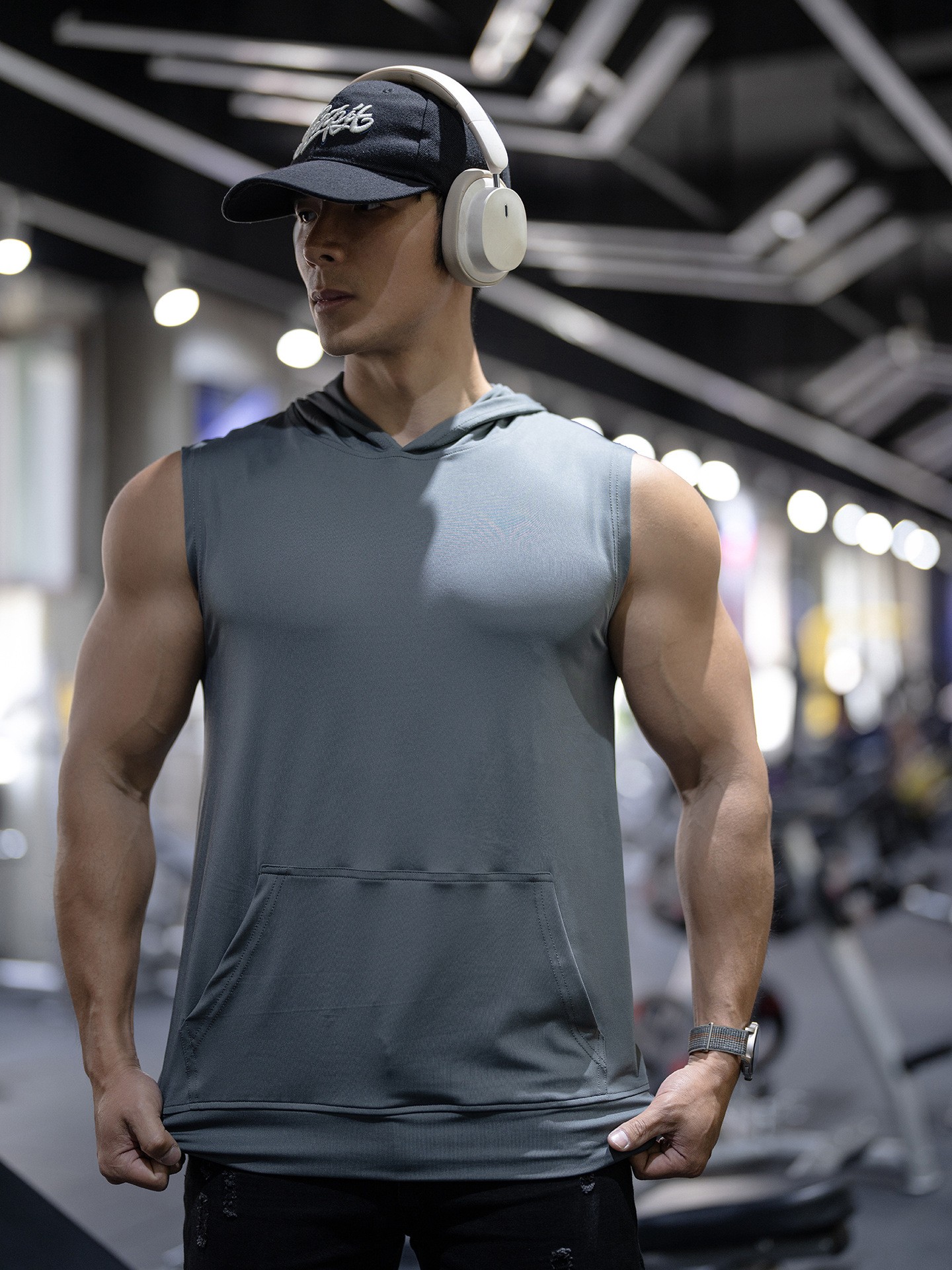 型男肌肉衫兄弟夏季彈力速乾連帽無袖男運動背心坎肩健身訓練帽衫