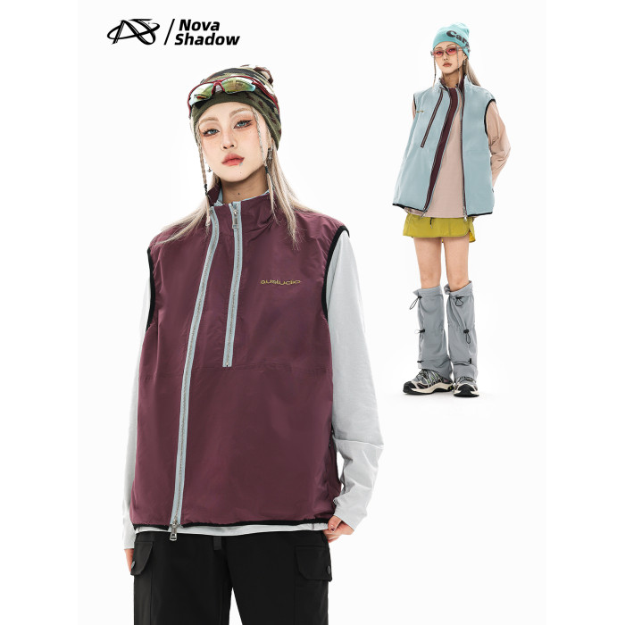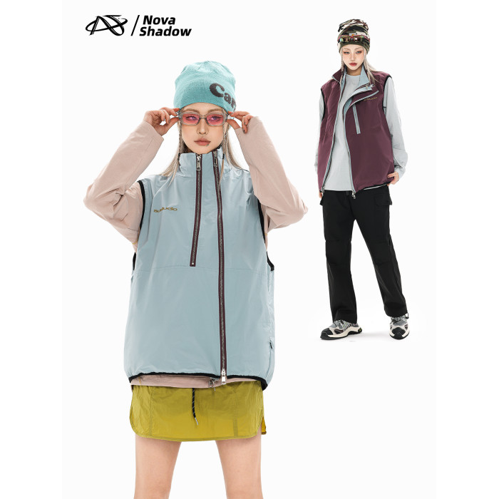 Nova Shadow新星蹤跡 春季戶外撞色雙拉鍊兩面穿立領機能馬甲男女