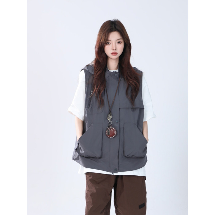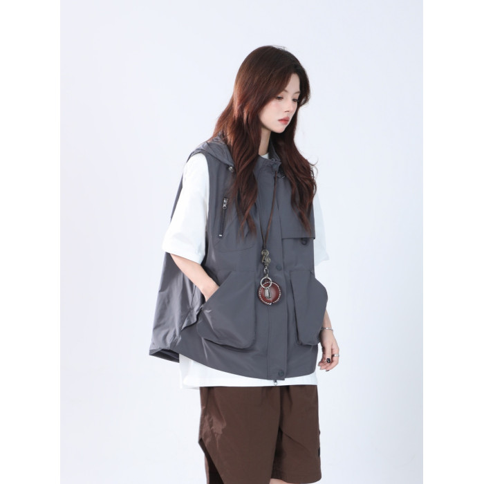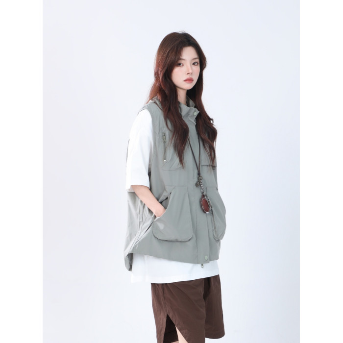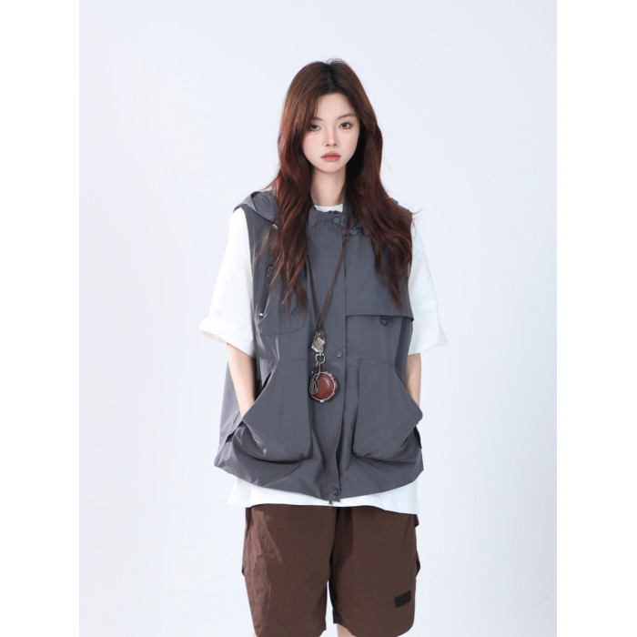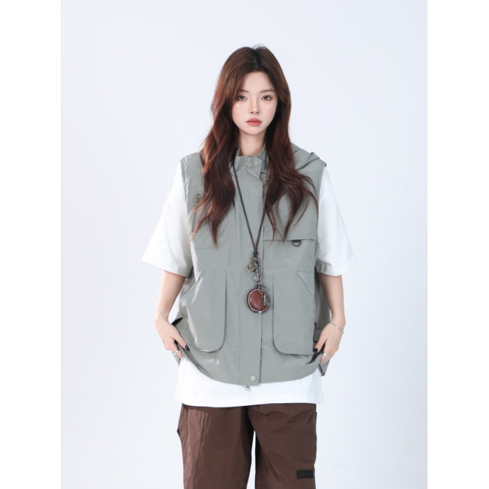 夏季薄款戶外機能多口袋工裝馬甲男女美式寬松百搭沖鋒衣無袖外套