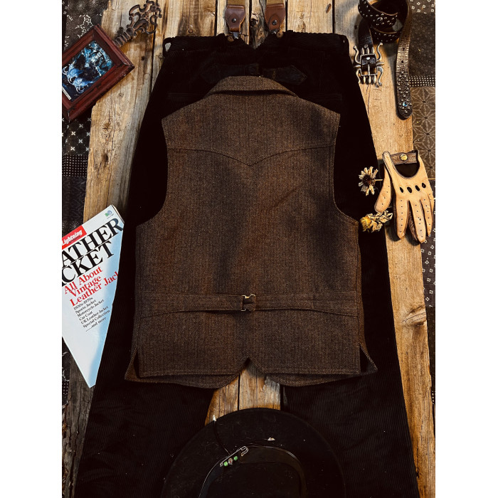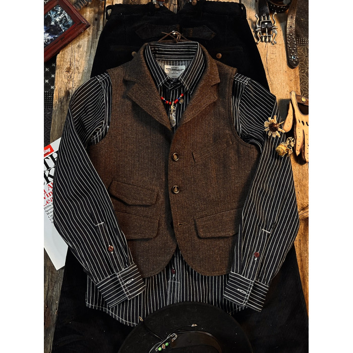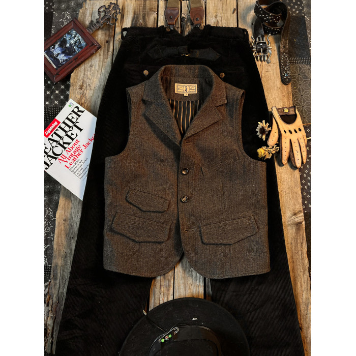 帥的雅痞,意式紳裝風經典人字紋毛呢馬甲復古修身男士粗花呢馬夾