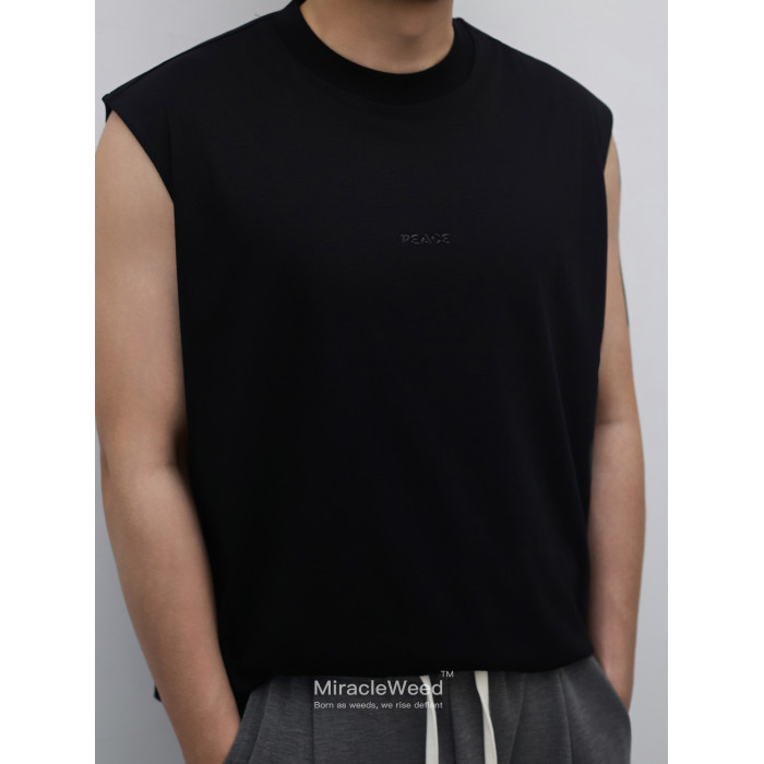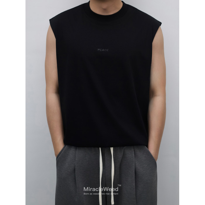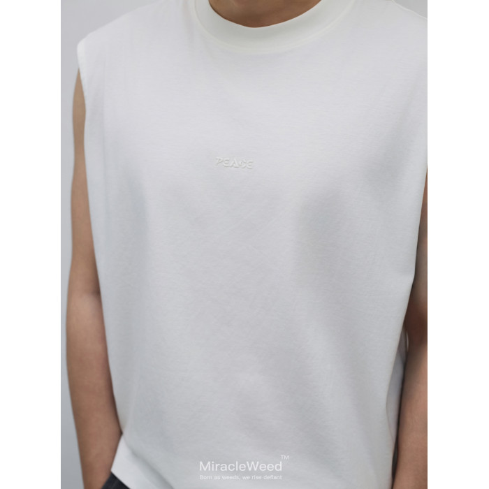 潮流點睛,個性表達:胸口中心位置精心設計立體矽膠“Peace”字母燙畫。燙畫質感高級,觸感立體,字母清晰飽滿,牢固耐磨不易脫落。簡約而不簡單的設計,爲純色背心增添一抹潮流亮點。