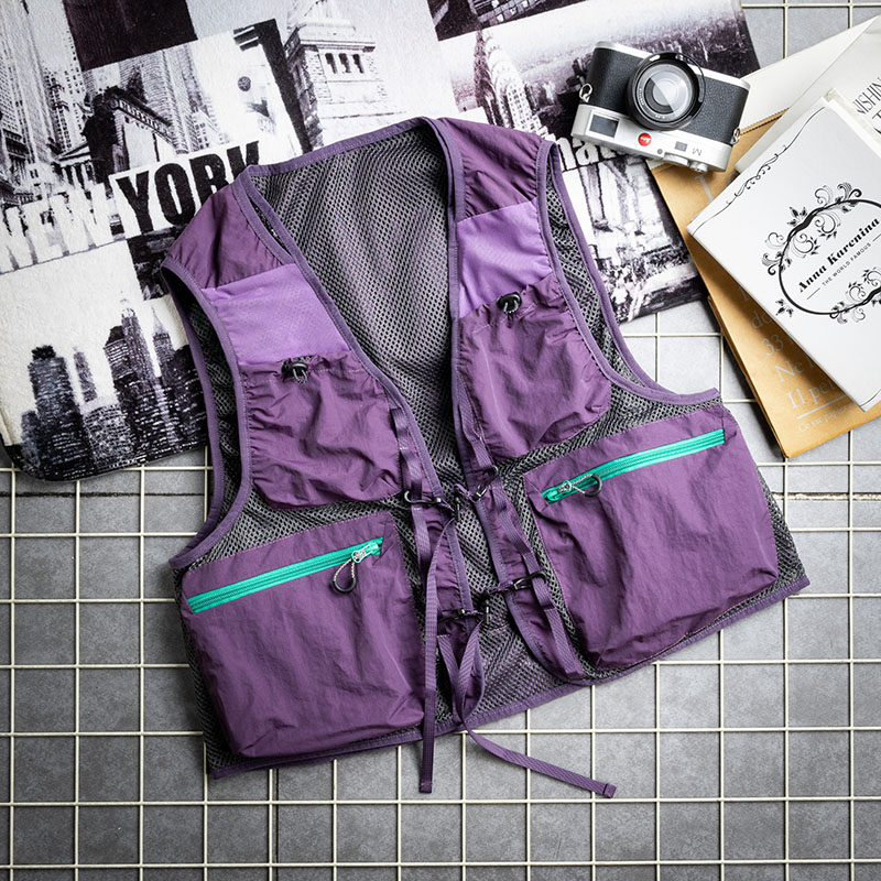 日系復古多口袋坎肩戶外時尚馬甲寬松大碼潮牌工裝機能男女外套