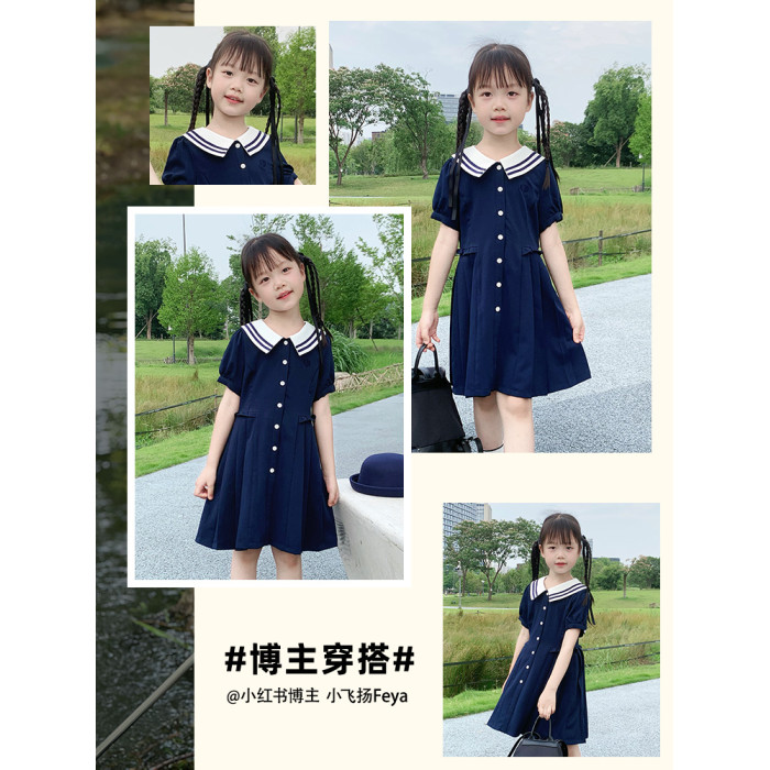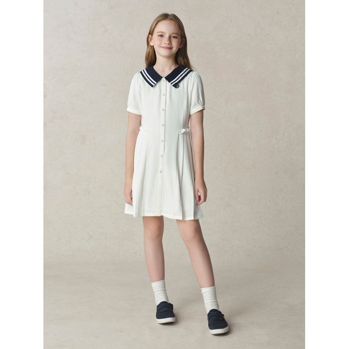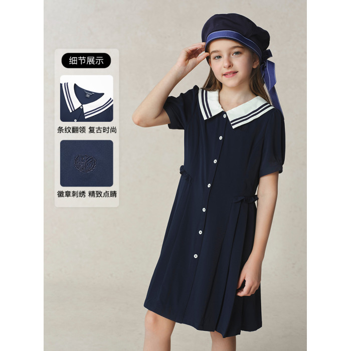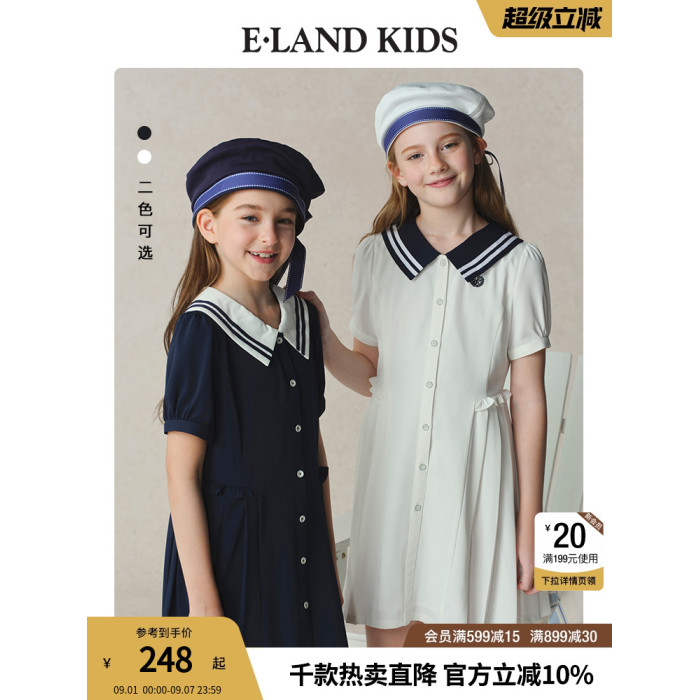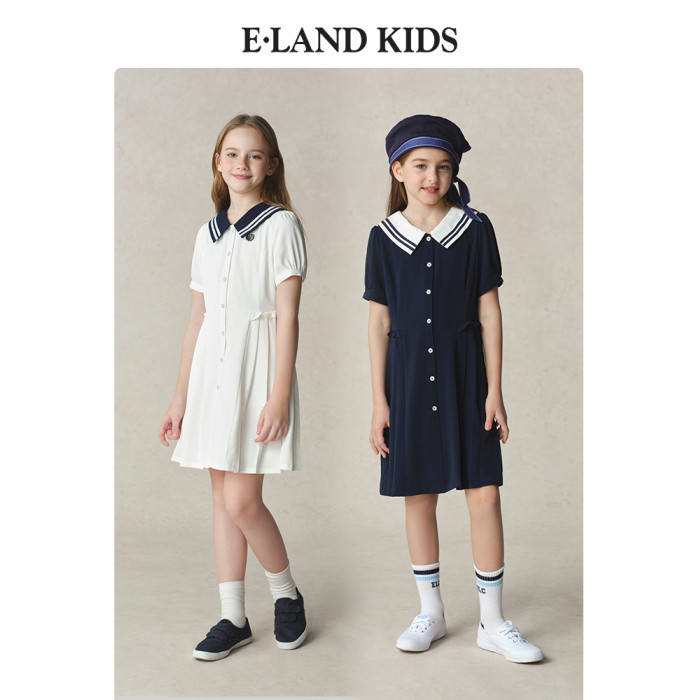 eland kids衣戀童裝女童連衣裙2025年夏新品翻領條紋百褶開學禮服